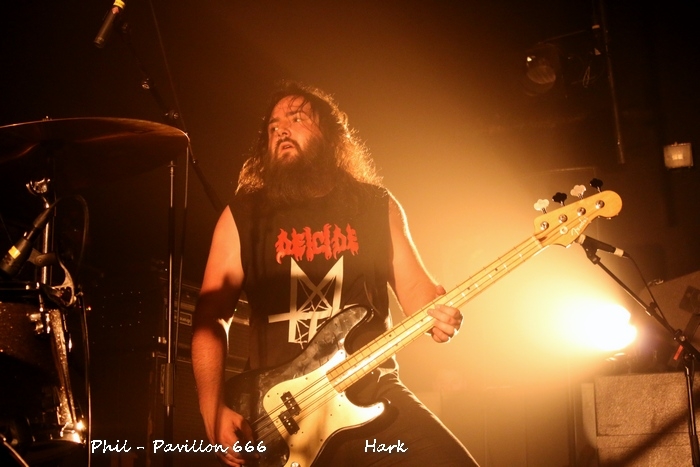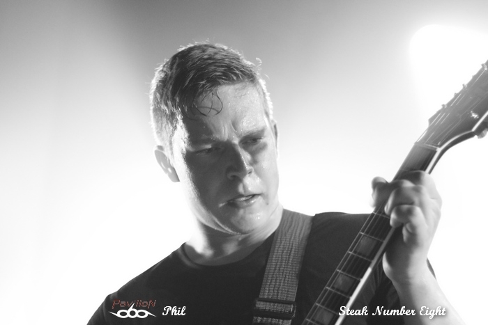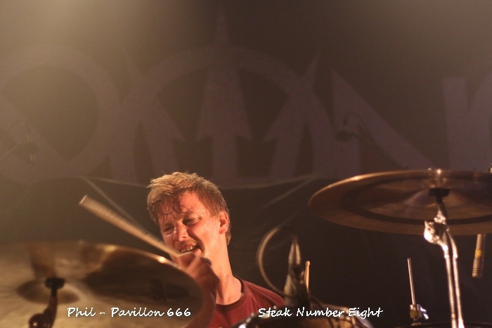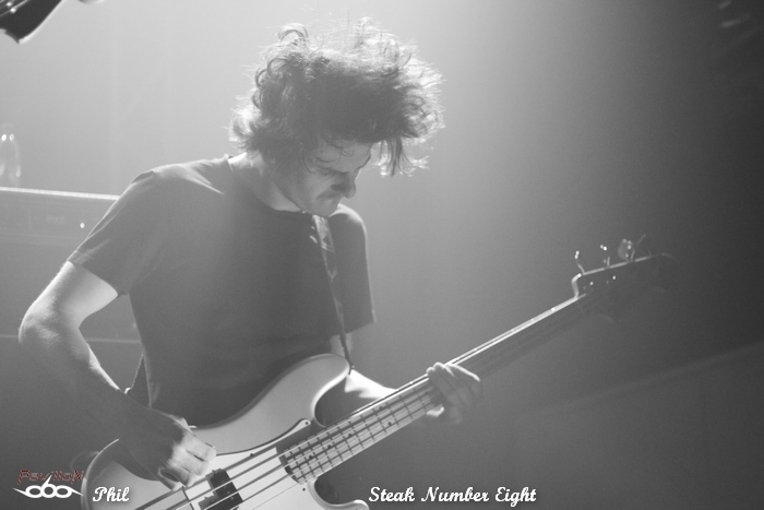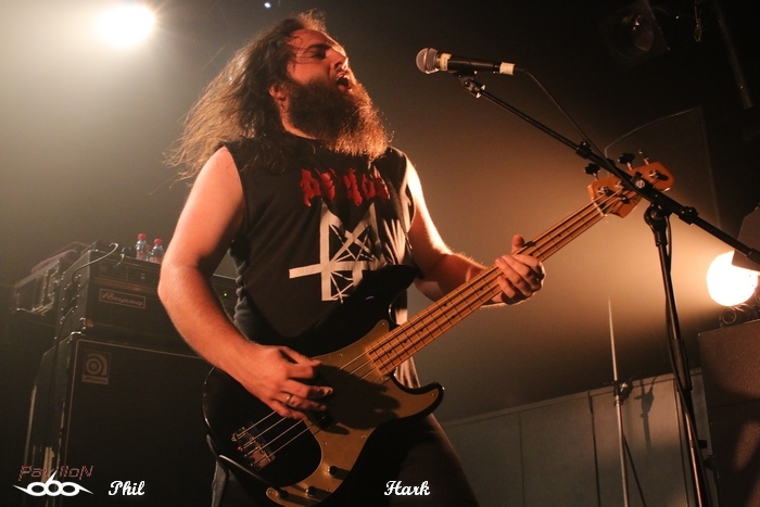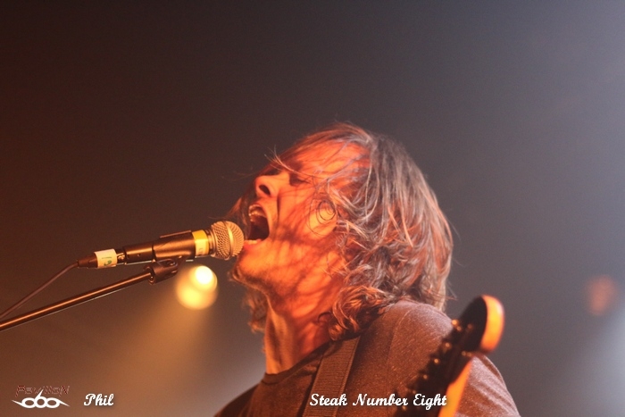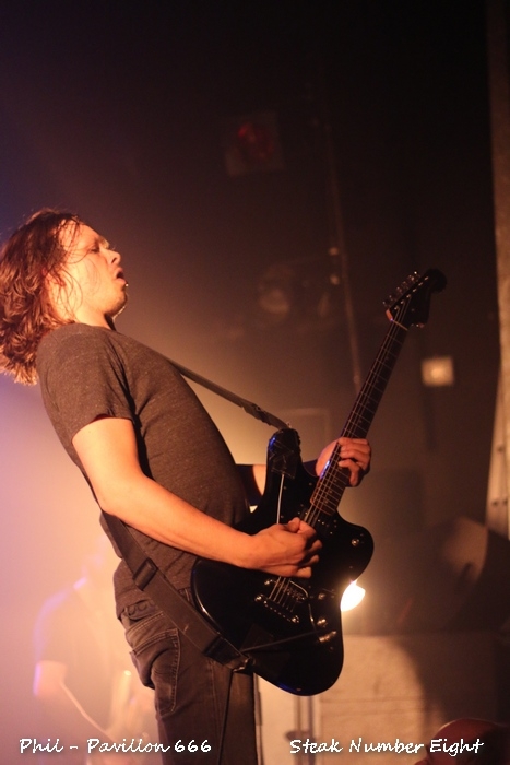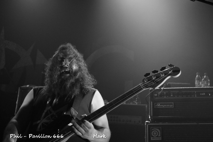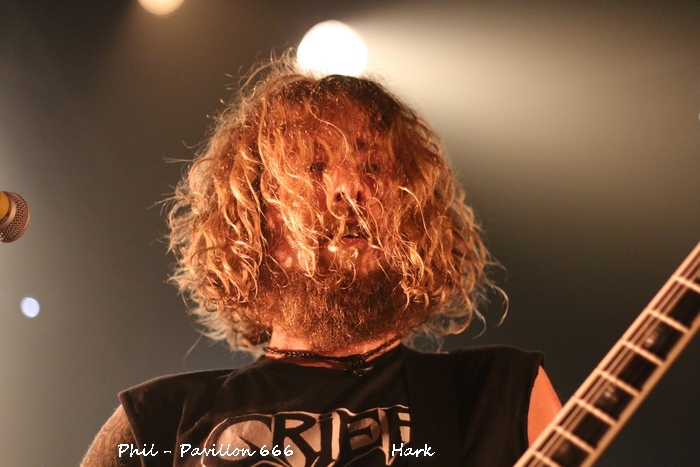 Lorsque les lumières s'éteignent la place se voit occupée par le quatuor venu de Belgique. Steak Number Eight a donc la lourde tâche de chauffer une salle impatiente de voir Tommy Victor et ses deux compères, toutefois l'assistance reçoit la formation de post rock / sludge metal avec courtoisie. Les membres foulant une scène étroite se démènent sans retenue, surtout son guitariste et vocaliste, Brent Vanneste. Le frontman délivre un set mouvementé, semblant par instant légèrement dans un autre univers. La prestation de Jesse Surmont et de Cis Deman est moins agitée, le premier fait suivre sa basse durant ses interventions de headbanging quant au second, il est plus appliqué pour se concentrer sur ses riffs imposants et soli. Joris Casier assure l'ossature rythmique sans laisser ses fûts mollir. Le set est relativement court mais permet de faire une belle découverte. Le second band a officier arrive du Pays de Galles et se nomme, H.A.R.K. Le trio mené par son guitariste et chanteur, Jimbob Isaac, distille une atmosphère orientée Stoner / Sludge metal. L'ensemble est relativement entrainant et parfaitement exécuté. Jimbob n'hésite pas à s'écarter de son pied de micro dès que possible pour venir sur le devant de scène lors des soli. Nikolia Ribnikov (basse) est beaucoup plus mobile que son compère et fait une bonne partie du spectacle à lui tout seul partageant, ou plutôt échangeant avec Simon Bonwick (batterie) son partenaire rythmique. Les six titres interprétés permettent au public d'entrer dans la musique du trio et de partager un set agréable. Le moment tant attendu arrive à sa fin, lorsque le second trio monte sur scène. Prong pour sa tournée européenne nous consacre qu'une seule date, mais quelle date! Tommy Victor intenable sur les planches parcours la scène dès que ses partie vocales s'arrêtent, le guitariste fait le spectacle, propose toutes sortes de figure dans ses sauts, vient au contacte du front de scène. Le frontman connait son job et sait parfaitement mettre le public à sa cause, n'hésitant pas à communiquer avec ses fidèles. La scène fait l'objet de tremplin pour des stages diving, l'attitude fait sourire Jason Christopher (basse) et l'entraine dans un jeu de scène faisant croire le contraire. Le musicien ne s'économise guère, à l'identique de Tommy Victor, malmenant sa basse et venant chauffer son collègue assis derrière les fûts. Une attitude hardcore adaptée au set du trio. Arturo Cruz (batterie) n'est pas en reste et fait souffrir ses fûts sans modération, avec un tel duo l'assise est sans faille. La set-list équilibrée propose des standards du groupe et son lot de cover, au programme du gothique, du punk, du rock déjanté mais aussi des thèmes thrashy, hardcore avec les titres issus du trio. Que ce soit au niveau de la qualité du set, des lights et du son, tout est fait pour que cet événement soit ancré à jamais dans les mémoires des heureux participants. Pour que la soirée finisse de la plus manière, Tommy et ses compères reviennent au devant du public non plus sur les planches mais sur le stand de merchandising pour des séances photos et dédicaces. L'équipe de l'Empreinte nous a offert à nouveau un concert mémorable, qu'il ne fallait manquer sous aucun prétexte. Setlist Prong 01 - Ruining Lives 02 - Seeing Red (Killing Joke cover) 03 - Beg To Differ 04 - Unconditional 05 - Eternal Heat 06 - Lost And Found 07 - Doomsday (Discharge cover) 08 - Turnover 09 - Banned in D.C. (Bad Brains cover) 10 - Rude Awakening 11 - Another Worldly Device 12 - Whose Fist Is This Anyway? 13 - Snap Your Fingers, Snap Your Neck 14 - The Barriers 15 - Revenge...Best Served Cold 16 - Vision Thing (The Sisters of Mercy cover) 17 - Power Of The Damager 18 - For Dear Life |