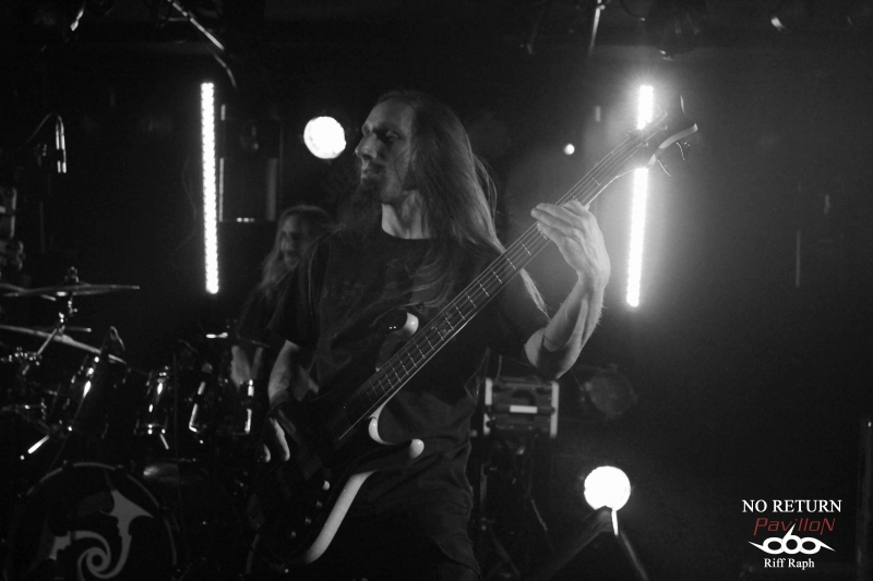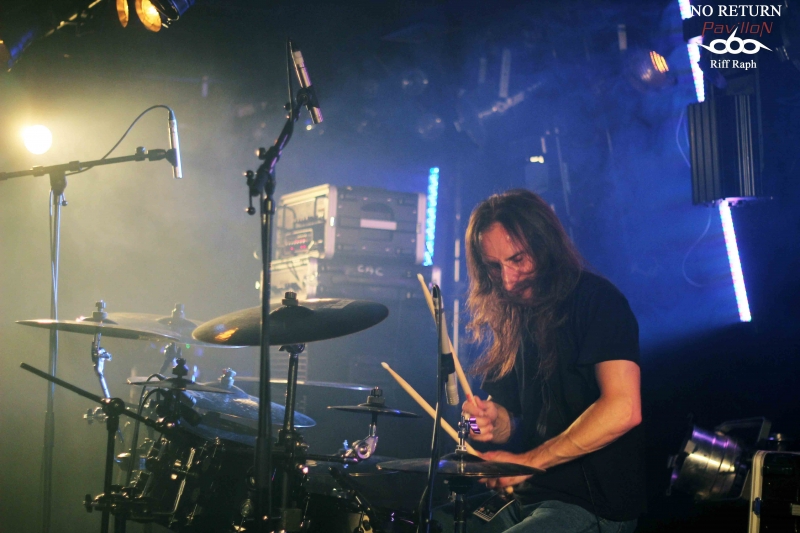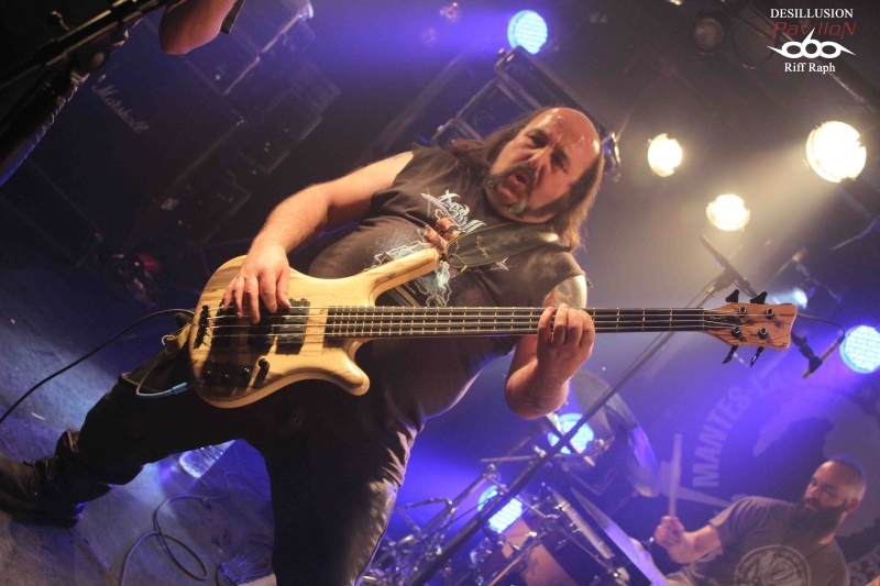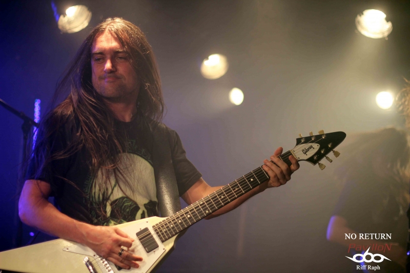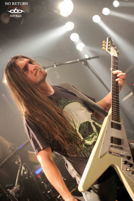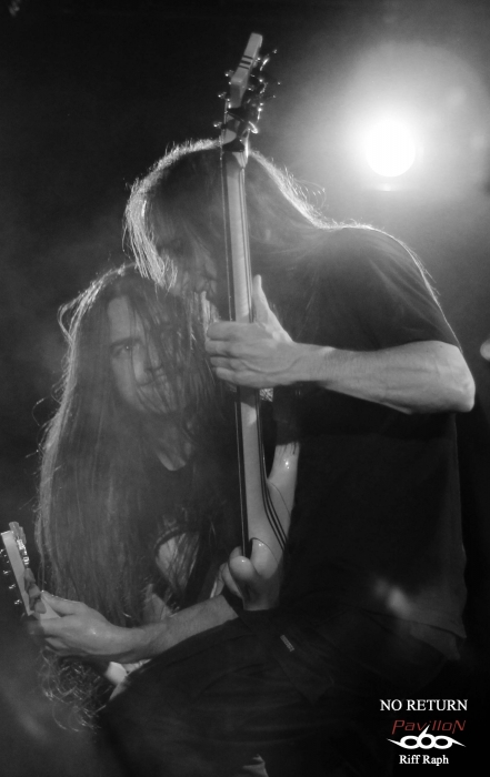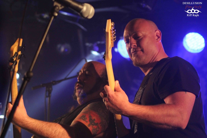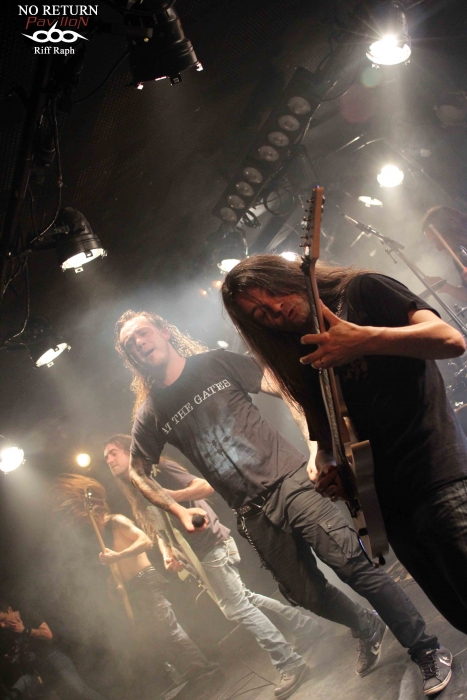 C’est donc dans la petite salle du CAC Georges Brassens que j’arrivais vers 19h00 pour l’interview et le live report de No Return mais avant cela, un autre groupe français venu de Lisieux « Désillusion » assurait la première partie. DESILLUSION : Désillusion nous donnera donc un bon récital hard-rock/heavy metal aux influences françaises et anglo-saxonnes avec des riffs habiles et des solos justes qui sonnent bon les années 80. Nos Nordistes ont sorti leur troisième album « Metal Influences » après un silence de près de six ans. Ils joueront donc évidemment des morceaux de cette dernière galette mais également d’autres plus anciens pour le plus grand plaisir d’un public connaisseur qui reprendra en cœur certains refrains. Jimmy au chant laissera sa place à Yvon le bassiste. C’est avec sa grâce coutumière qu’il se fendra d’un joli striptease en fin de set et le concert se terminera par la reprise « Rock’n’Roll Secours » de Vulcain. Une bonne mise en bouche qui chauffera la salle et laissera un bon souvenir aux nostalgiques des « eighties »… NO RETURN : On ne présente plus, du moins on ne devrait plus le faire, No Return, la référence du Death/Thrash hexagonal. Après un dernier album « Fearless Walk To Rise » très bien accueilli par la critique, nos Parisiens semblent vouloir monter encore un cran au-dessus. J’en veux pour preuve un enregistrement aux petits oignons par le très talentueux Jacob Hansen le tout géré par le label bien connu « Mighty Records ». Le groupe a trouvé depuis un moment ce style Death/Thrash qui mélange les influences américaines, allemandes et scandinaves. Vous ajoutez cette touche mélodique propre au guitariste Alain Clément, fondateur et unique survivant du line-up original et vous avez là une recette qui fait mouche. Il sera talentueusement secondé à la guitare par Jérôme durant tout ce set. No Return en treize titres nous donnera la pleine mesure de leur palette musicale avec leur nouveau frontman Mick et sa voix puissante qui ne ménage pas sa peine pour mettre le feu dans la salle. Ce qui arrivera très vite d’ailleurs… La partie rythmique basse/batterie des frères Barbosa n’a plus grand-chose à prouver en matière d’efficacité. Le groupe va dérouler ainsi pendant un peu plus d’une heure sans faiblir. La bière coule à flot, je vois une fille en soutien-gorge, des metalleux aux torses nus et dégoulinants de sueur. La testostérone transpire par tous les pores de la peau dans une ambiance festive. Nous étions une centaine mais l’impression d’être bien plus nombreux. Ce n’est d’ailleurs pas innocent qu’ils soient programmés sur une des mainstages du Hellfest cette année (à ne pas rater). On pourra juste regretter que les organisateurs n’aient pas eu cette idée plus tôt. Ils seront ensuite en tournée européenne entre concerts et festivals pour défendre leur dernière galette hors de nos frontières (voir l’interview en lien sur ce live report). Après 26 ans, No Return fait toujours ce qu’il sait faire de mieux, c'est-à-dire une musique honnête, efficace et qui ne triche pas. Un très bon live à la hauteur de mes attentes. Set List : 01-Stronger Than Ever 02-Borderline 03-Rising 04-Inquisitive Hegemony 05-News Items 06-Submission Falls 07-Paint Your World 08-Backdoor 09-Sworn To Be 10-Virus 11-Civil War 12-Fanatic Mind 13-Vision Of Decadence Pour terminer tous mes remerciements à No Return pour son accueil, la production et les organisateurs du concert. |