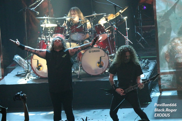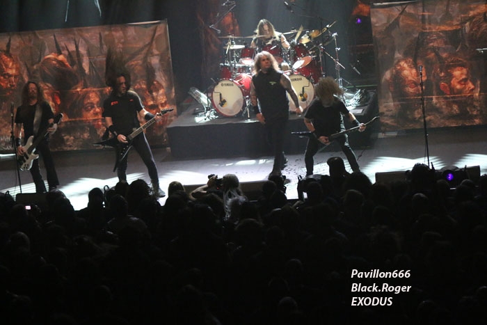 Au menu de la set-list des titres de leur nouvel album « Blood In Blood Out » comme « Black13 », « Blood In Blood Out », « Salt The Wound », « Body Harvest », mais aussi du plus ancien comme Bonded By Blood » et « Pirahna » Que du bon donc, de l’Exodus pur jus imparable avec un line-up en forme, une déco de scène remarquable et une prèsence incroyable, que demander de plus ?