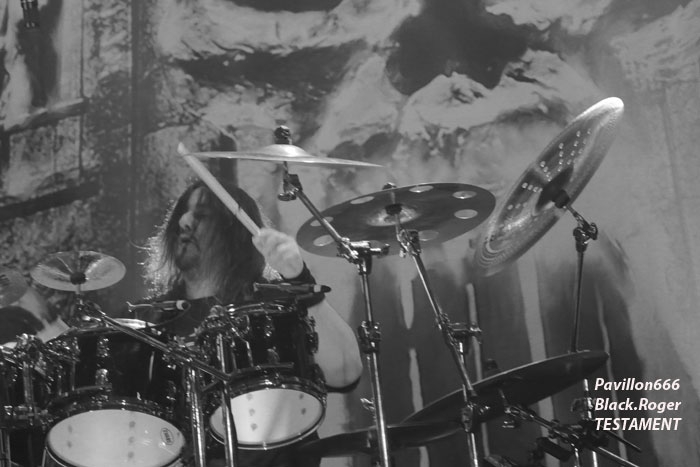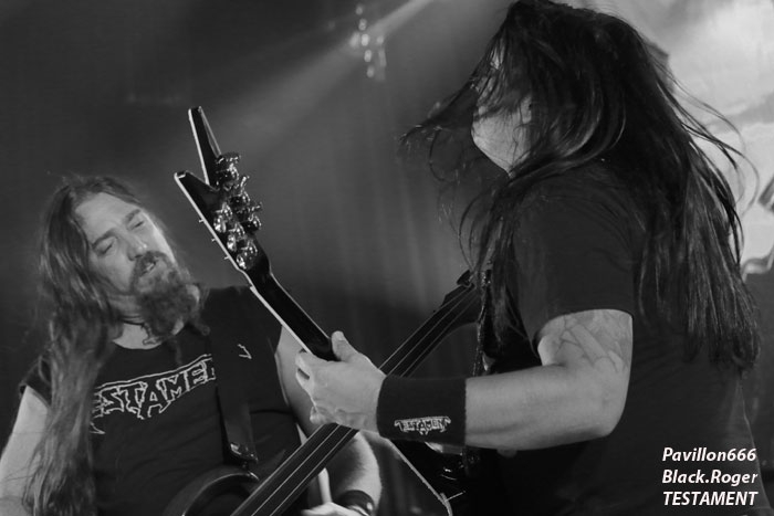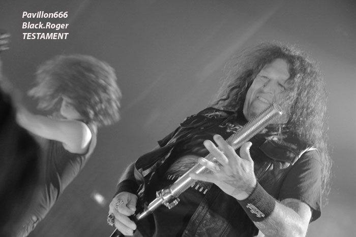 Bon, soyons clairs, tout n’est pas extrêmement varié dans les titres proposés ce soir et à l’occasion on pourrait déceler une certaine linéarité et un manque d’inspiration en filigrane. Mais bon, la qualité d’interprétation, l’impact imparable des musiciens compensent le tout et au final c’est bien ce qu’est venu chercher le public ce soir, du metal qui tâche, qui vous éclate la cervelle sur un rythme d’enfer. Et cela a fonctionné au-delà de nos espérances. Chuck Billy et ses acolytes nous ont mis une bonne claque comme seul le thrash old-school pouvait le faire dans les 80’s, la technique en plus. TESTAMENT a donc prouvé encore une fois qu’il était toujours l’un des grands maitres du style californien tout simplement.