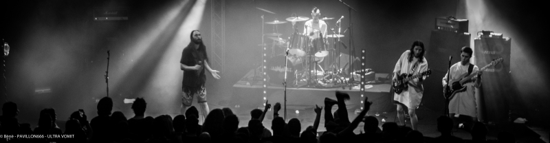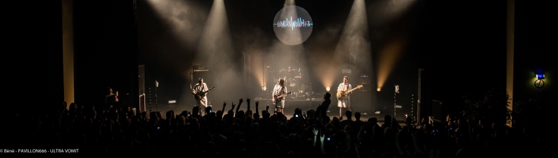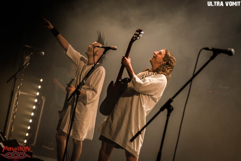 Ils étaient attendus, la foule présente devant la salle en témoigne. Il faut dire qu’ils s’étaient faits rares, c’est mon baptême d’Ultra Vomit en live et j’ai hâte.