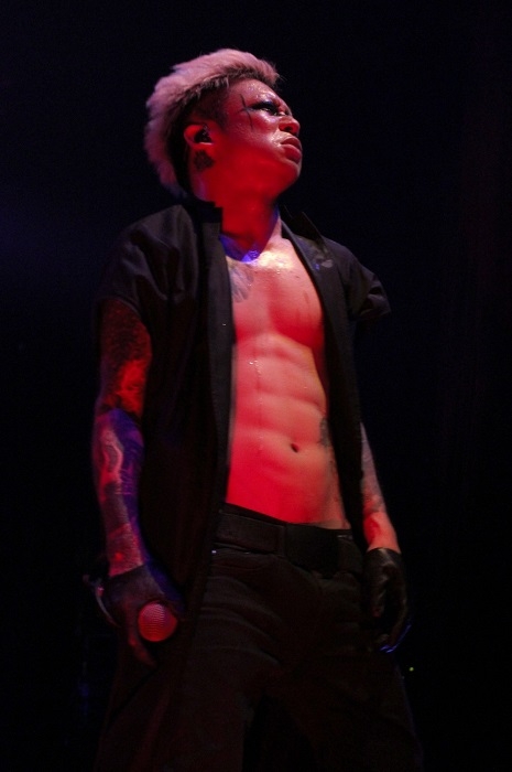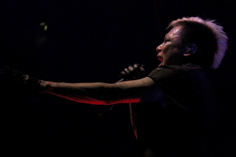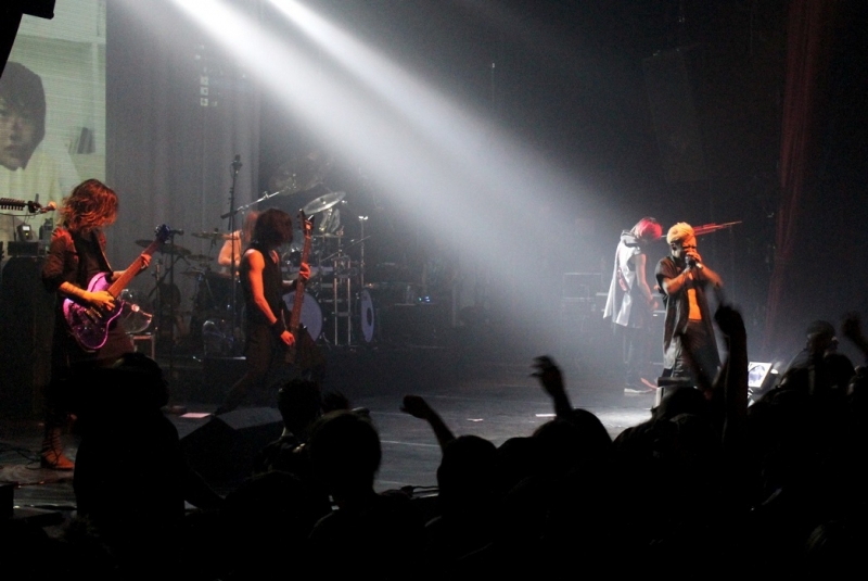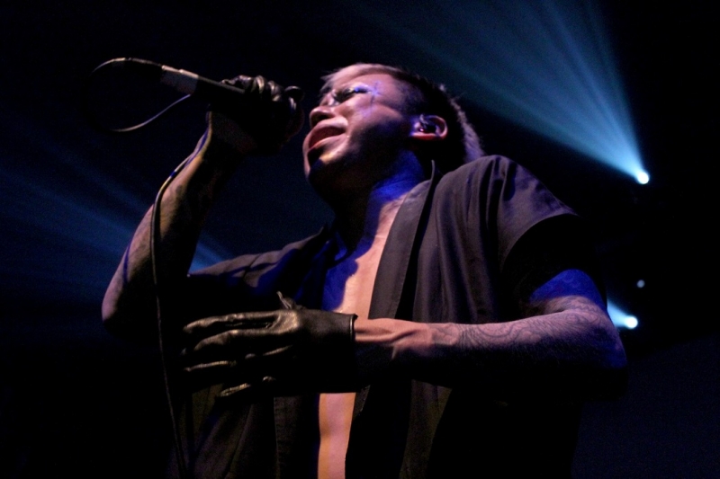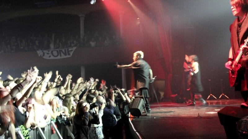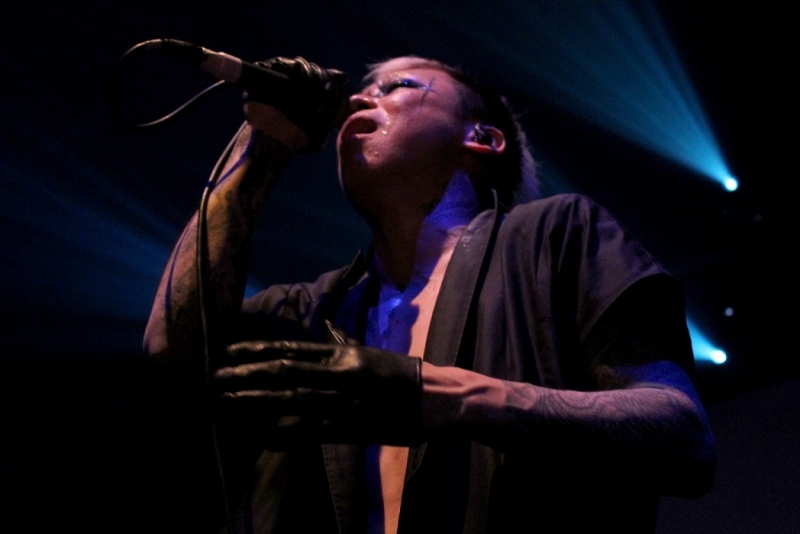 Il est 17h30 lorsque j'arrive aux abords de la salle, et déjà une longue file d'attente s'est formée. Depuis combien de temps sont-ils là tous ces jeunes (et moins jeunes) gens, nul ne le sait. Comme je suis bien élevée, je ne profite pas de mon statut privilégié pour entrer avant tout le monde, et prend donc mon bien en patience (l'expression est voulue, j'y reviendrai …). Accompagnée de mon ami Le Loup Arctique, je profite que celui-ci garde ma place dans la file, l'occasion pour moi de faire un état des lieux. Au début de mon exploration, rien ne me paraît vraiment excentrique, mais au fil de mon avancée, le look des fans est de plus en plus remarquable, certains semblant tout droit sortis de la Japan Expo. Alors oui, il faut bien le dire, la proportion de fans asiatiques est plus élevée qu'à l'accoutumée (n'y voyez là qu'un simple constat). Les autochtones franciliens ont bien sûr fait le déplacement, mais aussi des gens venus des quatre coins de la France. J'ai même cru voir sur la page Facebook de l'évènement que nos cousins belges seraient de la partie. Le début du concert était annoncé pour 19h30 mais ce n'est que vingt minutes plus tard que les Marseillais de Dagoba font leur entrée en scène, et ça démarre tout de suite très fort. Avec leurs six albums à leur actif en douze ans, leur réputation n'est plus à faire, et leur présence ce soir semble être plus qu'appréciée. Malgré leurs nombreux passages dans ma région ces derniers temps (notamment lors de la dernière édition du Triel Open Air en juillet dernier), ce n'est que ce soir que je vois le groupe pour la première fois en live, et autant vous dire que l'on n'a pas été déçu du voyage ! A quatre qu'ils sont, les Provençaux dégomment tout sur leur passage. Qui a dit qu'au pays des cigales on se la coulait douce ? Que nenni, Dagoba, c'est tout, sauf de la finesse. Pas le temps de souffler, leur metal industriel virant très souvent sur le death ne nous laisse aucun moment de répit. La recette appliquée fait l'unanimité auprès du public, pourtant venu essentiellement pour Dir En Grey. Les pogos ne sont pas longs à poindre le bout de leur nez, et le groupe pourra se vanter ce soir d'avoir provoqué le plus grand circle pit et le wall of death le plus impressionnant de toute la soirée. Dommage que j'aie été si encombrée, me joindre à la danse me démangeait profondément ! Moi qui raffole des circle pits, j'aurais été servie ! Chaque membre du groupe dégage une énergie hors norme, à commencer par son chanteur, Shawter, dont la prestance faisait plaisir à voir. Les autres membres n'ont pas démérité non plus, loin de là. Le guitariste Z et le bassiste Ytier parcourent la scène en long, en large et en travers, et du côté de chez Franky, ça tabasse fort ! Environ trois-quarts d'heure plus tard, c'est déjà la fin du set. Le groupe aura accompli sa mission de première partie avec brio, le public est remonté à bloc pour accueillir la tête d'affiche. SETLIST Bram Stocker's Dracula 1. I, Reptile 2. The Nightfall and All Its Mistakes 3. Black Smokers (752° Farenheit) 4. When Winter … 5. The Great Wonder 6. Born Twice 7. It's All About Time 8. The White Guy (and the Black Ceremony) Le moment que j'attendais le plus arrive enfin … Non je plaisante, en réalité j'appréhendais énormément : j'avais écouté Arche voilà deux mois de cela, et j'en suis ressortie quelque peu … perplexe dirons-nous. Dir En Grey est à dix mille lieues de ce que j'écoute habituellement. Advienne que pourra, je n'ai plus qu'à prier pour que leur musique passe mieux en live … Il est 21h passées lorsque le groupe monte sur scène, et avant même qu'ils n'aient commencé à jouer, j'ai déjà perdu mon oreille droite : à en juger par les cris aigus qui retentissent dans la salle, ce n'est pas la testostérone qui semble l'emporter dans le fanclub. L'hystérie collective résonne dans tout le Bataclan. Je me dis alors que je vais peut-être revoir mes à priori : « Pour qu'ils y mettent autant d'enthousiasme, c'est que ça ne doit pas être si mal ... ». Jusqu'au troisième morceau de la setlist, j'arrivais encore à survivre tant bien que mal. Je le reconnais, les acrobaties vocales du chanteur Kyô forcent le respect, celui-ci passant en un tour de main d'un growl profond à un chant aigu extrêmement théâtral. J'ai été davantage réceptive aux passages lors desquels les vocaux caverneux étaient mobilisés, le death metal étant l'un des styles que j'affectionne le plus. Malheureusement pour moi, ils n'apparaissaient que ponctuellement, à peine je m'enjaillais que mon plaisir était gâché par cette voix criarde. Pourtant avec le black, j'ai l'habitude, mais allez savoir pourquoi, malgré toute la bonne volonté du monde, je n'ai pas adhéré. Première hypothèse : le post-visual kei n'est pas un style qui me correspond. Deuxième hypothèse : mes oreilles occidentales ne sont pas habituées au chant en japonais. Autre chose qui m'a choquée, le statisme et l'absence totale de communication du groupe avec le public. À l'image de son chant, seul le chanteur délivrait tout ce qu'il avait en lui, allant même jusqu'à tomber au sol. Cette théâtralité poussée à l'extrême contrastait excessivement avec le jeu des musiciens quasiment inertes. Puis sans rire, aucun n'a décroché un mot de tout le set … Certes, le français n'est pas leur langue maternelle, mais tout de même, ne pas faire l'effort de dire au moins « Bonsoir Paris, comment ça va ? ». Bref, paradoxalement, pour un concert de metal, j'ai trouvé que ça manquait terriblement de vitalité. Les autres spectateurs ne seront pas de mon avis, s'il l'on en juge les headbangs continuels, les pogos qui se sont déclenchés, sans oublier les phases de karaoké sur les tubes du groupe. Première hypothèse confirmée donc, ma sensibilité musicale est radicalement différente de celle du reste du public