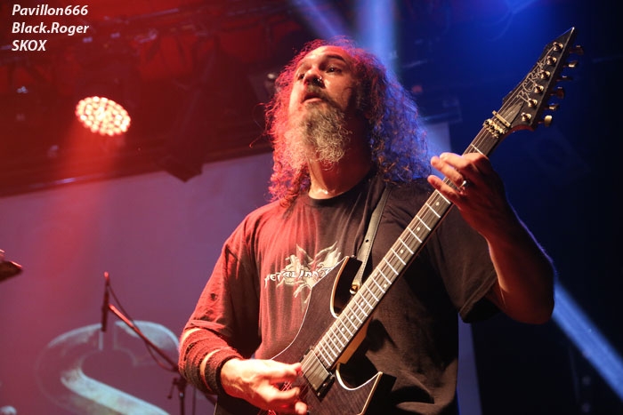 Avec un mélange thrash et death agressif et implacable J.C. a su rallier ses troupes même si le guitariste Vince était à moitié blessé. Nous avons vu aussi Gildas, le second guitariste ne tenant plus en place sur scène, un bassiste Florent ayant mis le turbo à son instrument et Arnaud qui a failli détruire son kit de batterie. Set énorme tout simplement et le groupe a placé bien haut la barre dans un Fil en ébullition. Alors maintenant tout le monde est chaud, bouillant pour accueillir la tête d’affiche de la soirée.
