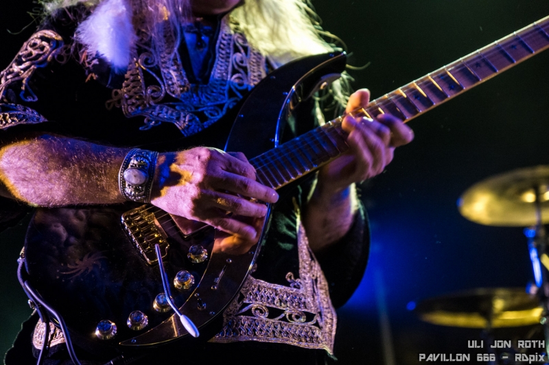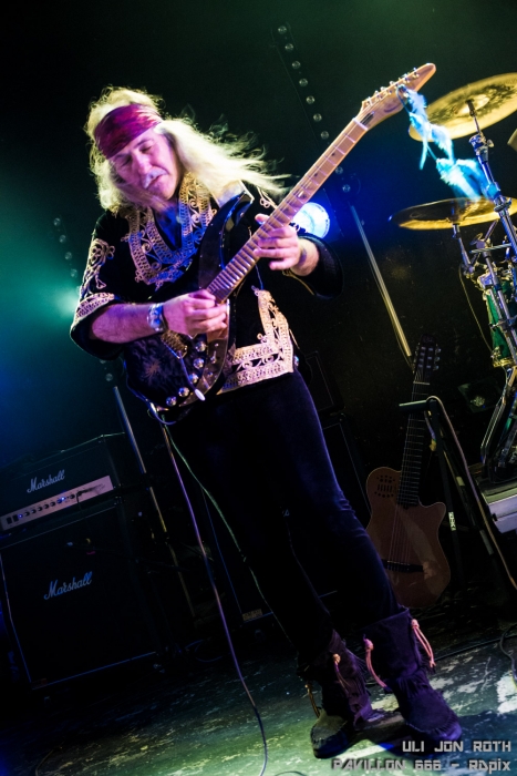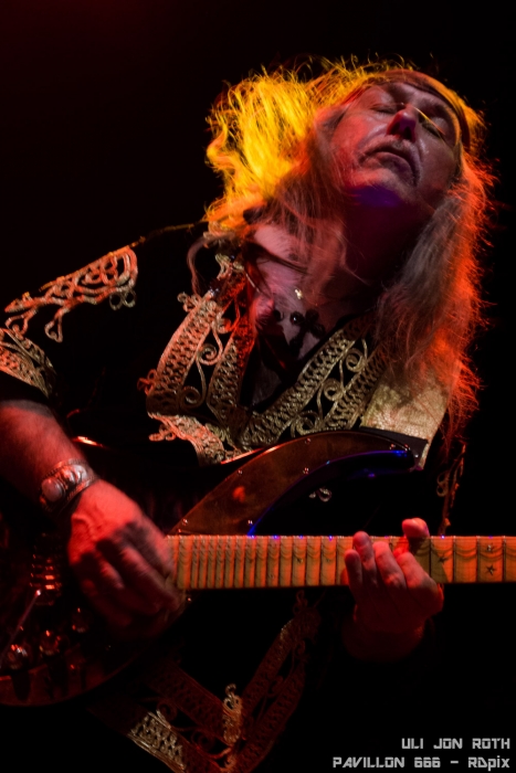 Ce vendredi 12 juin 2015, nous avions prévu Béné et moi, de vous faire un live report à deux, de Body Count et voir même une interview d’ Ice-T. Mais les choses ne se sont pas déroulées comme prévu et l’accréditation nous fut refusée. C’est comme ça, parfois la vie c’est difficile. Il faut savoir rebondir après un coup dur. J’ai donc accepté de remplacer Maulny qui n’a pas pu se rendre à l’Empreinte de Savigny Le Temple pour le concert d’Uli Jon Roth. « Ce sera peut être mon lot de consolation » me disais-je. Je n’ai pas eu de rappeur charismatique mais j’allais avoir à la place un branleur de manche virtuose. Et pas n’importe quel manche. Le guitariste ne se déplace jamais sans sa Sky Guitar, engin de prestige de sa conception. Grâce à ses 7 cordes et ses 38 frettes, cette guitare est un peu devenue sa marque de fabrique.