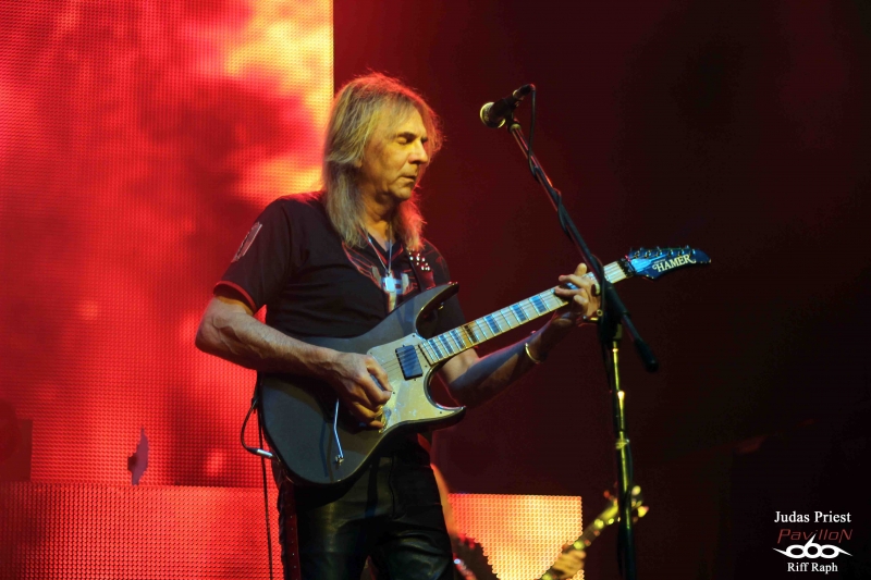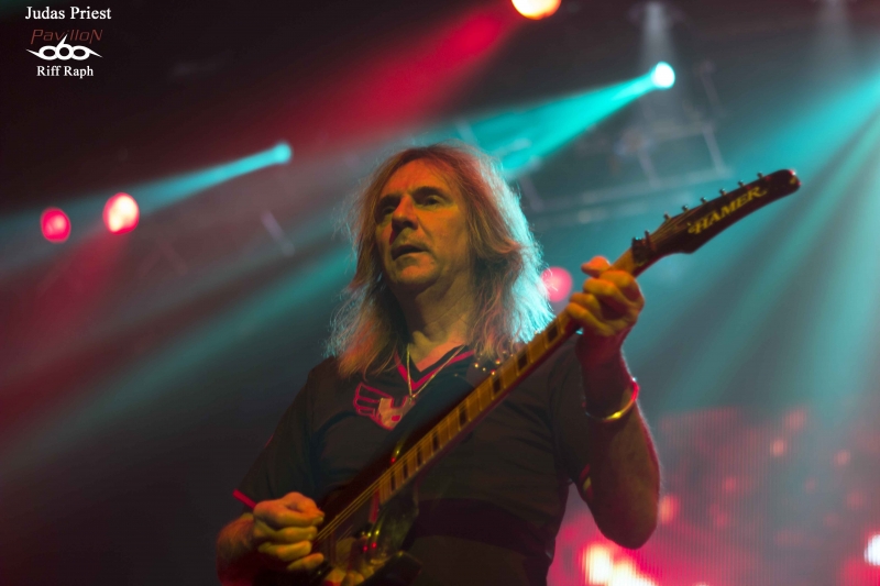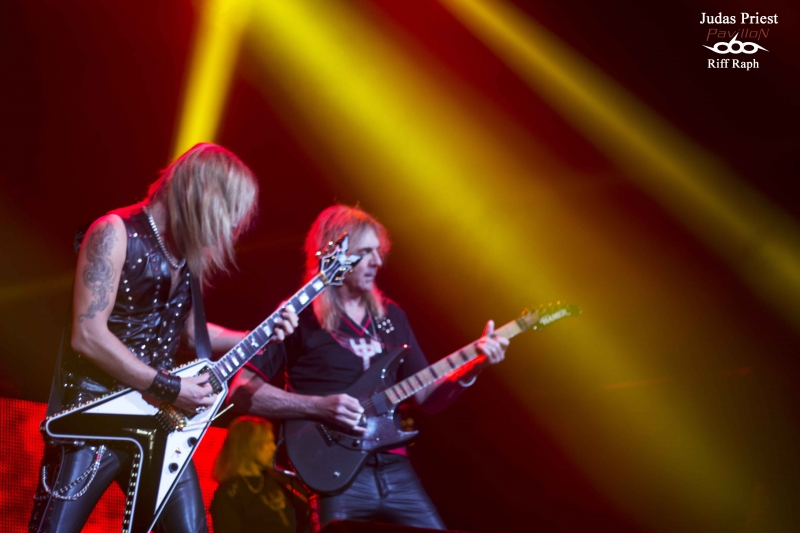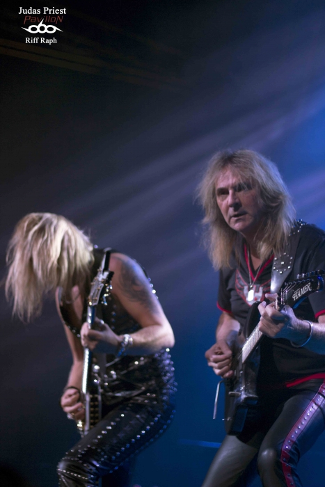 FIVE FINGER DEATH PUNCH Inutile de présenter nos cinq Américains qui se présentent sur la scène vers 20 heures. Ce groupe a su se frayer un chemin vers la lumière grâce à des compostions solides et une forte personnalité. La setlist ci-dessous sera un bon condensé de ce que fait de mieux la formation. Nos protagonistes savent mettre l’ambiance, toujours aussi proche du public, ne les lâchant pas un instant, sollicitant constamment la foule, invitant deux metalheads sur scène pour reprendre le refrain de « Burn MF ». Même Rob Halford, planqué derrière la scène ne perdra pas une miette de cette prestation. Pour conclure, une dose de bonne humeur pour bien nous préparer au plat de résistance. Un seul regret, le mixage, en effet le son n’était pas tip top. Setlist : 1.Under and Over It 2.Hard to See 3.Lift Me Up 4.Bad Company 5.Burn MF 6.Coming Down 7.Never Enough 8.The Bleeding JUDAS PRIEST La première question qu’on pourrait se poser est : Rob Halford est-il toujours en voix ? Et bien oui et c'est avec sa canne, accessoire de scène et non médical, que notre chanteur charismatique se présentera à nous. Niveau chant notre frontman assure toujours et laissera sans voix (jeu de mots) les sceptiques présents dans la salle. Niveau décor, hormis un écran géant le tout reste plutôt minimaliste avec un jeu de lumière basique. Très peu aussi de communication avec le public, ça bouge pas trop non plus mais pour ceux qui connaissent bien nos Anglais, cela n’a rien d’étonnant car ils sont coutumiers du fait. Néanmoins nous aurons droit à tous nos classiques préférés avec une setlist bien pensée qui nous fera voyager à travers les différentes époques et inspirations du combo. Même si la salle était à 85 % de sa capacité, Judas Priest aura démontré une fois de plus qu’ils sont toujours là malgré des fausses annonces de départ (marketing oblige…) et qu’on peut toujours compter sur eux pour balancer cette bonne purée heavy metal dont ils sont les fiers ambassadeurs. Un bon show à l’ancienne… 01.Dragonaut 02.Metal Gods 03.Devil's Child 04.Victim of Changes 05.Halls of Valhalla 06.Love Bites 07.March of the Damned 08.Turbo Lover 09.Redeemer of Souls 10.Beyond the Realms of Death 11.Jawbreaker 12.Breaking the Law 13.Hell Bent for Leather 14.The Hellion 15.Electric Eye 16.You've Got Another Thing Comin' 17.Painkiller 18.Living After Midnight 19.Beginning of the End Pour terminer, mes remerciements à l’équipe de Gérard Drouot Productions pour le pass photo, l’invitation et cette très bonne soirée. |