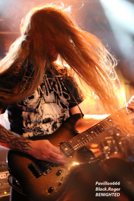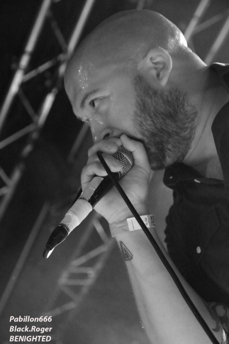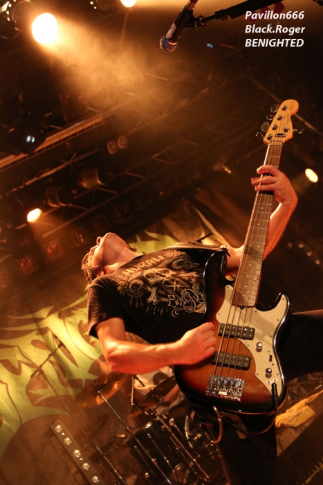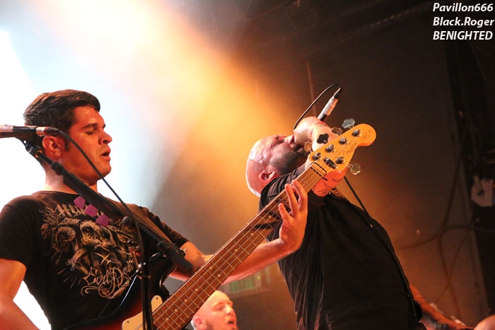 En effet, Benighted n’a pas ralenti le tempo et se bonifie en prenant de l’âge, mais pas en sagesse car en live c’est la défonce assurée avec des musiciens de plus en plus déchaînés qui nous présentent notamment des titres de « Carnivore Sublime » tous meilleurs les uns que les autres. Et la devant nous c’est le direct « in your face » avec une puissance de feu énorme sur un son à décoller la tapisserie de votre salon. Les vocaux de Julien relèvent de la psychiatrie et vont toujours plus loin en intensité malsaine et ses compères guitaristes tranchent dans la viande saignante, la basse nous remontant les tripes au cerveau, le tout servi par un batteur pas né de la dernière pluie de décibels, actuellement David Diepold de CATTLE DECAPITATION, tout un programme sanglant donc !