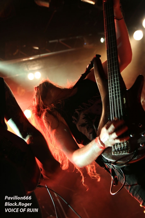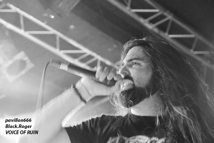 Les Voice Of Ruin ne jouent pas en fond de court et n’hésitent pas à venir au contact du public en bord de scène.