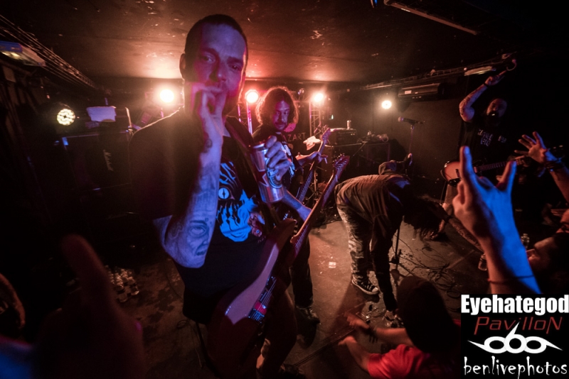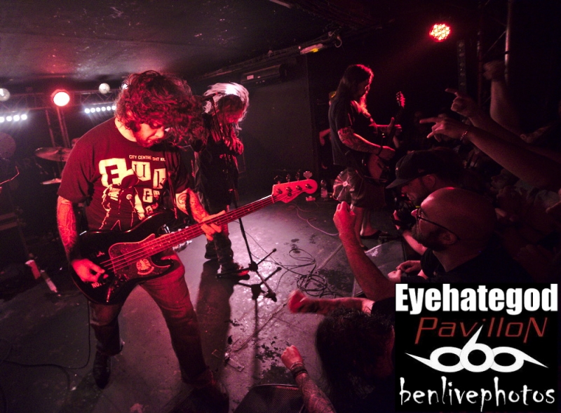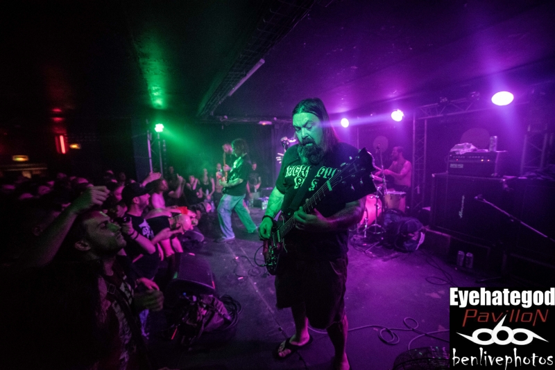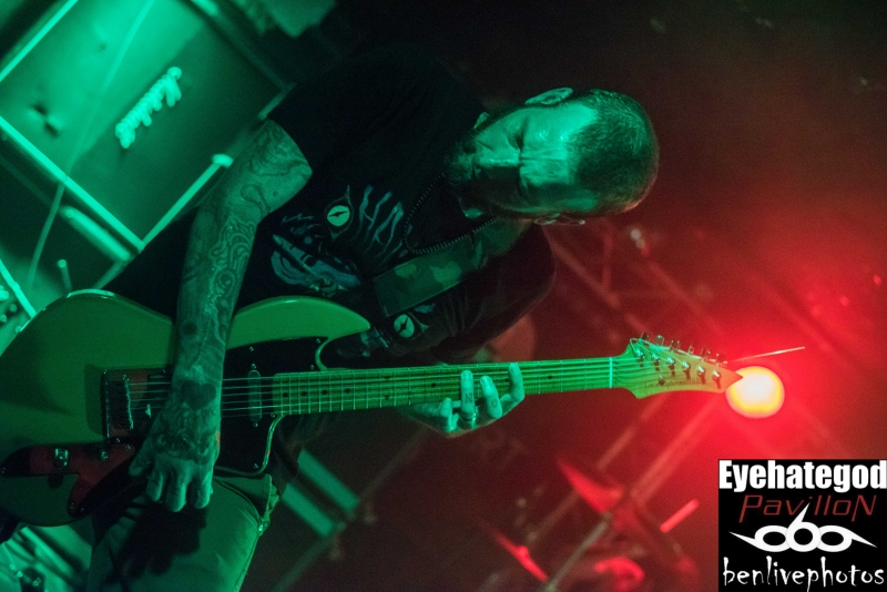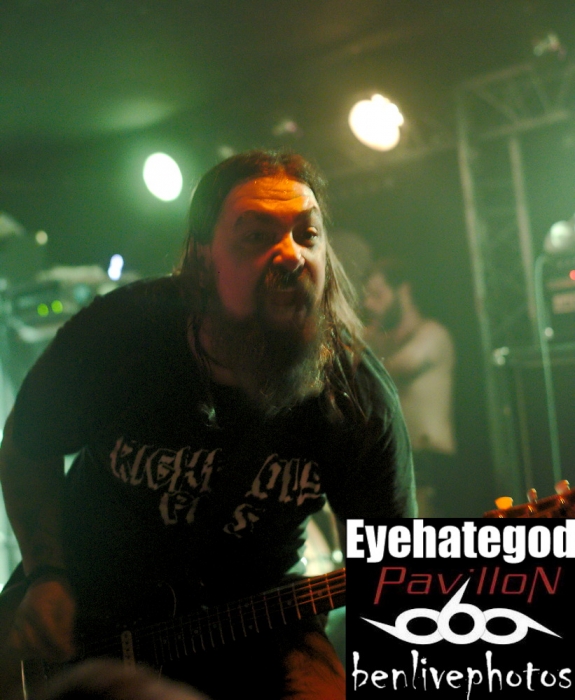 C'est en 1996 que je découvris Eyehategod, via l'album "Dopesick". A l'époque, Phil Anselmo faisait peu d'interviews, mais il arborait toujours un t-shirt Crowbar ou Eyehategod." Mais c'est qui ces groupes?!?" se demandait-on. Pas d'internet pour écouter un sample, alors j'ai acheté "Dopesick" sans savoir à quoi m'attendre, mais bon ça devait être cool puisque Phil Anselmo en faisait la pub...C'est ainsi que frappa chez moi le son NOLA (New Orleans-Louisiana).C'était quoi ce truc !!! Un mec qui braille, sans que l'on ne puisse comprendre quoi que ce soit, un tempo assez lent et surtout bien lourd. Des histoires de méthamphétamines, cachetons et autres drogues ... Le mythe Eyehategod était bel et bien né et dans les moments difficiles tu savais qu'il y avait un mec répondant au nom de Mike IX Williams qui vivait des heures plus difficiles que les tiennes. Eyehategod, l'exutoire de mon adolescence. Et puis, plus rien. Du moins sous le nom Eyehategod. Car la plupart des membres se sont mis à jouer avec leurs potes de la scène NOLA durant les années 2000. Le plus populaire sera Jimmy Bower qui joua dans Down et Superjoint Ritual (d'un certain Phil Anselmo), Brian Patton dans Soilent Green, Mike IX Williams dans Arson Anthem (toujours avec ce diable de Phil Anselmo) ou Outlaw Order. Puis en 2009, ce fut la résurrection. Eyehategod vient en Europe et devinez où ? Hellfest !! Il ne feront pas le voyage pour rien car cette année là, on aura donc Eyahategod, Soilent Green, Outlaw Order et Down. Au moins un membre d'Eyehategod par groupes cité ... plus un featuring de ... Phil Anselmo lors du set d'Eyehategod. Ce fut un succès total et depuis EHG tourne sans cesse, même après le décès de leur emblématique batteur Joey LaCaze. En effet, Eyehategod c'est pas mal de galères et cela va se vérifier encore un petit peu plus ce soir au Glazart, mais c'est à se demander si ce n'est pas dans l'adversité que ce groupe sort ses meilleures prestations.