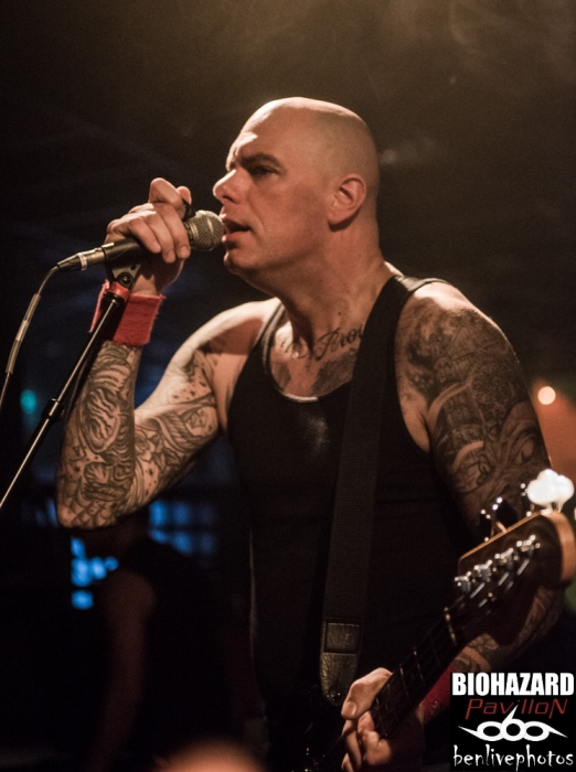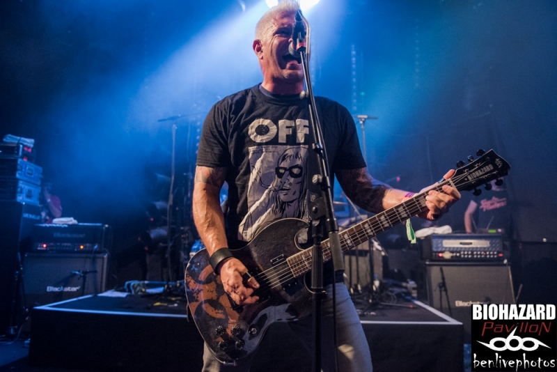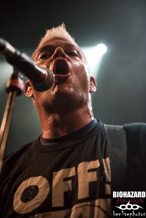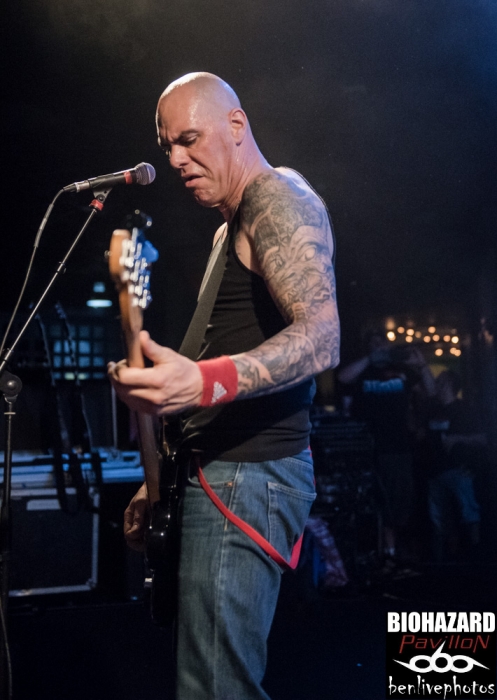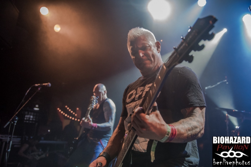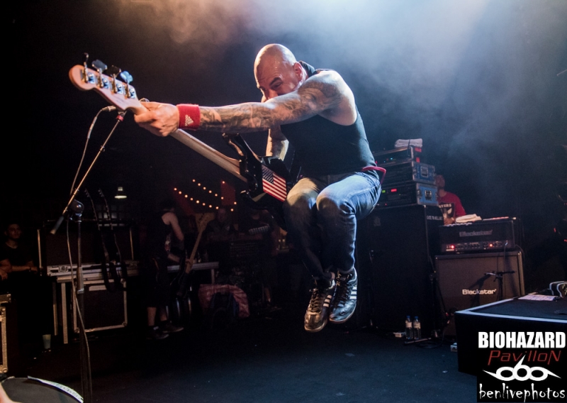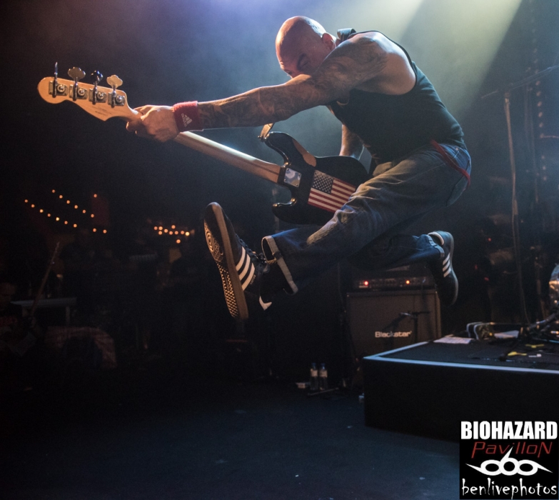 La tête d'affiche Biohazard arrive tranquillement sur scène pour balancer son hardcore qu'il performe depuis plus de 25 ans. Leur frontman musclé Billy Graziadei assure le chant ainsi que la guitare rythmique. C'est Bobby Hambel qui lui assure la lead guitare et ses soli. Danny Schulz est celui qui assure derrière les fûts et Scott Roberts qui remplace à la basse le mythique Evan Seinfeld, parti faire don de ses dons dans le porno, il ya quelques années. Biohazard attaque direct avec des titres d'un de ses albums classique, à avoir "Urban Discipline". Le ton est donc donné d'autant plus que le groupe enchaine avec des titres de "State of the World Adress" avec notamment "Tales from the Hardside" ou encore "Down for life", repris par les connaisseurs des premières heures. Billy, le chanteur, a fait part de sa cote cassée mais cela ne l'a vraiment pas empêché d'utiliser chaque recoin de la scène, de sauter ici et là et même de jouer en étant debout sur la foule. Ce mec a une prestance de fou, toujours souriant, good vibe ce soir!! Leur hardcore est assez metal au début. Bobby Hambel assure ses soli assez typiques, qui en font la patte Biohazard. Scott, est lui aussi celui qui saute le plus. Il semble avoir pu faire oublié Evan Seinfeld, omniprésent dans le jeu de scène. Scott assure énormément de chant et l'esprit Biohazard avec deux voix perdure donc. Par contre le flow hip-hop qu'il pouvait y avoir sur certain albums s'estompe un peu tout de même. Ils joueront quelques morceaux orientés plutôt punk comme "Howard Beach", tiré de leur premier album, ou bien une reprise du groupe de punk mélodique Bad Religion, à savoir "We're Only Gona Die".