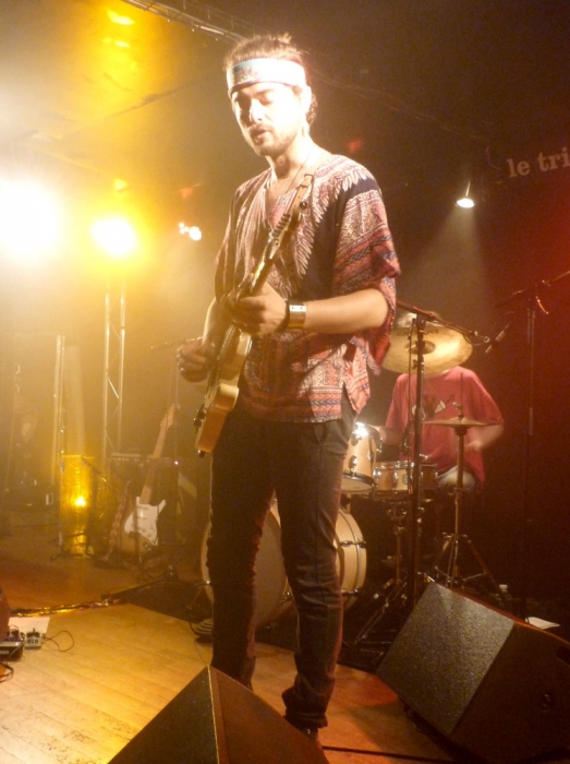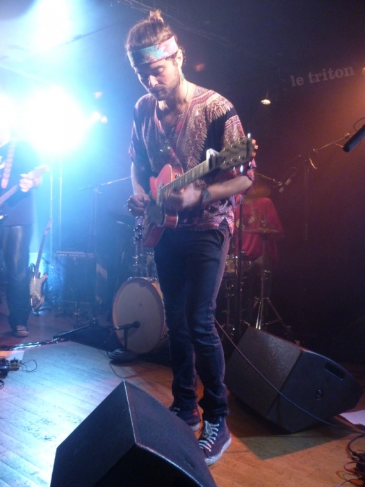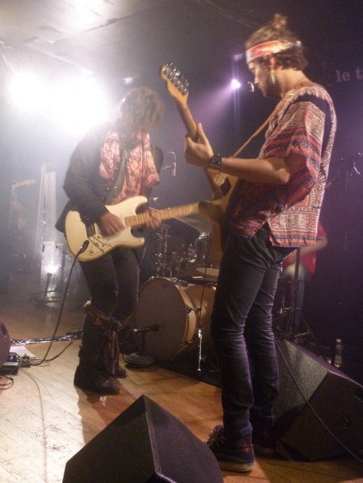 Le concert a lieu au Triton aux Lilas. Pour ma part, c'était la première fois que je me rendais dans cette salle, et je découvre ainsi à mon arrivée l'ambiance décontractée qui s'en dégage. Car le Triton, ce n'est pas qu'une salle de spectacle, c'est également un restaurant. 21h approchant, je me prépare à m'installer au premier rang. La salle est d'une capacité d'accueil fort modeste, d'une cinquantaine de personnes à vue d’œil. Sans grande surprise, c'est de nos chaises que nous profiterons du spectacle. Les spectateurs arrivent petit à petit, et je ne suis pas étonnée d'être une des plus jeunes dans le public, se situant majoritairement autour de la soixantaine. Les quatre musiciens arrivent sur la scène avec un petit quart d'heure de retard, et les premières notes de « Stone Free » retentissent. Aaaaaah nostalgie, que c'est bon d'entendre du Jimi en live, surtout quand on est trop jeune pour avoir eu la chance de connaître l'âge d'or « Woodstock » ! Quoique j'avais une crainte, par rapport à la voix. Je ne suis généralement pas une adepte des reprises, surtout que pour chanter comme Jimi, il faut se lever de bonne heure ! Certes, sans pour autant adopter le timbre si envoûtant et sensuel d'Hendrix, le guitariste/chanteur Marco Cinelli s'en sort plus qu'honorablement. Et après tout, le but n'est pas non plus de tomber dans l'imitation pure, il faut savoir y mettre sa petite touche. Il n'empêche que dans l'attitude du musicien, il y avait un petit quelque chose qui rappelait fortement l'icône. À commencer par sa tenue, hippie bien comme il faut, mais surtout par ses mimiques. Mais parlons des trois autres membres, car ils le méritent tout autant. Celui qui a accaparé le plus gros de mon attention pendant cette soirée, c'était le bassiste, Bruno Maurin. À en juger par sa démarche, sa manière de bouger d'avant en arrière, on sentait qu'il était inspiré par ce qu'il jouait et qu'il y prenait plaisir. Au passage, je lui trouvais un petit air de Dustin Hoffman, cela m'a bien fait sourire. Le batteur Alain Merlin Gouillar n'était pas en reste non plus, dégageant une énergie sans borne. Et les lunettes de soleil en pleine pénombre, trop la classe ! Le deuxième chanteur/guitariste, Philippe Fernandez, s'est montré plus sobre que ses acolytes, ce qui est dommage car je considère que lorsque l'on rend hommage à Hendrix, l'on peut se permettre davantage d'excentricité. Bien que la setlist soit – logiquement – consacrée à la discographie de Jimi Hendrix, les quatre musiciens ont fait le choix d'interpréter également deux titres du groupe de rock psyché britannique de la même époque, Cream. Ainsi, bien plus qu'un simple hommage à Hendrix, c'est celui d'une ère musicale auquel nous assistons ce soir. La fin du set approchant, Marco Cinelli invite un de ses amis guitariste, Jonathan, à le rejoindre sur scène pour « Eazy Rider ». Ce dernier le lui rend bien puisqu'à la fin du morceau, il lui joue à la guitare la mélodie de « Joyeux anniversaire ». Et voilà la salle toute entière qui chante « Joyeux anniversaire Marco ! ». Un deuxième guest, répondant au nom de Philippe (oui, encore un), fera son apparition sur scène lors de « Rock me babe ». Tous se retrouveront lors de l'ultime morceau de la soirée, le mythique « Hey Joe ». Mon seul regret de la soirée aura été celui de ne pas avoir entendu « Get down », mon morceau préféré d'Hendrix. Certes, il ne s'agit pas du titre le plus connu du guitariste, loin de là, mais je pense qu'un concert hommage n'est pas seulement fait pour reprendre les tubes d'un artiste, cela sert également à découvrir (ou redécouvrir) des trésors enfouis depuis tant d'années. Hormis ce petit caprice, j'ai passé une soirée fort sympathique, qui m'a fait sortir des sentiers battus et qui nous a prouvés à tous ce soir qu'après tout ce temps, d'une manière ou d'une autre, Jimi Hendrix vit toujours. God saves Jimi !!! SETLIST : 1. Stone Free 2. Third Stone from the Sun 3. Red House 4. Little Wing 5. Manic Depression 6. Have you ever seen 7. Voodoo Child 8. Badge (Cream) 9. White Room (Cream) 10. Wind Cries Mary Entracte (vingt minutes) 11. Purple Haze 12. Angel 13. Power of Soul 14. Foxy Lady 15. Fire 16. Castle made of Sand 17. Wait until Tomorrow 18. Eazy rider 19. Rock me babe 20. Hear my train a coming 21. Who Knows Encore : 22. Hey Joe |