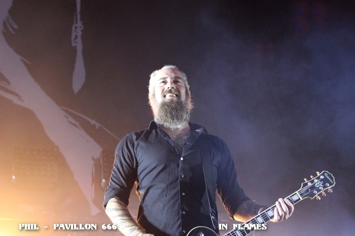In flames à la lourde tâche de préparer le terrain pour la venue de Korn puis Nightwish. Cela n'est pas une mince affaire... les deux précédentes journées ont démontré que les mentors pouvaient passer à coté, point de craintes avec les suédois. Même s'il ne faut pas s'attendre à une prestation révolutionnaire, les musiciens n'en sont pas pour autant en roue libre. Ils sont venus sur scène pour en découdre et le démontrent. La prestation est honnête, de qualité et précise. En une heure de jeu, In flames va à l'essentiel mettant le public en condition pour cette fin de soirée.