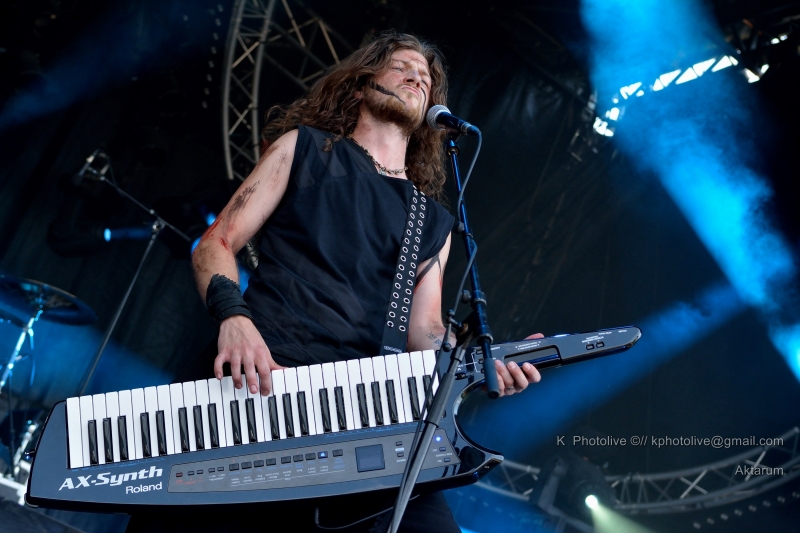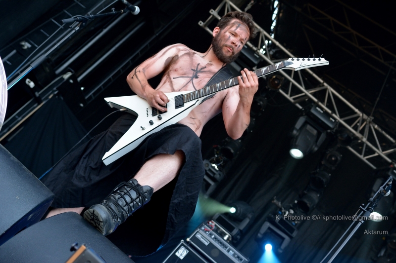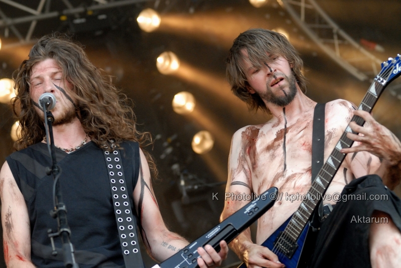 Groupe formé en 2005 en Wallonie, les Belges d'AKTARUM pratiquent un black metal nuance folk (troll). Ils sont cinq sur scène, le chanteur visiblement de bonne humeur et heureux d'être là, son synthétiseur sur les bras, harangue le public déjà nombreux en ce début d'après-midi, c'est une musique lente et lourde qui joue sur les contrastes avec de jolis passages mélodiques qu'ils nous délivrent au long de ces quarante minutes. Le set se termine par un petit rappel et par un beau pogo viril. Manifestement ce combo belge aura plu et suscité la sympathie. AKTARUM démontre qu'ambiance festive et black metal peuvent parfaitement cohabiter.