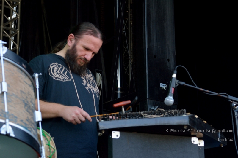 Séance de rattrapage pour les Roumains de Timisoara DIN BRAD (groupe actif depuis 2008). Il s'agit là d'un groupe issu d'un projet de Negru, batteur de NEGURA BUNGET, qui a joué le samedi. Contrastant avec ce que nous venons d'entendre devant la scène d'en face, la belle voix de la chanteuse est audible sur l'ensemble du site. En raison de problèmes techniques, le groupe n'avait pas pu jouer le vendredi soir.