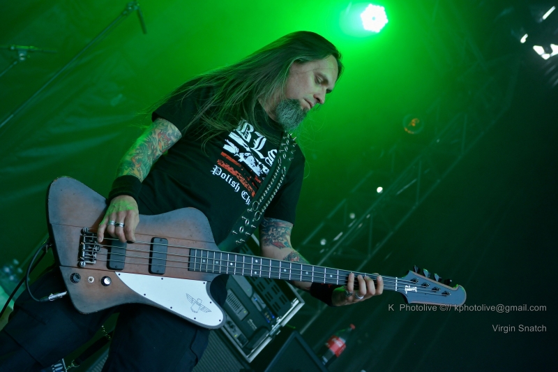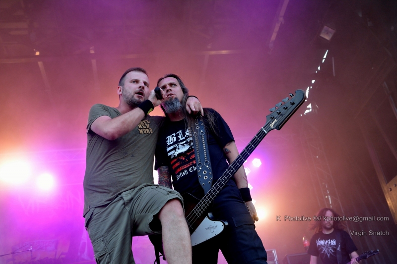 Un dernier concert sur cette scène avant que les deux têtes d'affiche n'occupent la Odin Stage. Et ce sont les Polonais de VIRGIN SNATCH, plus précisément de la belle ville de Cracovie, qui s'apprêtent à enflammer une dernière fois la fosse de la Thor Stage. Le quintette a déjà quatorze ans et pratique un thrash brutal et entraînant, presque festif. Le frontman-chanteur déborde d'énergie, il est impressionnant quand il arpente les planches de long en large et quand il descend dans la fosse aux lions pour se rapprocher de son jeune public, en effet ce sont de grands ados ou de jeunes adultes qui font l'autre spectacle en multipliant pogos, circle-pits et slams.