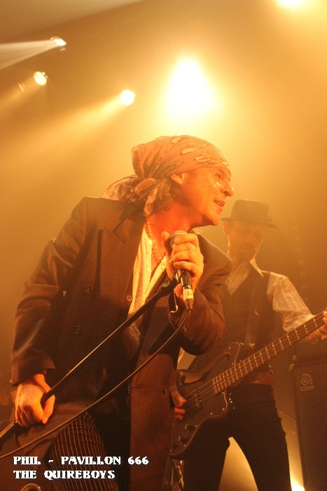 Les premiers à investir la scène sont les parisiens de Sweet Needles, les cinq musiciens avec un EP sous le bras délivre un ensemble énergique tendant sur un hard rock traditionnel. Efficace, direct les titres s'apprécient tout comme la prestation du groupe. Oscar (chant) remonté comme un coucou s'adonne à tous les exercices possibles, descente dans le public, sauts, allongé au sol... Cela semble un peu connu mais le vocaliste a préparé son jeu et donne à ces gimmicks une sensation naturelle. Ses compères sont plus discrets mais envoient quelques brûlots, permettant au public d'adhérer au propos de la formation. Un set un peu court, mais une bonne mise en chauffe. Le second prétendant n'est pas né de la dernière pluie et compte déjà plus de 10 ans d'expérience. Tout comme son prédécesseur High-School Mother...kers n'est pas sur scène pour faire de la figuration. D'entrée de set, les musiciens sont en place et dégagent une ambiance festive, efficace et d'aisance. Stuffy (chant, guitare), cheveux aux vent, rivé à son micro n'hésite pas à s'en écarter dès que possible, donnant du relief à sa prestation et invitant le public à exprimer son plaisir, son énergie. Le duo rythmique composé de Ben (basse) et Pamy (batterie) mènent un train d'enfer constituant une assise propre et fiable pour la paire de guitares. Davy (guitare) donne le change avec son frontman, les quatre pistoleros restituant sans failles les compositions du band. Fidèle à la musique du groupe, l'ensemble hard glam est autant exprimé musicalement que scéniquement. L'attitude Sex, Drugs & Rock'n'roll fait partie du background de HSMF, cela transpire sans être surjoué pour le plaisir des yeux et des oreilles. The Quireboys est depuis quelques semaines en France, le sextet termine sa première partie hexagonale pour revenir en septembre au Raismes Fest. Spike nous précise dès l'entame du set que sa journée a été relativement arrosée et qu'il est un peu "fatigué"... Heureusement que cette précision a été faite car à aucun moment l'attitude scénique du frontman en souffre. Le vocaliste montre un sourire radieux tout au long de la soirée, s'amusant avec le public, prenant la pose pour les clichés, assurant ses lignes vocales sans difficultés. Guy Griffin et Paul Guerin (guitares) mettent toute l'assistance d'accord avec des riffs sans bavures, des soli rugueux et bluesy dans une ambiance rock sans la jouer star. Pip Mailing (batterie) et son frère Nick (basse) constituent une paire solide, efficace en toute simplicité. Plus en retrait, Keith Weir (claviers) pose ses nappes dans les compositions mettant une dose d'édulcorant à des titres consistants. Sans être extravagant, les musiciens interprètent les compositions dans un esprit dynamique, dans une prestation captivante et garnie de fougue et de liesse. Le set est sans temps mort, donnant un sentiment de rapidité. Le public participatif prend autant de plaisir que les membres du groupe. La formation confirme qu'il est inutile de se la jouer rock star pour en être une, que l'état physique n'est pas un prétexte pour délivrer un set au rabais, qu'importe la taille de la salle il convient d'envoyer du lourd et d'honorer sa prestation. Une véritable Rock'n'roll attitude, façon The Ramones, Motorhead ou autres... Le premier volet metal 2015 se termine par cette soirée agréable qui nous été offerte par l'équipe de L'Empreinte. Le planning est en cours d'élaboration et la seconde partie de l'année promet déjà d'être intense. Si vous voulez être aux contacts de vos formations favorites, ils vous restent à regagner la salle seine et marnaise. |