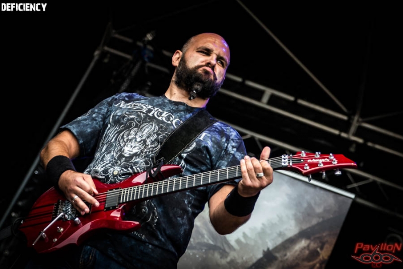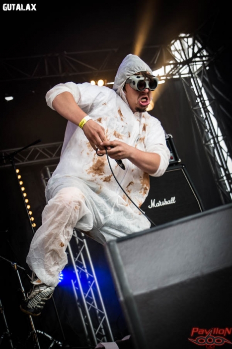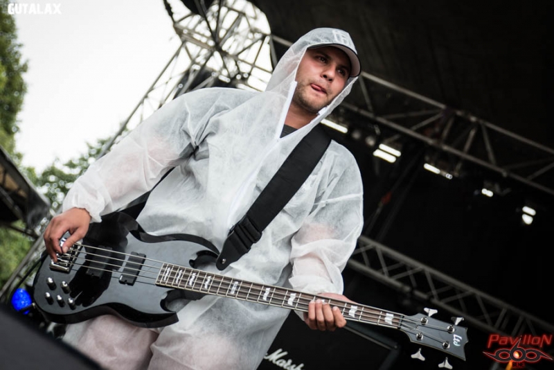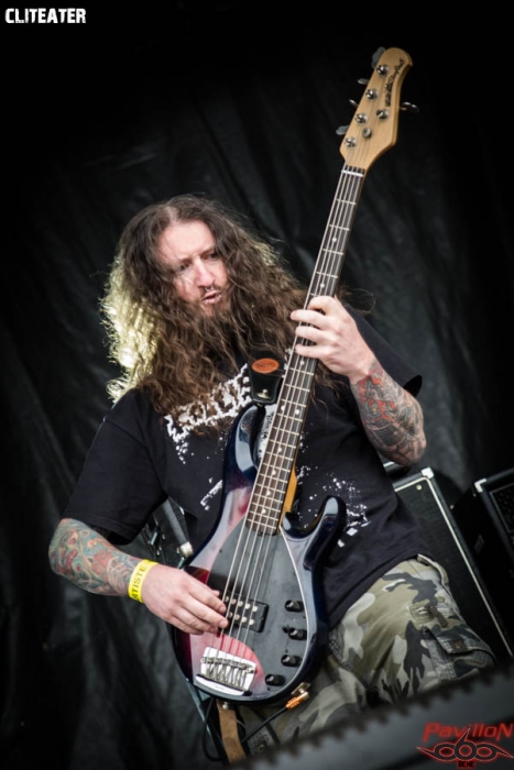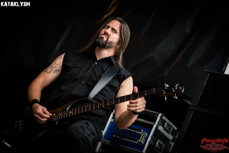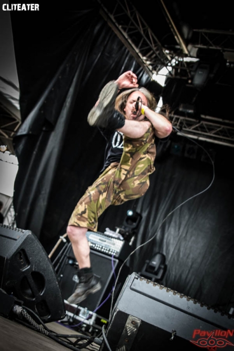 Les hostilités commencent avec un groupe de mon coin, dont je vous ai déjà parlé : DEFICIENCY. Ils ont rejoint l’affiche du fest un peu en last minute suite à un des désistements de groupe et ont donc la lourde tâche de motiver les troupes en ce dimanche matin. Et le moins que l’on puisse dire c’est qu’ils ne vont pas mâcher leurs efforts et qu’ils vont y arriver ! Les lorrains vont rassembler le public et un joli public se forme maintenant aux abords de la suppositor stage. DEFICIENCY provoquera le premier wall of death de la journée, j’ai fait ma flippée je me suis écartée ! Bah oui… j’avais l’appareil tout ça… hem… Bref nos quatre fantastiques vont secouer le Motoc à coup de thrash. Un thrash moderne, aux rythmiques efficaces et aux riffs accrocheurs. Anthony, habituellement batteur de son état est absent, mais est fort bien remplacé. Dommage pour le petit bug de son, mais celui-ci n’entachera en rien la prestation du combo. Vianney s’adonnera à un micro solo de basse improvisé qui aura le mérite de nous détourner du bug. Well done ! La setlist (merci Jérôme !) : 1. The Prodigal Child 2. Neverending Fall 3. Unfinished 4. The Experiment 5. The Introspection Of The Omnipotent 6. The One Who Possesses Me 7. The Fall Encore un super set que nous ont offert les DEFICIENCY, c’est toujours un régal de les voir en live. A droite toute pour assister à la prestation des CLITEATER. Avant toute chose laissons place aux vannes d’entrée en matière, on parle de chattes, de b****… bref le ton est donné ! Savant de mélange de goregrind, death et de… porno, CLITEATER ne fait pas dans la délicatesse ni dans la dentelle mais, même si on n’est pas dans un niveau technique de compète, c’est tellement bien exécuté qu’on ne peut pas leur en vouloir. Heureusement que Joost, au chant, saute partout et que Marten, à la batterie fait voler sa masse capillaire volumineuse façon Jackson 5 dans tous les sens, parce que le reeste du groupe est franchement figé. Mais bon, le groupe communique volontiers avec la foule et a un capital sympathie plus que notable. Direction la troisième scène pour les tchèques de GUTALAX. Ils devaient initialement jouer le premier jour du fest mais leur van est tombé en panne. Du coup, suite à l’annulation de DELAIN, GUTALAX a pu bénéficier du créneau. Bon si tu es en mal de douceur et de poésie ce n’est pas le moment. GUTALAX ne fait pas non plus dans la délicatesse, on va parler de caca, PQ et brosse de toilettes. Pour commencer nous assistons à un magnifique lancer de rouleaux de papier toilette, joyeusement envoyés par nos tchèques, vêtus de combinaisons anti-contamination recouvertes de…boue ou autre histoire de simuler de la…matière fécale… Avec des titres tels que « Licking The Brown Line Of Fat Old Granny Bitch », GUTALAX va littéralement déchainer le public avec leur grind/gore’n’roll, alliant chant porcin, screams et riffs puissants. Belle découverte que GUTALAX, en sortant du photo pit je me fais interpeller par un festivalier hurlant « LE CACA C’EST DE LA MEEEEERDE ! LE CACA C’EST DE LA MEEEEERDE » voilà tout est dit ! Retour à la mainstage où le changement est radical, nous passons d’un extrême à l’autre puisque c’est au tour des parisiens d’ALCEST de prendre place. Ils sont accueillis sont les acclamations du public. Neige, au chant, est d’un calme absolu. Il communique calmement avec la foule. Les mélodies sont savamment travaillées, justement exécutées… ALCEST nous fait voyager, où je ne sais pas vraiment mais au final est-ce important ? Dans la setlist on citera : Les Iris, Percées de lumière, Souvenirs d'un autre monde, Autre temps, Là où naissent les couleurs nouvelles et Délivrance. L’effet détente est absolu, je me dirige maintenant vers la Massey Ferguscene pour découvrir les québécois de DOPETHRONE dont m’a beaucoup parlé mon homologue canadien présent dans le photo pit. Difficile de définir DOPETHRONE, entre stoner et blues… La voix de Vincent se marie parfaitement aux sonorités du groupe, qui a cette petite touche en plus qui les démarque relativement bien des autres. Le chanteur harangue la foule régulièrement et cette dernière se fait un plaisir de lui répondre. Un très bon groupe, un très bon set, et une très belle découverte. Retour maintenant à la Dave Mustage pour découvrir MUEZLI, vainqueur de l’édition nantaise du headbang contest. Le public les accueille bien, le son est bon, le set est clean. Malheureusement, question de préférences personnelles, je n’accroche pas… J’ai essayé mais à aucun moment ils n’ont réussi à m’embarquer dans leur univers. Je leur reconnais cependant des qualités comme cité plus haut mais voilà la sauce n’a pas pris. Une autre fois peut-être qui sait… La foule elle semble conquise puisqu’elle s’est regroupée en masse devant la scène et les applaudit de bon cœur. Petit break le temps de boire un coup et de manger un morceau et je retourne vers la scène principale qui va je pense être sauvagement mis à mal puisque d’autres canadiens s’apprêtent à venir nous poutrer le crâne, j’ai nommé : KATAKLYSM ! Vus en juillet au Metaldays, KATAKLYSM avait fait trembler la Slovénie. Inutile de te dire que ce soir l’effet sera le même puisque les canadiens vont nous mettre une sacrée déculottée. On a tenté de prévenir la sécurité contre le raz de marée de slams qui allait arriver, les mecs l’ont pris à la rigolade. Mais pas longtemps. Bah ouais, Maurizio a titillé la foule en leur demander de se bouger, précisant que nous n’étions pas à un concert des Backstreet Boys (#rires). Du coup tu penses bien que les métalleux se sont déchainés et la sécu a été secouée elle aussi. Dix titres au programme : 1. To Reign Again 2. If I Was God... I'd Burn It All 3. As I Slither 4. At the Edge of the World 5. The Black Sh