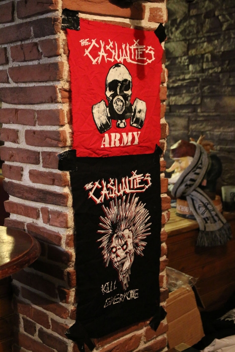 Le punk possède ses groupes légendaires lui aussi, témoin THE CASUALTIES de New-York qui donnera ce soir à la Tanière de St-Etienne un concert mémorable, de part leur présence, leur charisme, l’ambiance instaurée et la foule de keupons de tous poils et de tous âges qui a remplit ce lundi 14 Septembre le café-concert de la rue de la Richelandière autrefois appelé L’Assommoir.