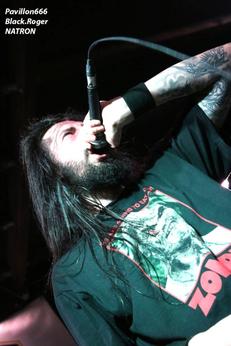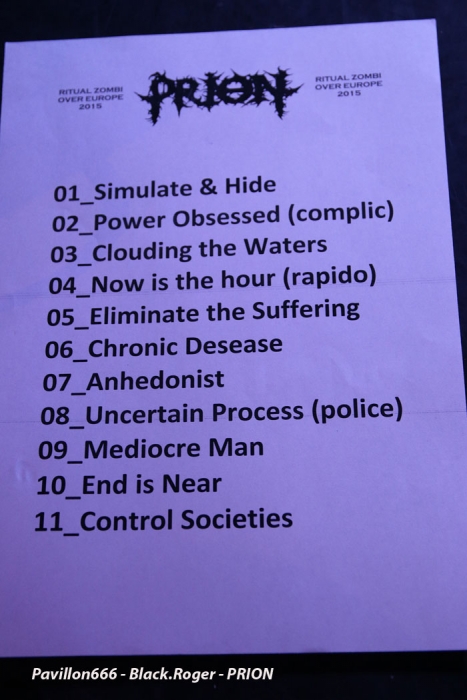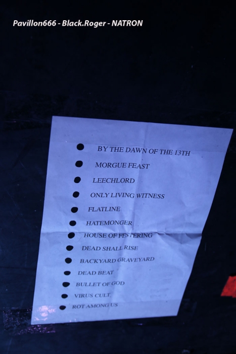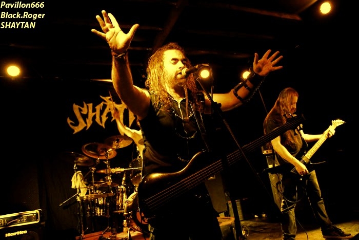 Une affiche de brutal-death-gore-grind qui devait envoyer un son à décorner un troupeau de buffles en rut. Ce qui fut le cas, les quatre groupes se sont donnés à fond devant un public concerné par le métal extrême de qualité, public qui aurait pu être plus nombreux, mais ça, c’est une autre histoire ! Ouverture des portes à 19heures, première formation sur les planches à 19heures 30. Nos amis Savoyards de SHAYTAN n’avaient qu’une petite demi-heure pour convaincre du coup leur prestation n’en fut que plus énergique, plus intense tout simplement. Leur thrash/death brutal et sans concession a fait mouche (qui à dit comme d’habitude ?). Compositions carrées et variées, musiciens au top, bonne cohérence du groupe en live, manque peut-être un peu plus de mouvement et de chevelures en l’air pour une ambiance plus « rentre dedans ». Mais le groupe ne demande qu’a s’étoffer un peu plus et avec de nombreux concerts en prévision nul doute qu’il va prendre de plus en plus d’assurance et monter ainsi en puissance. Bon set donc, idéal pour l’apéritif de ce soir avant l’arrivée des Argentins, des Italiens et des Espagnols, maitres dans leurs pays respectifs et même au-delà d’un brutal death malsain et vicieux. Set-List en photo. Le trio de Buenos Aires en Argentine, PRION prend la suite afin de nous faire entrer dans l’enfer du metal-de-la-mort qui tue. Formé à l’aube de l’an 2000, voilà 16 ans, 3 albums, démos et split-cd que les sud-américains nous font profiter de leur death-metal de bon aloi. Ce soir nous aurons donc l’occasion de voir (et d’écouter) ce groupe qui propage son métal malsain hors de son pays natal. Dans ce trio avec une seule guitare donc, on se concentre sur la puissance et une efficacité à toute épreuve. Beaucoup de classe pour ce trio qui a tout comprit au film avec des arrangements bien pensés, des plans de guitare impitoyables tous riffs dehors sans pour cela ignorer un côté technique avant-gardiste. Du bon, du très bon death, mais avec des répétitions dans les compositions installant une certaine linéarité à la longue. Mais ne crachons pas dans la soupe du métal extrême, Prion nous a fait profité ce soir d’un set découverte valant largement le détour. Set-List en photo. Place maintenant aux death-métalleux des Pouilles en Italie, les légendaires NATRON qui n’ont jamais failli à leur brutalité hors normes les plaçant dans le peloton de tête des « brutos » Europeens du style. Ce groupe qui avait « accouché » du superbe « Négative Prevails » et du déstabilisant « Livid Corruption » n’a pas bénéficié dans sa carrière discographique de support à la hauteur de sa valeur. Alors, il s’est rattrapé depuis en réenregistrant ses vieux titres pour les mettre en valeur. Et ça marche, témoin leur prestation scénique de ce soir d’une sauvagerie et d’une violence sans borne avec une basse à l’ancienne râclant le plancher et la présence d’un frontman hystérique. Là ou passe Natron, l’herbe ne repousse plus, leur démarche horrifique est sans pareil avec des guitares maintenant une puissance de feu d’une efficacité redoutable. Alors ce soir les transalpins de Bari ont « atomisé » le Warmaudio, âmes sensibles s’abstenir ! Quant à moi, les ayant déjà vu en live je n’ai pu que constater l’étendue des dégâts infligés à un public de connaisseurs qui en à eu pour son argent, aargh ! Set-List en photo Avec AVULSED, la pression ne va pas retomber avec un show énorme tout simplement. Les Madrilènes avaient pour mission de nous re-faire connaitre en live certains titres de leur album « Ritual Zombi » et de fêter la sortie du nouvel EP « Altar Of Disembowelment » motif de cette nouvelle tournée Européenne. On ne présente plus les barbares Espagnols du brutal-death. Brutal certes, mais varié entre démonstrations gore à la Haemorrage et death pachydermique à la Bolt Thrower par moment. Au menu donc, rapidité d’exécution, mais aussi ralentissements mélodiques venimeux permettant au groupe de ne jamais brutaliser à outrance son auditoire. Dave Rotten et son chant très typé, sa gestuelle chirurgicale, nous emmène dans une boucherie sans nom où il mélange vocaux porcins, growls caverneux et cris horrifiques, le tout étant très théâtral, mais pour un théâtre particulièrement ensanglanté et glauque. Ici pas de bouillie sonore dominée par des blast-beats incessants. En effet les gratteux savent tricoter avec leurs six cordes et le duo basse/batterie est sans concession nous offrant une certaine dose d’inventivité bienvenue. Alors que dire, que faire ? Tout simplement déguster cet étalage métal/gore découpant et tranchant ce qu’il nous reste de neurones. Leur prestation fut donc saignante et « à point » comme on l’aime finalement dans ce domaine du métal « jusqu’au boutiste ». Set-List en photo. En conclusion, un seul mot, merci ! Merci à Sounds Like hell Productions et au Warmaudio pour cette soirée brutal-metal qui a satisfait un public amateur de musique extrême avec des groupes nous ayant offert le meilleur d’eux-mêmes en live. Pour des raisons de confidentialité YouTube a besoin de votre autorisation pour charger. Pour plus de détails, veuillez consulter nos Politique de confidentialité. |