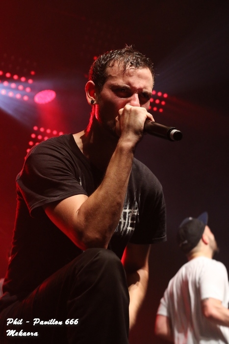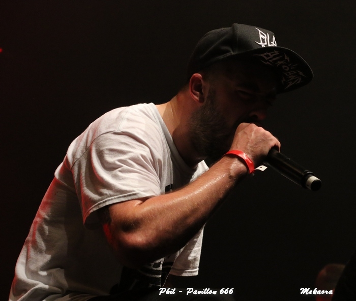 MEKAORA connaît les lieux car le groupe était déjà présent l'année dernière. Son propos est direct et sans compromis. Le groupe soutenu par le public évolué sans fébrilité. A nouveau la paire de guitaristes est plutôt statique laissant le champ libre à Éric (chant) et à son bassiste. Le frontman surexcité est à son aise, entre rapidement en relation avec le public et n'hésite pas à venir aux contacts pour initier des circules pit ou wall of death.... Le set est homogène et dynamique, mettant un peu plus la salle en ébullition.