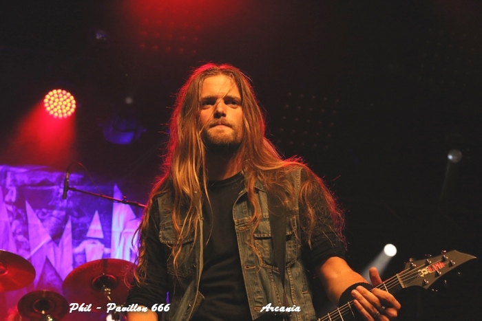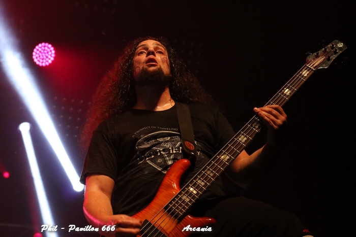 Avec des sonorités teintées par instant de couleur proche de Gojira, ARCANIA est le groupe le plus complexe et technique de la journée. Il n'empêche que la restitution des titres est sans failles, a l'identique des pistes audio. Les lights sombres et envoûtants suivent l'atmosphère dégagée par les compositions. La formation est en place, donnant un show carré et précis, énergique et sans retenues. Niko, chant et guitare, aux allures d'un certain Hetfield assure vocaux et rythmique travaillées, le frontman quitte dès que possible son pied de micro pour prendre quelques soli à son acolyte qui pour sa part se charge des parties plus sophistiquées. La prestation est à la hauteur de l'intensité dégagée par les titres, invitant les musiciens à délivrer un set animé et captivant.