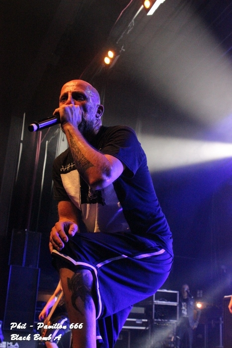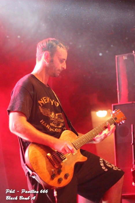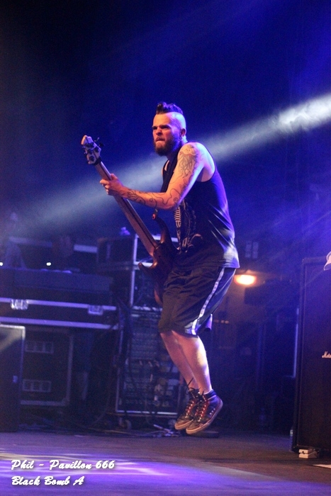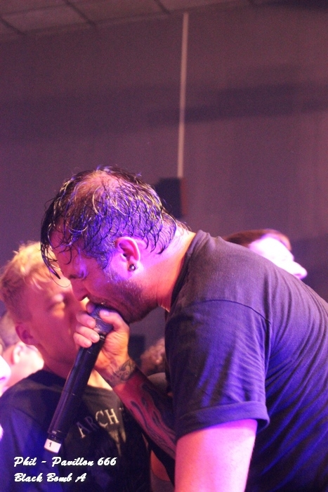 BLACK BOMB A n'a pas fait le voyage pour rien et ne met guère de temps pour atomiser l'assistance. Avec une expérience certaine, les musiciens délivrent un set efficace, pro et carré. Sans compromis la prestation se déroule dans une atmosphère de liesse et d'humilité. Arno et Poun s'échangent les lignes vocales sans failles et jouent à leur manière avec un public tout conquis à la cause du groupe, répondant avec certaines ironies et amusements aux provocations de la fosse. Les deux frontmen participatifs aux danses du metal n'hésitent à investir celle-ci pour entrer en communion avec le public. Les trois autres musiciens, Jacou (basse), Snake (guitare) et Rv (batterie), ne sont pas en reste et assurent avec efficacité leurs domaines d'action tant scéniquement que musicalement.