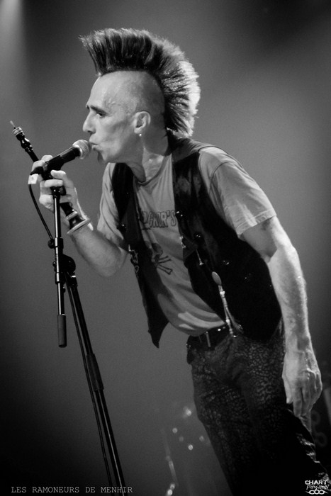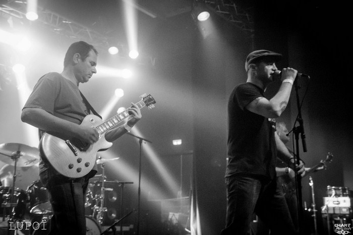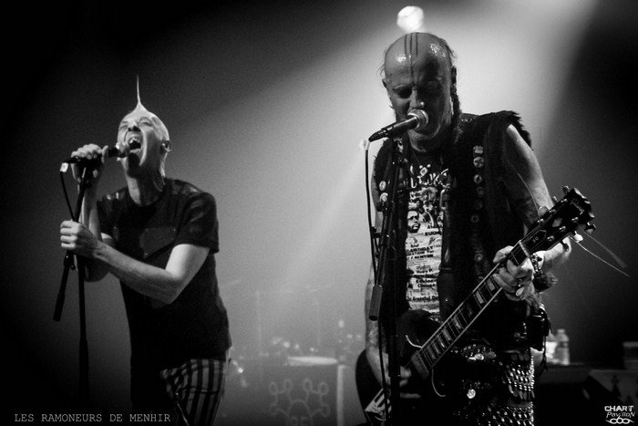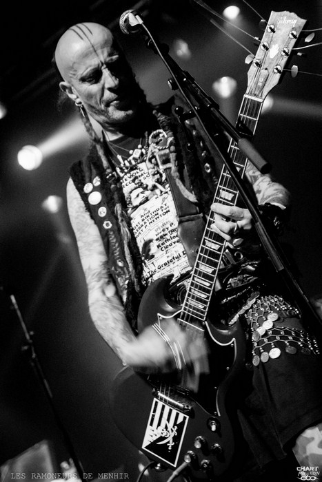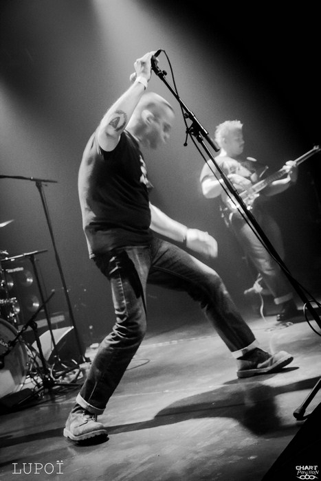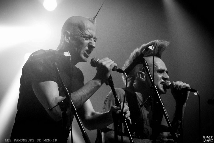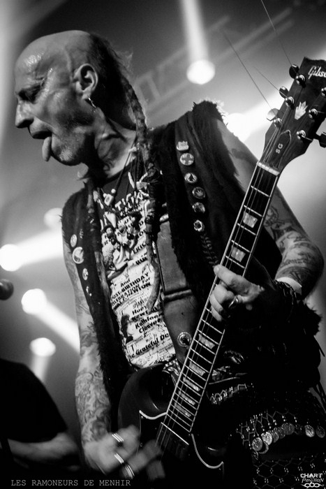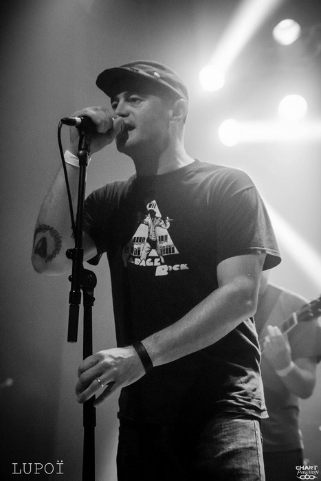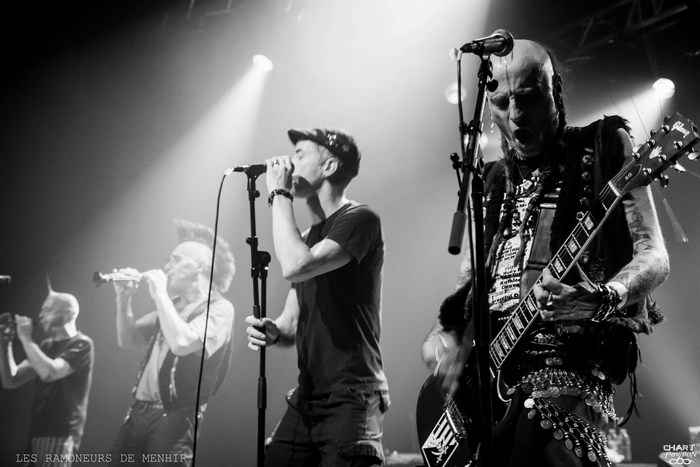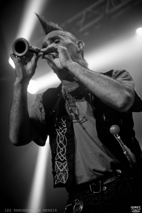 La soirée débute avec le groupe alternatif MISSRATCHED emmenée par sa chanteuse. Le combo local en est encore au stade où il promeut sa première démo. L'opportunité est bonne pour se faire remarquer sur cette belle scène en compagnie de très bons groupes du même registre. L'énergie est encore une fois au rendez-vous et le spectacle particulièrement assurée par cette leader en pleine forme. Le résultat est là et je ne doute pas qu'on nous reverrons cette formation sous peu dans d'autres endroits de l'ex capitale des Gaules. LES LUPOÏ nous viennent de Châlon Sur Saone et officient depuis 2007 dans un style punk traditionnel. Il faut dire que nos bonshommes ne sont plus tout jeunes mais ont toujours quelque chose à faire passer. Les idées sont au rendez-vous même si la nouveauté n'est pas le maître mot. Peu importe, ce n'est pas ce qu'on leur demande. Ce qu'on veut avant tout, c'est passer un bon moment et la promesse est tenue. Dommage que le public soit resté en partie à l'extérieur à attendre la tête d'affiche car il y a du potentiel chez ce groupe et je trouve regrettable de ne pas avoir vu une ambiance qui aurait pu être bien plus chaleureuse. Place enfin à cette tête d'affiche que tout le monde semble attendre avec impatience. LES RAMONEURS DE MENHIRS n'a pas encore fêté ses 10 ans mais il apparaît déjà comme un groupe phare de la scène alternative. Il faut dire qu'avec en son sein le guitariste Loran, il y a forcément pas mal de monde qui s'intéresse à cette formation. Et oui, jeunes et moins jeunes, souvenez-vous donc de ces BERURIER NOIR qui au milieu des années 80 portaient haut l'étendard du punk français. La formation est aujourd'hui devenu un mythe mais cet homme lui permet d'exister encore un peu en 2015. Même boîte à rythme, même son de guitare et mêmes riffs tapageurs. La différence majeure vient de l'incorporation d'instruments issus de la musique celtique et du chant en breton sur la grande majorité des titres. L'alliance du punk alternatif, j'oserais même minimaliste et de la musique celtique est forte. On voit même des membres du public arborer des T.Shirts d'ELUVEITIE ce qui en soit n'est pas vraiment une aberration même si les deux univers sont assez différents. L'énergie est forcément au rendez-vous durant ces deux heures de concert intense ! Les classiques du groupe sont au rendez-vous et ils sont nombreux ! Quelques reprises viennent aussi compléter l'ensemble avec "If The Kid Are United" que l'on pouvait déjà entendre sur le premier album ou encore "Bella Ciao", un classique italien. On a droit aussi à deux morceaux des BERURIER NOIR, "Ibrahim" et "Vive Le Feu". Rien ne semble arrêter la machine qui dépasse allègrement l'heure de fin prévue à l'origine. Mais qu'importe, une îcone de la scène punk française est là devant nous, en toute simplicité. Je me demande même si ce statut est approprié lorsque l'on voit Loran se promener dans les pogos lors des sets des deux premiers groupes. L'esprit est plus à la fête qu'à autre chose quand on est dans une soirée comme celle-ci. Belle soirée que celle-ci, une belle réussite. Les murs ont transpiré encore une fois, ce qui est le signe d'une belle pagaille déployée dans la fosse. Non le punk n'est pas mort. Il a évolué certes mais reste encore terriblement actif et attractif. Pour des raisons de confidentialité YouTube a besoin de votre autorisation pour charger. Pour plus de détails, veuillez consulter nos Politique de confidentialité. |