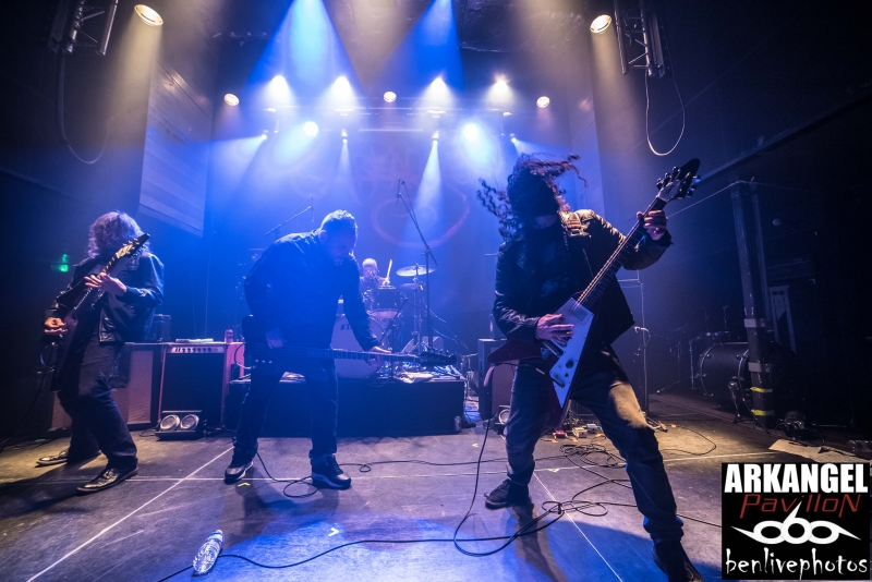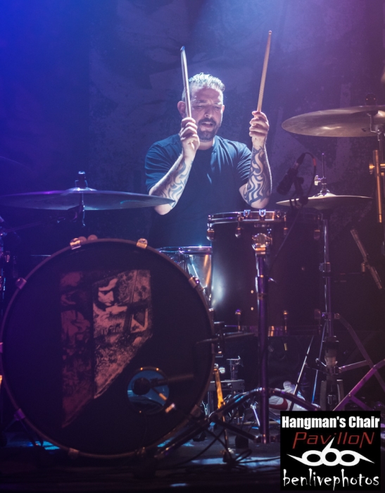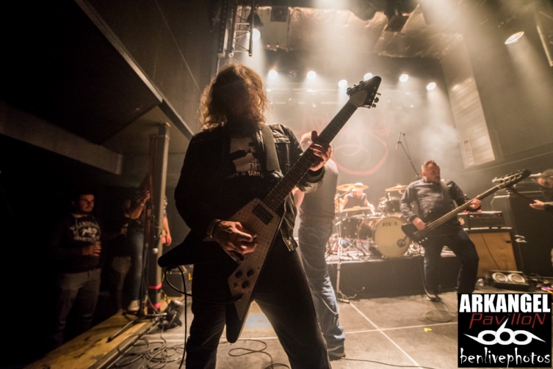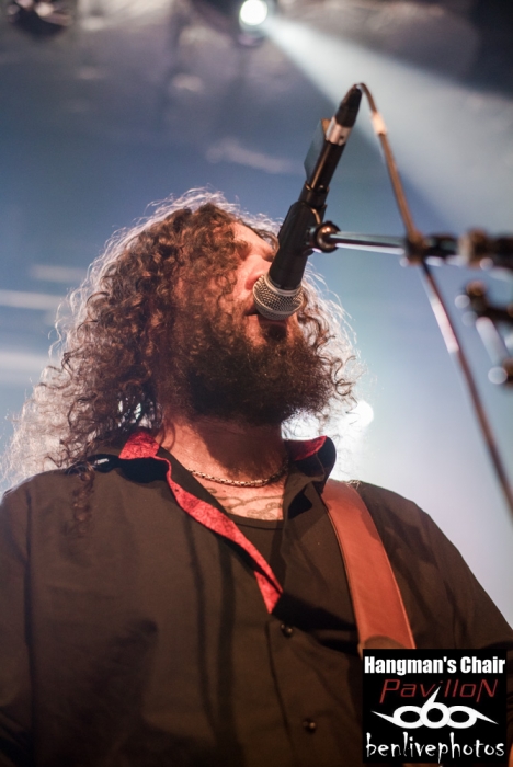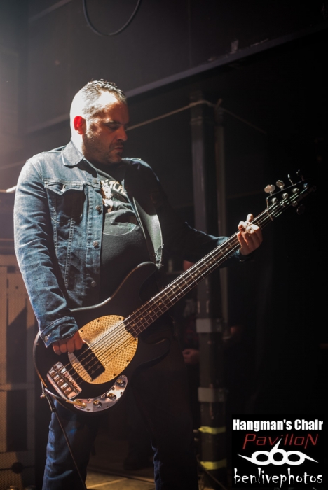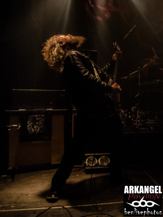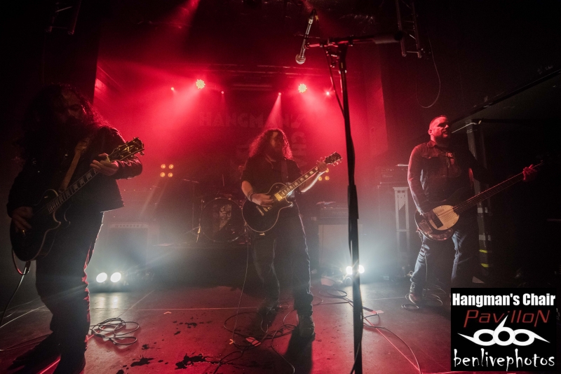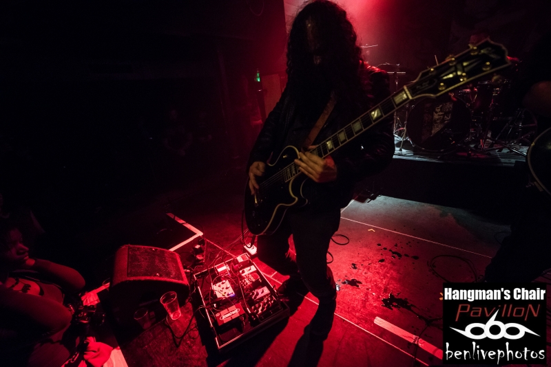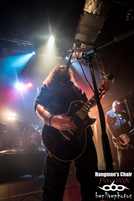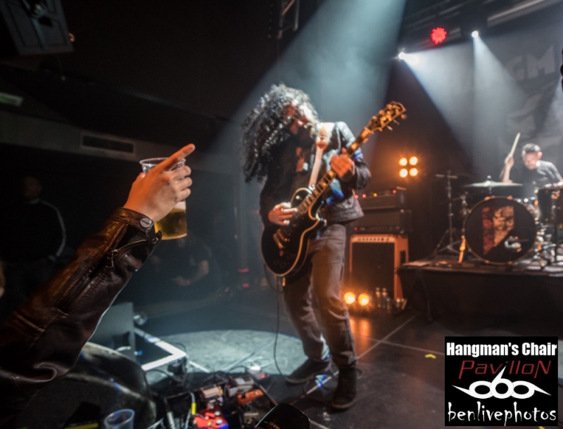 On a déja vu 4 groupes, la soirée se passe bien et il est l'heure d'accueillir la tête d'affiche, à savoir Hangman's Chair. Très vite la salle se remplie pour accueillir ce groupe de sludge parisien qui vient de sortir "This is not supposed to be positive". Quatrième album acclamé par la critique de par son côté sombre et lourd. Hangman's Chair attaque direct avec "Dripping Low", dont le clip vient de sortir il y a très peu. Bonne stratégie pour faire venir la foule, qui finalement, n'en demande pas temps. Les mélodies sonnent justes et se placent parfaitement avec l'ambiance lourde rendue par les grattes. Clément a changé pour une basse 5 cordes, et même si on le voit moins que dans Arkangel, il se fait bien entendre. Cédric a la particularité de chanter dans un mix entre chant clair et chant légèrement saturé. Cela donne un aspect de douceur dans le sombre, d'autant plus qu'il assure à la gratte en même temps. Les titres s'enchainent les uns les autres avec cette lourdeur incroyable. La scène NOLA (Crowbar, Down, C.O.C...) précurseur de ce style a fait des émules, voir trop et il est souvent difficile de trouver un son différent. Heureusement Hangman's Chair s'est accaparé son sludge avec des plans rock et une voix particulière qui donnent envie d'écouter ce groupe qui risque de devenir l'un des leader de la scène sludge hexagonale. Les titres joués parcourent les différents albums et cela ravie la salle comble. Cette release partie est une réussite et il va falloir suivre Hangman's Chair de très près car on risque d'en entendre reparler.