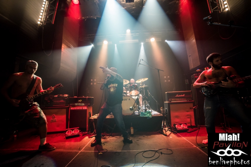 C'est donc Mlah! qui lance les hostilités en lâchant son sludge bien lourd mais avec des influences à la Black Sabbath. Nordine au chant donne tout ce qu'il a au public, tandis que Fabien assure, très concentré, ses riffs bien lourds à la gratte. La batterie de Nech est bien en place alors que Piotr, le bassiste se jette dans tous les sens comme à son habitude. Le show fini par être de plus en plus convivial et jovial, l'un de leur titre sera repris en refrain repris par les aficionados. Mlah! fait de plus en plus de concerts et l'expérience passée de ses membres (ex 6DTC) pourrait bien en faire un de ces groupes qui prennent de l'ampleur dans le milieu.