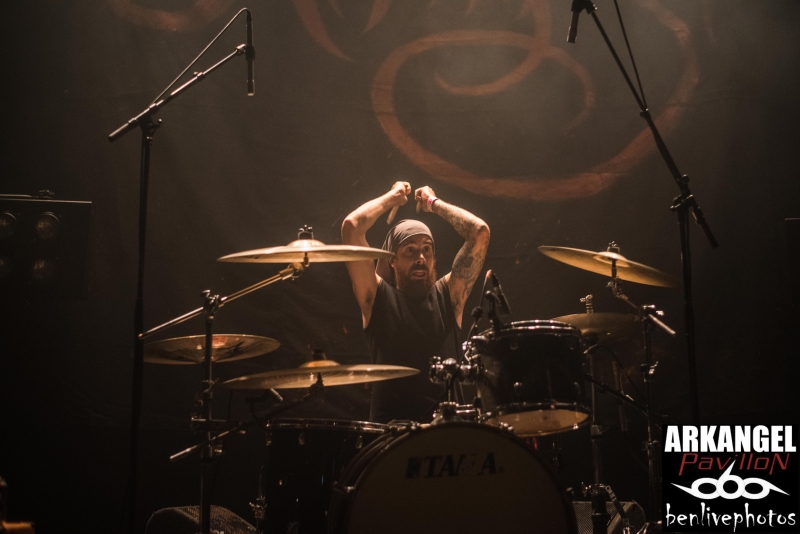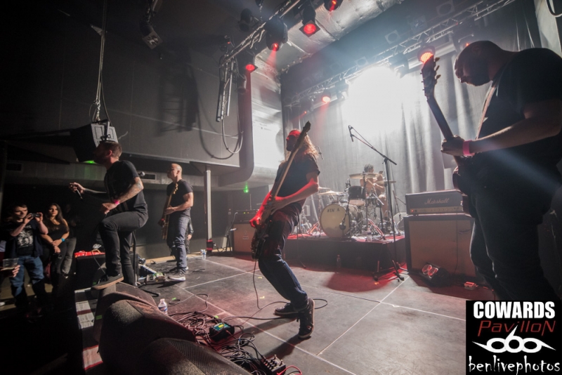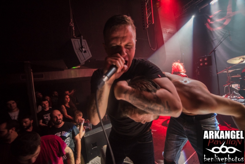 La soirée sensée être "négative" a trouvé un autre groupe qui ne pouvait tomber mieux. Cowards, qui a sorti il y a quelques mois "Rise to infamy", produit un hardcore/sludge très dark. Violence, haine, dépression, sont les thématiques qui impose son hardcore métal hyper lourd avec de gros passage lent. Leur chanteur cri dans ce micro avec une telle rage que l'on a bien envie de retourner le Petit Bain, qui n'a pourtant pas besoin de nous pour tanguer. Mais s'il faut en sortir un du lot c'est bien le batteur qui a tabassé ses fûts comme un dépravé avec une puissance et technique au plus marquant. Nos gratteux ainsi que le bassiste usent bien de la scène en jouant avec le public tandis que le chanteur éructe toute sa haine dans la face de tous ceux qui en redemande, à savoir tout le pit. Cowards a bien su préparer la salle pour recevoir nos amis du plats pays, en l'occurrence Arkangel.