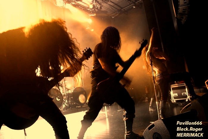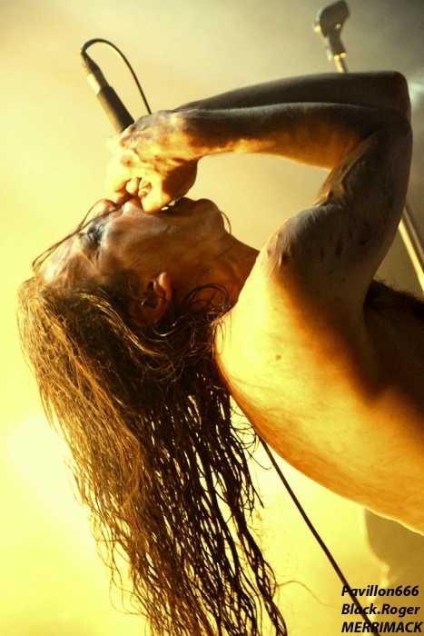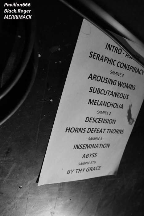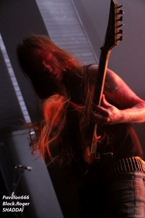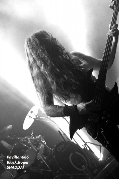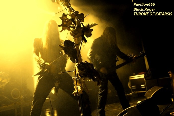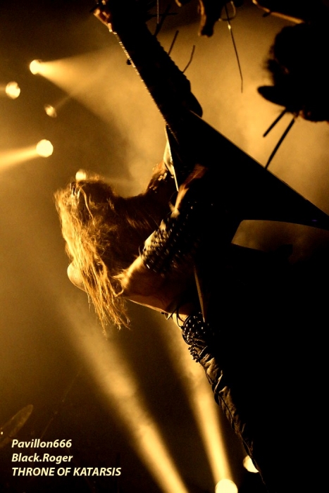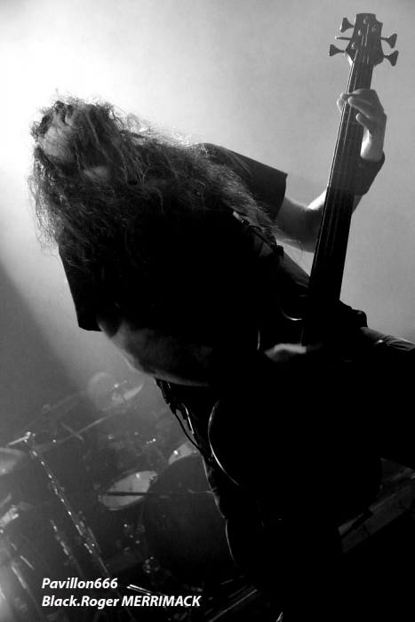 Au menu, les prestations de 12 groupes durant ce week-end placé sous le signe du Black Métal, un événement dans la région et même plus loin. Ce Vendredi, 5 formations venant de Norvège, d’Italie, de Suisse, de Savoie( !) et de France bien entendu vont se succéder sur la scène de cette salle aux murs bien sombre cqfd. Avec un léger retard, ce sont nos amis Suisses de SHADDAÏ qui inaugurent ce festival dédié au métal sombre et occulte, il est 18heures 30. Leur prestation nous installe à l’aide d’une intro instrumentale dans des ambiances incantatoires servies par des dissonances et des mélodies malsaines nous faisant penser notamment à Watain. Leurs compositions semblent bien travaillées et l’assistance écoute « religieusement » ce groupe qui est prometteur et dont le set vaut le détour. Premier groupe intéressant donc pour ouvrir cette soirée du vendredi, leur courte prestation de 30 minutes nous a convaincu malgré un son un peu approximatif. Une outro instrumentale elle aussi ferme le livre occulte de Shaddaï, la messe noire est dite ! Mais voici maintenant les Savoyards de CAÏNAN DAWN qui reprennent le flambeau sur les planches du Jack-Jack avec une certaine nervosité. Les Chambériens naviguent sur les eaux troubles d’un true-black malsain à la Darkthrone et le fait sans tambour ni trompette, mais avec des envois guitaristiques simples mais efficaces, une rythmique sans concession et un chant possédé et écorché vif. C’est du black qui vous prend aux tripes tout simplement avec des dérapages thrashisants renforçant le tout. En deux albums « Nibiru » et Thavmial », et 12 ans d’existence, Caïnan Dawn a mis tout le monde d’accord en progressant à pas de géant dans une veine hautement hypnotique, on aime tout simplement. L’arrivée devant nous des Italiens de FIDES INVERSA, traduisez « inversion de la foi », provoque un choc particulier. Puissance, mouvement, musiciens en haillons pour un black lourdement anticlérical. Le chant est partagé entre deux musiciens avec notamment le batteur au micro, fait assez rare à signaler donc. Les titres sont longs et complexes, entre passages rapides et passages écrasants. Fureur, fanatisme, sueur et sang sont au rendez-vous, nous pensons ainsi à Mortuus par instants, ou par instinct. Les Romains nous offrent un spectacle violent, mais maitrisé dans une veine moyennageuse, nous pensons au fameux film « le Nom de la Rose » sur cette thématique. Musiciens doués, ambiance satanique au programme, nous avons dégusté ce black oh combien blasphématoire et théatral, amen. Vingt ans déjà que les Parisiens de MERRIMACK nous abreuvent de sang noir déversé sur l’autel d’un black tortueux et torturé, avec ce côté sale qui vous prend à la gorge. Cette gorge du frontman complètement possédé qui nous impose son chant déchiré et dément. Merrimack depuis ses débuts n’a eu de cesse d’évoluer dans des compositions travaillées au rendu dissonant de bon aloi, mais aussi dans des ambiances angoissantes délivrée par des musiciens au taquet. Attention, devant la scène où Vestal fait tournoyer son pied de micro, ne tenant pas en place afin de nous faire profiter de ses envois agressifs en diable et complètement dérangés. Rage, haine donc, mais beaucoup de place est laissée aux instruments qui s’aventurent aussi en soli, pourquoi pas ! Ambiances morbides, ambiances étouffantes, ambiances malsaines, ambiances à vous glacer le sang sont donc installées dans cette salle noire ce soir. Au secours, les parisiens ont tout donné pour un plaisir déviant, merci ! Afin de parachever l’œuvre de destruction massive de nos neurones durant cette soirée on nous présente là devant nous les Norvégiens de THRONE OF KATARSIS qui arrivent sur scène tout sanguinolants. Ici pas d’aventures prog à l’horizon. Nous avons à faire à du black old-school, true et primaire si vous voulez quoi que ? Outre les corpse-paints, voici un décorum adéquat avec pied de micro aux décors morbides et glauques. Mais ne vous y fiez pas trop, sous ce black massif et intemporel se cachent des rythmiques binaires et thrashisantes, des déviances doom sabbathiennes aussi. Bref, les compositions sont variées, les rythmiques aussi. Lourdeurs funèbres, déviances tranchantes, sans tomber dans le piège du black bourrin de nos aïeux, voilà ce que nous offrent les hommes venus du froid. Maitrise des instruments avouées, compositions travaillées, arpèges saturés, ces Norvégiens ont tout fait pour nous convaincre, et c’est ce qu’ils on fait ce soir au Jack-Jack. Nous n’en attendions pas moins de leur part après avoir écouté « at home » leurs 4 albums parus en 12 années d’existence. Première soirée très appréciée par un public de connaisseurs venu parfois de très loin. Que nous réserve la seconde soirée avec 7 groupes à la clé ? Que du bon je suppose avec des formations connues et reconnues, on vous racontera ça plus tard. |