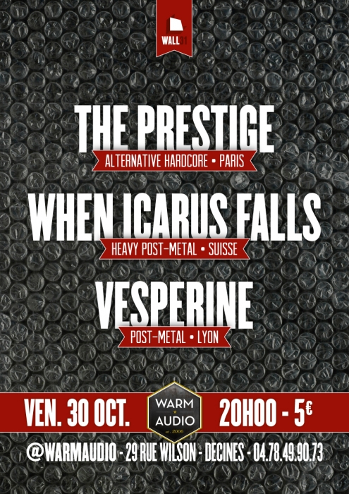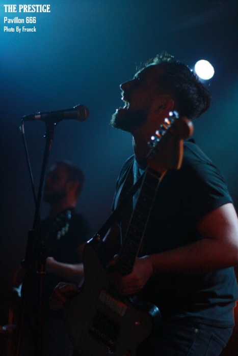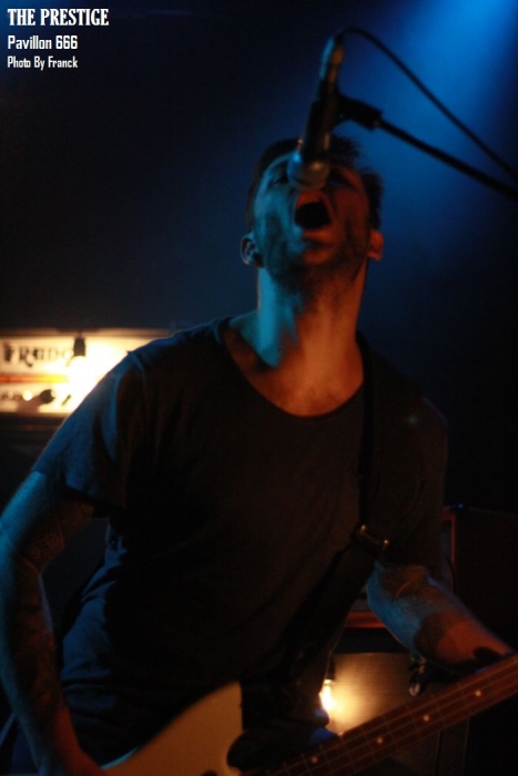 Je rappelle tout de même que nous autres, peuple de Pavillon 666, sommes des bénévoles passionnés qui donnons beaucoup de notre temps afin d’aider au mieux à ce que la musique et les groupes qui la font continuent d’exister sur nos scènes à travers vous qui suivez fidèlement nos chroniques et nos live reports. Toutefois, j’ignorai complètement que l’antidote à cette neurasthénie qui me collait aux basques allait me tomber dessus comme la foudre en franchissant les portes de notre bien aimé Warmaudio. L’affiche qui tue !!! C’était sans conteste ZE place to be en ce vendredi soir du 30 octobre 2015. Quand on ne connait pas trop ce que l’on va voir, on y va un peu sur la pointe des pieds, mais la je vous avoue que franchement ça m’a décollé de terre. Tout d’abord un accueil fort sympathique de Jérémy pour commencer la soirée. Oui, Jérémy est le bassiste de Vesperine qui organise ce concert et rapidement le ton est donné et je sens déjà la bonne soirée qui pointe le bout de son nez. C’est donc dans un pur style helvète underground que When Icarus Falls ouvre cette soirée extrêmement extrême avec un metal hurlant du genre coup de pied au cul dont je vais avoir du mal à me remettre. Avec déjà 3 beaux albums au compteur, ça ne rigole pas chez les suisses qui vont nous sortir le grand jeu. L’atmosphère est sombre, pesante, le chant est déchirant. When Icarus Falls extrait sa musique des entrailles de l’obscurité. Vous voudriez étiqueter cet épais et obscur tissu sonore ? Mais c’est impossible !! C’est Sludge, c’est Doom, c’est Drone, c’est Dark, c’est tout à la fois et c’est génial. Le set se déroule comme une sorte de rite, de messe lugubre où les instruments montent en puissance à chaque nouveau titre. Leur musique vous emporte comme une tempête qui soufflerait en rafale et dont les pointes les plus violentes sont perchées dans le hurlement de Diego Mediano. Le quintet suisse semble se couper totalement du reste du monte dans cette nuit bleutée crée par les lights du Warmaudio où chaque musicien va se transcender, se déchirer jusqu’à devenir quelque chose d’autre que lui-même. Certes ce ne sont pas les métamorphoses du vampire de Baudelaire, mais on reste tout de même au bord du gouffre. La magie opère et ça joue vraiment bien, c’est du très gros niveau pour commencer une soirée et croyez moi, je ne suis pas au bout de mes surprises. Vesperine qui est un peu le petit poucet de cette date qu’ils ont organisé a eu l’intelligence de se caler entre les deux gros calibres que sont When Icarus Falls et The prestige. Les lyonnais n’arrivent toutefois pas les mains vides puisqu’ils sont déjà armé d’un bon Ep à la production soignée qu’ils ont récemment réalisé. Bien que leur musique soit également très borderline, c’est encore à une nouvelle patte sonore que nous avons à faire. Un rien plus fébrile que les deux autres groupes car Vesperine manque encore un peu d’expérience pour culminer à leurs niveaux, le combo lyonnais ne se démonte pas pour autant et va largement prouver qu’il a sa place sur cette scène ce soir. Le quintet lyonnais est parfaitement en place et va se montrer hyper carré durant ce set. Le son des guitares est lourd comme de la fonte, la basse de Jérémy est un vrai marteau pilon. La voix très contrastée de Rémi vient se poser sur l’ensemble de la machine dans une ambiance plutôt sidérurgie que musique de chambre. Vesperine a tout de même opté pour une option assez difficile dans sa construction sonore. Il s’agit du contraste entre le chant clair et le chant hurlé de Rémi un effet pas encore complètement persuasif chez Vesperine car c’est assez difficile à maîtriser et surtout à nuancer pour que cela colle parfaitement à l’ambiance sonore du groupe qui est assez sombre, un peu dans la veine de When Icarus Falls. Somme toute, malgré un set un peu court à mon goût, Vesperine a montré les dents et l’on sait déjà qu’ils en ont sous le pied et que nous n’en avons pas fini avec eux. Je pense que nous nous reverrons bientôt en tout cas je le souhaite. Si les deux premiers groupes ont déjà bien chauffé les planches du Warmaudio, The Prestige va littéralement y foutre le feu avec un set explosif et sans concession. Je me doutais bien qu’ils n’étaient pas venus pour étendre le linge, mais là, ça a dépassé l’entendement et j’ai encore la sensation d’être passé sous un rouleau compresseur. Silencieux, réservés, les parisiens investissent la scène du Warm et c’est soudain un déluge sonore qui s’abat sur nous telle une tornade qui ce soir va tout emporter. Une sorte de hardcore hors du commun, un déluge de feu sans nom tant tout cela me semble extrême Tous les sentiments semblent traverser The Prestige et ça nous brûle de l’intérieur. Alex à la guitare et au chant hurle une réalité et une souffrance qui vous crucifie sur place. Sa gratte (une faite maison), semble asséner de véritables coups de hache. Dans la même énergie, Julien à la basse lui envoie la réplique avec la même transe. Pendant un instant, j’ai l’impression que The Prestige porte à lui seul les souffrances du monde entier. Mais les quatre garçons, plus dans la tempête que dans le vent, nous ouvrent simplement une brèche dans la poésie très instinctive qu’ils se plaisent à écrire. Leur univers très habité est totalement démesuré, il y a vraiment quelque chose derrière. Il y a bien longtemps qu’un groupe ne m’avait pas ouvert un tel horizon devant les yeux. Certes leur musique est « violente », mais ils renvoient simplement ce que le monde nous "offre" tel un miroir. The Prestige est un groupe totalement unique qui n’a pas hésité une seconde à nous hacher menu. Je ne me suis toujours pas remis de ce concert. Si vous voulez quelque chose de vrai, quelque chose qui vous pousse jusqu’à la t