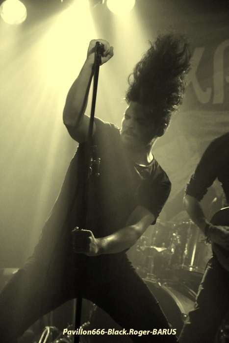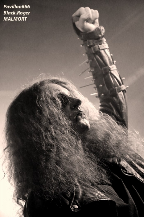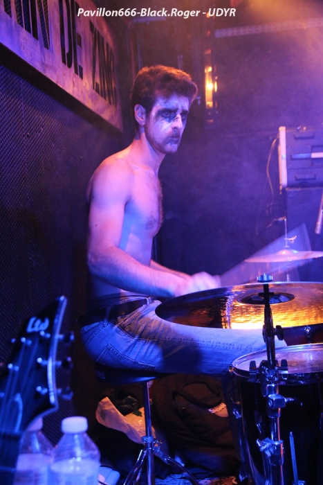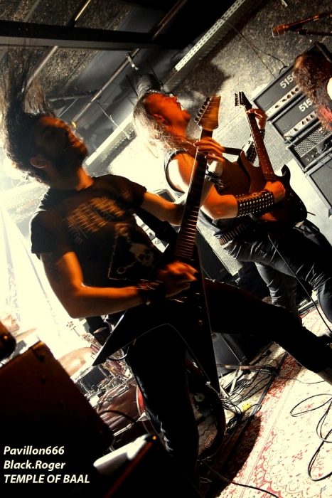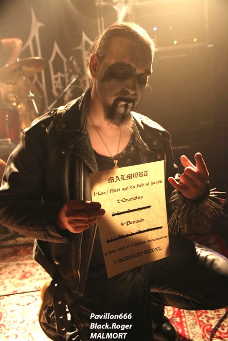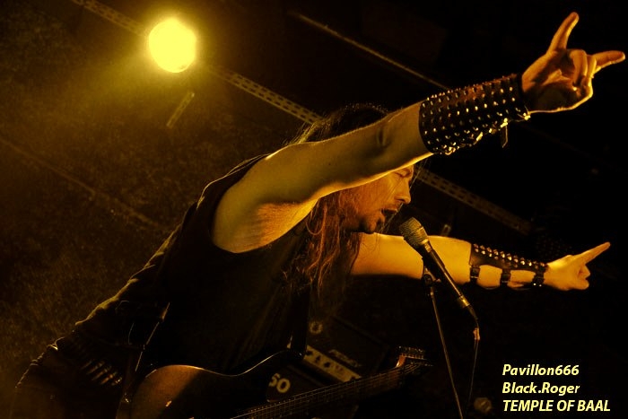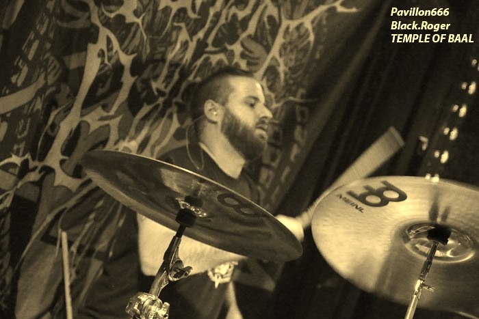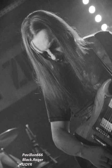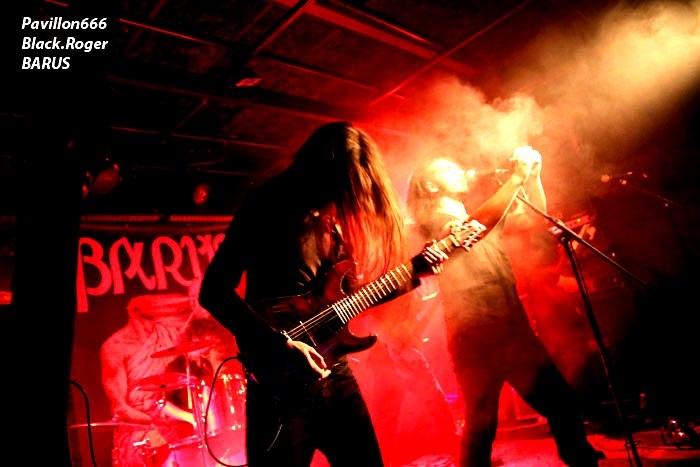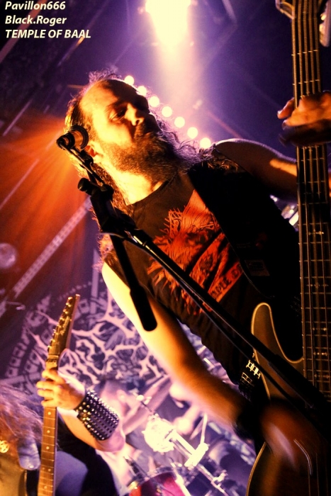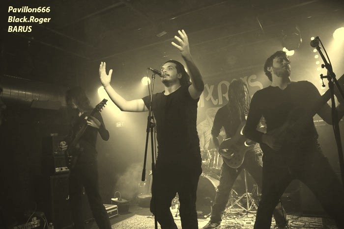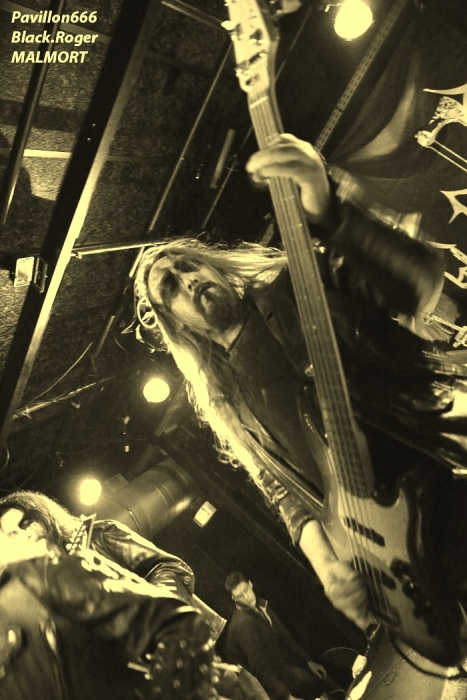 C’est The Burning Raven Prod qui a (bien) organisé cette « cérémonie » sombre, occulte et mortelle cela va de soi. Dès 21heures nous allons retrouver sur scène ceux de BARUS, formation que je n’avais pas encore eu l’occasion de voir en live, alors c’est parti pour un set tourmenté et prenant aux tripes. Les Grenoblois de Barus nous proposent un set death/doom/black où le groupe fait ressortir ses envies de musiques complexes, travaillées avec des relents progressifs en « border-line ». D’ailleurs deux musiciens de la formation font partie de MÏEUTISTE, ceci expliquant sûrement cela. Côté musical tout est donc bien étudié et un certain côté théâtral est apporté par le chanteur comme possédé par ses textes, accroché à son pied de micro et qui nous happe de par ses provocations incantatoires sur un fond heavy et lourd (pléonasme ?), plombé à souhait. Cette formation prometteuse vient d’ailleurs de signer avec le Label des Acteurs de l’Ombre pour la sortie d’un premier EP « Barus » à paraitre en Janvier prochain. Et bien entendu ce soir nous bénéficierons en live des 4 titres de cet EP, « Tarot », « Disillusions », Chalice » et Cherub », compositions qui prennent une autre dimension bien vivante dans ce domaine du métal-de-la-mort-qui-tue. Excellente prestation, sauf que du côté son un ampli de façade avait décidé de rendre l’âme ce soir ce qui gâchera quelque peu les envois des 4 combos présents ce soir. Tiens, voici maintenant UDYR là devant nous, groupe Lyonnais s’étant greffé au dernier moment sur l’affiche de cette sombre soirée. UDYR que je n’avais pas eu l’occasion de revoir depuis longtemps et qui m’a agréablement surpris ce soir. UDYR qui va nous présenter essentiellement des compositions à paraitre sur son nouvel opus dont l’enregistrement est en cours. Depuis huit ans déjà, Herjann, Vegard, John, Triglav, Vicken et A.nous proposent un black-métal des 90’s profondément imprègné de la scène scandinave et influencé notamment par EMPEROR, le nom est lâché. Ambiances constituée de mélodies acides apportés par un clavier, riffs dissonants au possible et vocaux déchirés et tragiques nous emmènent dans un monde épique et haineux à la fois. Un black agressif donc mais contrebalancé par des ambiances que l’on pourrait qualifier de venimeuses dans la grande tradition nordique du style à ses débuts. Au final, belle prestation ce soir située au-delà de mes espérances et je pense que la majorité du public présent dans la salle a apprécié leur démonstration tout simplement.. « Las ! Mort qui t’a fait si hardie » c’est le premier titre interprété ce soir par les très attendus MALMORT. Un Malmort qui a failli annuler sa prestation car l’un des guitaristes n’était pas en mesure d’assurer la date. Mais Malmort est « ressuscité » avec l’ajout d’un ancien guitariste de remplacement. Pourtant de ce fait la set-list prévue initialement a été amputée des « Ecorcheurs » et du « Gibet de « Montfaucon ». Mais le reste fut sauvé, ouf ! Outre le premier titre ouvrant le set nous avons pu apprécier à sa juste valeur le fameux « Cruciatus », « Panacée », Finis regni et Funereus Successiones », et « MCDXXXJ-MCDXL », un régal tout simplement. Inutile de vous le cacher plus longtemps, MALMORT fait partie de ces groupes que j’affectionne particulièrement, surtout en live où les musiciens apportent une autre dimension à leur black médiéval. Ce black assez old-school certes, mais d’une efficacité redoutable à chaque concert. Alors ce soir ce fut la même, la même ambiance occulte, la même agressivité haineuse au menu sur des envois qui vous laissent pantois. De l’art noir bien senti, bien interprété avec un visuel et une chorégraphie scénique bluffante. J’ai pu lire que MALMORT pourrait bien figurer dans le peloton de tête du black frenchie, pour quoi pas ! Mes propos à leur sujet ne sont peut-être pas objectifs me direz-vous, mais écoutez les et regardez-les à nouveau vous m’en direz des nouvelles, amen ! Minuit, l’heure du crime. Mais non, l’heure pour la tête d’affiche de la soirée d’envoyer le son. C’est donc TEMPLE OF BAAL qui nous propose son dernier album studio « Mysterium » paru début octobre 2015. Alors que dire que vous ne saviez déjà à propos de Temple of Baal qui fait figure un peu de vétéran de la scène black frenchie après 17 ans d’activité et 5 albums + de nombreux splits-cd et démos ? Les Parisiens nous entrainent toujours dans leur univers glauque et satanique en diable avec des envois tonitruants et rapides ponctués de breaks destructeurs de neurones. Pas de linéarité chez eux, vous êtes obligatoirement happés par leurs titres à rallonge dans une ambiance assez épiques au final. Derrière les blasts biens sentis se cachent pourtant des mélodies sous-jacentes bien malsaines qui vous font admettre sans forcer leur capacité à varier les plaisirs morbides et inquiétants. Mis à part le son perturbé ce soir Temple of Baal a su prouver en live que ses nouveaux titres comme « Lord Of K & D », « Magna Gloria Tua », « Hosanna », « Divine Scythe » et « All In Your Name » représentent un niveau de composition jamais atteint jusqu'à présent. Nous dirons pour conclure que Temple Of Baal n’a pas fini de nous surprendre encore et encore, preuve en est leur prestation de ce soir au Brin de Zinc à Chambéry. Ce second épisode de la Dark Night fut donc une réussite tout simplement, il fallait être là et ce fut le cas pour les nombreux black-métalleux présents. Merci aux organisateurs pour nous avoir offert une affiche de choix, merci aux 4 formations en lice et merci au brin de Zinc pour son accueil sympathique, vivement une Dark Night III de cette trempe ! |