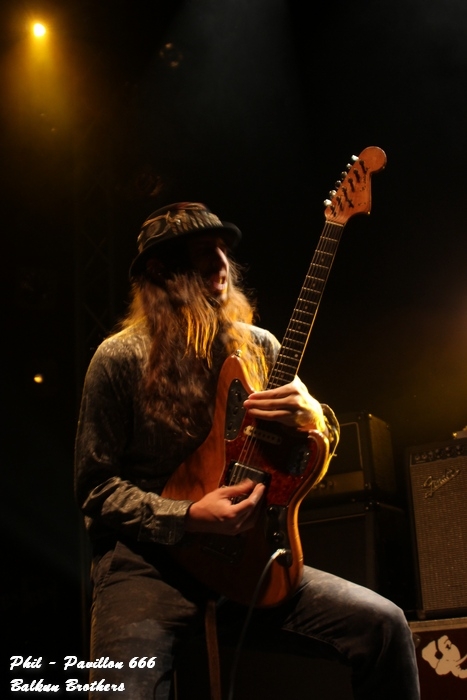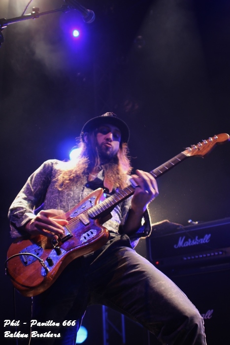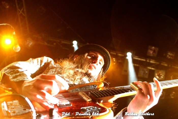 Les frères Balkun viennent du Connecticut et possèdent une solide réputation dans le circuit US. Avec un premier album, "ReDrova" paru en janvier dernier, dont la production et l'enregistrement ont été confiés à Popa Chubby, le duo assure les premières parties du colossal guitarsite sur sa tournée européenne. Sans complexes les deux musiciens s'engagent et délivrent un set intense, relativement carré, occupant l'espace comme un combo plus étoffé. Derrière ses fûts, Nick bastonne sans faiblir, permettant à son frère Steve de s'autoriser toutes extravagances. Ce dernier assurant les guitares et la chant ne ménage pas sa prestation. Evoluant dans une attitude qui pourrait mêler des artistes comme Steve Ray Vaughan pour son look, Rory Gallagher pour ses vocaux et son approche musicale, Jimi Hendrix dans sa gestuelle, Steve Balkun captive un public nombreux, venu pour Popa Chubby, sans tarder. Ce blues riche en intensité, en énergie trouve des accents rock avec ses riffs imposants. Le guitariste jouant aux doigts est à son aise dans toutes les variations du genre, bottleneck, dobro... Le feeling transpire et l'Empreinte brûle sous les slides, bent, soli du chevelu chapeauté. Participatif et admiratif, l'assistance en échange de ce set animé renvoi ses clameurs à l'égard des Balkun Brothers. L'ambiance électrique dégagée musicalement et scéniquement est un bonne mise en bouche pour la suite à venir. Quant Popa Chubby arrive sur les planches, le public est encore sous le choc de la première partie. Toujours aussi imposant, le guitariste épaulé de trois musiciens, évolue assis sur un coté de la scène proche de sa batterie légère. Revisitant des standards du blues rock et incorporant des compositions du groupe, la formation prolonge la liesse entamée depuis le début de la soirée. Popa est heureux de s'exprimer sur les planches et communique cette joie aussi bien dans son jeu, dans sa communication avec l'audience et dans ses gimmicks à l'égard de ses compères. Il est vrai que le public est focalisé sur le guitariste, mais l'équipe qui l'épaule est dotée dans certain professionnalisme et de qualités techniques confirmées. Chacun pourra présenté ses compétences dans une intervention solitaire orchestré par Popa. Une légère faveur est faite pour son batteur, qui permet au six cordiste d'entrer dans un échange au son de cymbales et de fûts lorsqu'il se positionne derrière son deuxième instrument de prédilection. Tout au long de ce set, les standards défilent sans temps morts et paraissent moins âgés qu'ils peuvent l'être. Popa sans remanier ces titres cultes, exécute ces compostions avec une telle énergie, une telle passion qu'ils en deviennent rajeunis. Lorsque le tour des rappels arrivent, il n'est pas question de quitter les planches, le groupe nous accorde une série de morceaux semblant vouloir jouer jusqu'au petit matin. L'assaut final mettra à l'honneur les Balkun Brothers pour une jam avec Popa Chubby au complet. La bonne humeur est évidente et transpire vers le public. Quant les lumières se rallument, les deux formations rejoignent rapidement les stands de merchandising pour une série de dédicaces. Une seconde pour Popa qui en a assuré une avant le show lors de l'ouverture des portes de la salle. L'Empreinte nous a proposé une soirée riche en intensité dans un confort visuel et sonore maitrisés. |