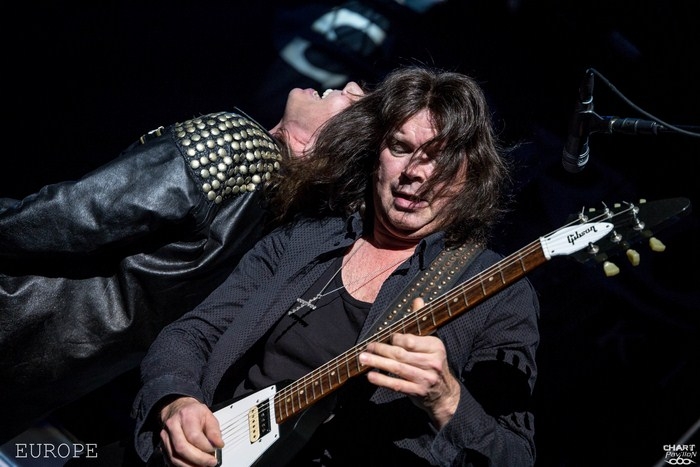 Et c'est en compagnie d'un autre dinosaure du rock que SCORPIONS a décidé de reprendre la route. Les suédois d'EUROPE sont bien là sur cette affiche pour défendre leur dernier né "War of Kings". Ils ont au moins un point commun avec SCORPIONS, outre le fait d'avoir abreuvé les radios avec au moins un gros tube, c'est celui d'avoir connu une pause dans leur carrière puis de s'être finalement ravisés. Néanmoins EUROPE ne manque de vitalité et assure un show bref mais relativement intense. Nous sommes loin de leurs compatriotes d'ARCH ENEMY présent il y a une semaine dans cette même salle mais la génération n'est pas la même. Si certains morceaux semblent datés, l'énergie n'est pas en reste. Joey TEMPEST se donne tant qu'il peut sur cette grande scène. Il assure son rôle de frontman, prenant parfois des airs de Steven TYLER. Le public est forcément réceptif car ce groupe est loin d'être un inconnu et lorsque résonne enfin l'introduction de "Final Countdown" en fin de set, c'est toute une foule qui sort son portable pour immortaliser ce moment. On a connu des premières parties moins intéressantes c'est certain. War of Kings Hole eoin My Pocket Superstitious Ready or Not Carrie Last Look at Eden Rock the Night Days of Rock 'n' Roll The Final Countdown Si je faisais référence aux attentats de Paris en introduction, c'est bien pour rappeler l'attachement des allemands de SCORPIONS à notre pays. Le groupe m'a donné l'impression forte de prendre tout de suite position et d'afficher son soutien. Certes, ce ne sont pas les seuls et le fait est qu'il est difficile d'en faire abstraction en ce moment en étant un habitué des salles de concert. Sur "Make It Real" la scène sera d'ailleurs au couleur de la France et sur "Send Me An Angel", le logo avec la Tour Eiffel barré d'un Peace and Love fera son apparition sur les écrans géants. Un moment émouvant, cela va de soi. Mais ce soir, SCORPIONS ce n'est pas que ça. Si la tournée d'adieu était bien, ce concert m'a totalement bluffé. C'est un groupe en pleine forme que je redécouvre. Certes, les années ont fait leur effet sur le physique et sa condition mais SCORPIONS tient encore très bien la route. L'ouverture du show sur "Going Out With a Bang" dévoile une scène gigantesque où les écran sont plus que présents. Ils habillent cette scène et renvoient aux oubliettes les traditionnelles fonds de scène. Les enceintes géantes ou les pochettes d'albums viennent servir de décors suivant les morceaux. Le son est lui aussi impressionnant, clair et propre. Et puis bon, il y a toujours Kottak perché derrière sa batterie qui même loin du public assure le show. Cet homme ne changera jamais et c'est bien ce qu'on lui demande. Il n'y a qu'à savourer le fameux "Kottak Attack", le solo de batterie perché au dessus de la scène. Pour les lyonnais qui ont suivi l'actualité le batteur s'est fait remarqué la vieille dans le restaurant de Paul BAUCUSE en jouant de la batterie sur les casseroles en cuisine. Il a du se faire apprécier car ce soir il sort une toque au nom du célèbre cuisinier durant son fameux solo. Forcément, on ne peut que rire des blagues de cet artiste. Outre les traditionnels "Still Loving You" et "Rock You Like a Hurricane" et le bien placé dans la setlist "Wind Of Change", SCORPIONS nous propose une setlist variée et bien sentie. Le rock est à l'honneur avec "Rock 'n' Roll Band", "Dynamite" ou encore "In The Line of Fire". On compte aussi sur des classiques tels que "The Zoo", "Blackout" ou "Big City Night". C'est un grand groupe pour un grand concert que nous avons apprécié ce soir. SCORPIONS n'est pas de retour pour rien. Même à leurs âges, ils ont encore beaucoup à dire et à faire et ce fut un vrai plaisir que de les revoir. Going Out With a Bang Make It Real The Zoo Coast to Coast Top of the Bill / Steamrock Fever / Speedy's Coming / Catch Your Train We Built This House Delicate Dance Always Somewhere / Eye of the Storm / Send Me an Angel Wind of Change Rock 'n' Roll Band Dynamite In the Line of Fire Kottak Attack Blackout Big City Nights Rappel : Still Loving You Rock You Like a Hurricane Merci à Laurent des Derniers Couchés pour l'accréditation à ce grand concert attribuée à Pavillon666. |