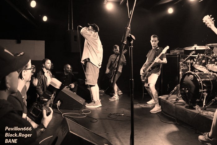 GET OFF ! profite de ce concert pour nous présenter son nouvel EP « Meatbags » (à la pochette bien réussie ndlr) qui sort aujourd’hui, « release party » donc pour eux. Les Lyonnais ont la forme ce soir et vont d’entrée de jeu placer la barre bien haute avec un son d’enfer où la basse prédomine, ce qui n’est pas pour me déplaire en tous cas. Leur menu, du hardcore style NYHC bien dans le style avec des musiciens qui ont tout comprit au film et qui vont déclencher déjà les premiers ébats physiques devant la scène, garez vous ! Nous allons prendre dans les dents 11 titres engagés et enragés sur un tempo soutenu durant une petite demi-heure et ce fut bien agréable ma foi, hardcore certes classique, mais bien foutu, on aime tout simplement. Set-list en photo. Après cette entrée en matière bien musclée vient le tour des ricains de BACKTRACK qui vont tout défoncer dans le Warmaudio ce soir telle une tornade hardcore ou un tsunami punk, ce sera les deux bien entendu. Alors pour eux, ce sera « lost in life » titre de leur dernier album en date (2014) et non « lost in the supermarket » des Clash souvenez-vous. Mais là ce soir ils ne sont pas perdus mais terriblement présents sur la scène du Warm. Backtrack, jeune groupe New-Yorkais avec à son compte 7 années d’existence et deux albums au compteur, « Darker Half » (2011) et « Lost in Life » (2014) ne fait pas dans la dentelle c’est certain. Dans ce quintette tout y est, l’énergie du hardcore, l’urgence du punk, des riffs tranchants, des soli acides avec un frontman d’une vitalité incroyable auquel nos « coreux » de ce soir vont s’accrocher en grappe pour prendre le micro tendu et pousser la « chansonnette ». Les dérapages thrash et l’effroyable avancée rythmique « booste » ce hardcore survitaminé et hurlé qui vous colle au plafond de toute évidence. Mention spéciale attribuée au jeu des deux guitaristes et à la performance du frontman qui va se retirer dans les loges au bout de 30 minutes, alors que le groupe pouvait jouer 45 minutes. Mais la dépense physique fut énorme et intense, on le comprend. Bien évidemment j’ai d’ores et déjà classé ce groupe dans mon « top ten » du punk/hardcore avec ce set de fous furieux jeunes et doués cela va de soi. Set list en photo. Maintenant, il va falloir que leurs compatriotes BANE du Massachussets relèvent le défi, et ce ne sera pas gagné d’avance. Ce groupe a été créé en 1995 par Aaron Dalbec (Converge) et Matt Firestone et n’est pas né de la dernière pluie dans le domaine du punk-hardcore, alors « wait and see » comme dirait mon ami le « keupon » dérangé. Mais attention, avec un certain vécu à son actif et une discographie longue comme le bras le groupe peut surprendre ce soir au Warmaudio. Mais en fait il n’en sera rien, car loin de moi l’idée de trop critiquer ce groupe qui a influencé bon nombre de combos hardcore, mais je dois constater que ce soir je fut un peu déçu par leur prestation Voici donc un groupe qui effectue « The final European Tour » et qui semble fatigué (surtout le frontman Aaron). Et puis le choix des titres interprétés devant nous n’étaient peut-être pas des plus accrocheurs de la formation, les anciens titres tout simplement. Leur hardcore ce soir avait un certain goût de mélancolie alors qu’il aurait fallu « monter au créneau » de l’énergie. Et pourtant ils en sont capables avec des musiciens toujours au top niveau. Leur prestation se déroula donc avec un public moins agité que pour le groupe précédent. Le mot « vieux » a été lâché dans le public, et c’est peut-être vrai finalement. Reste que BANE a sans doute satisfait tous les amateurs de bon hardcore qui se sont déplacés pour eux et c »est tant mieux ! Il ne faut pas cracher dans la soupe quand même, les trois groupes de ce soir ont attiré un public conséquent et motivé, de ce fait nous ne pouvons qu’encourager Riot Shows (que nous remercions au passage) de nous présenter des concerts qui valent le détour, à bientôt donc pour de nouvelles nuits agitée ! |