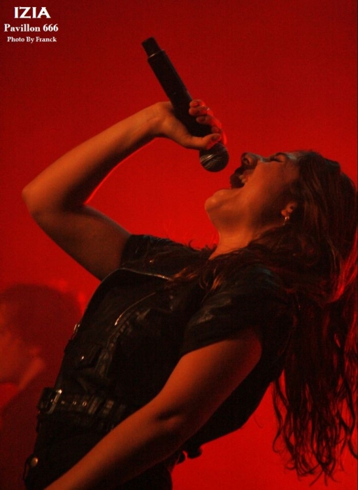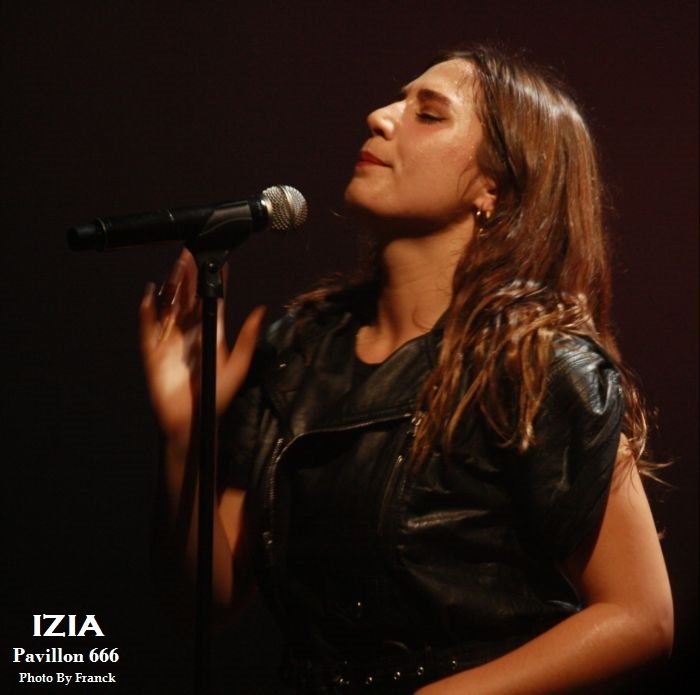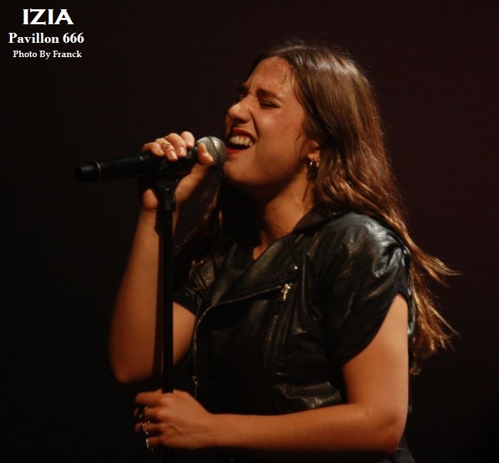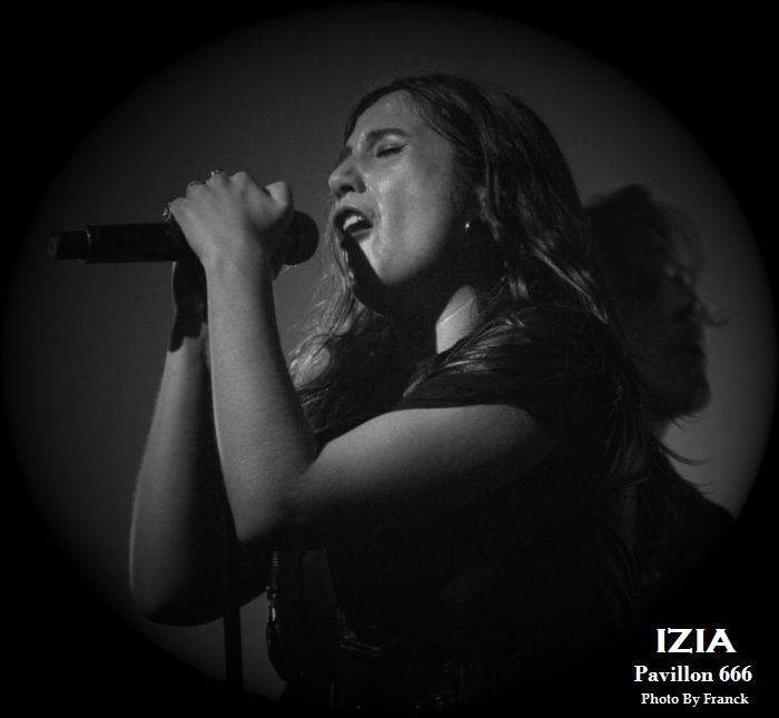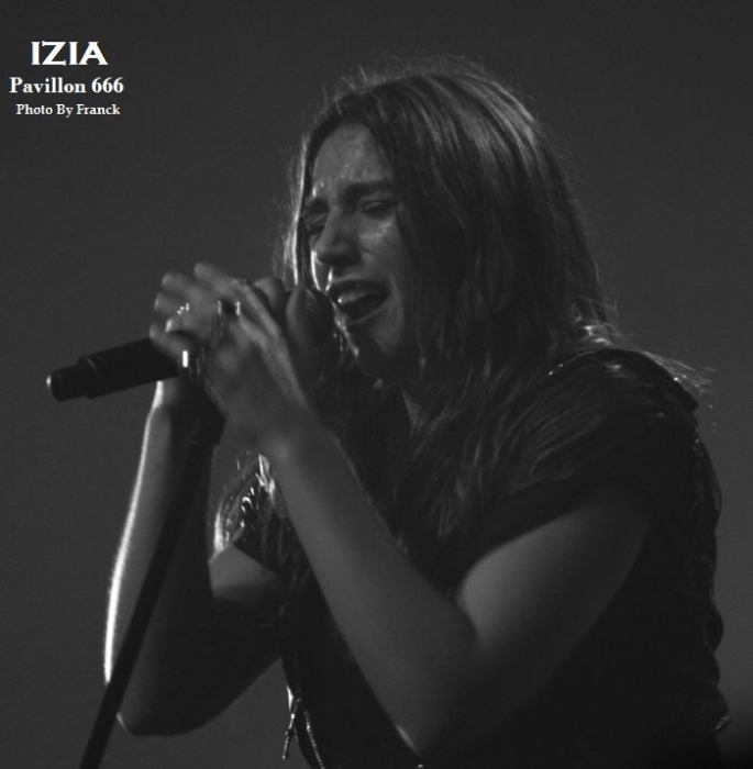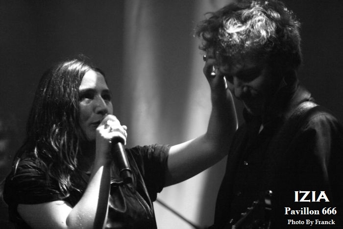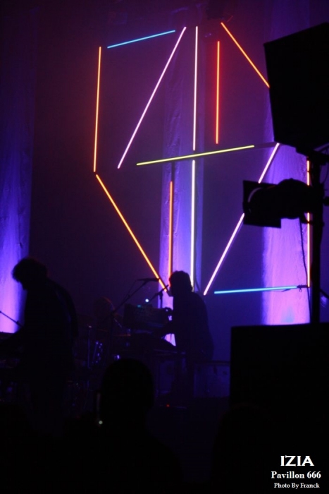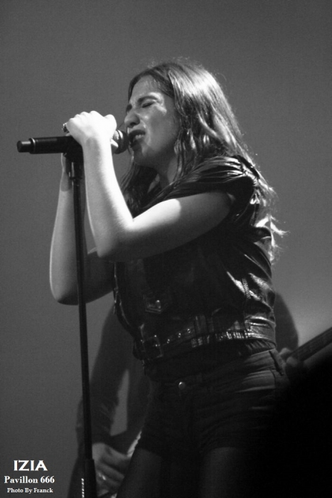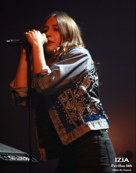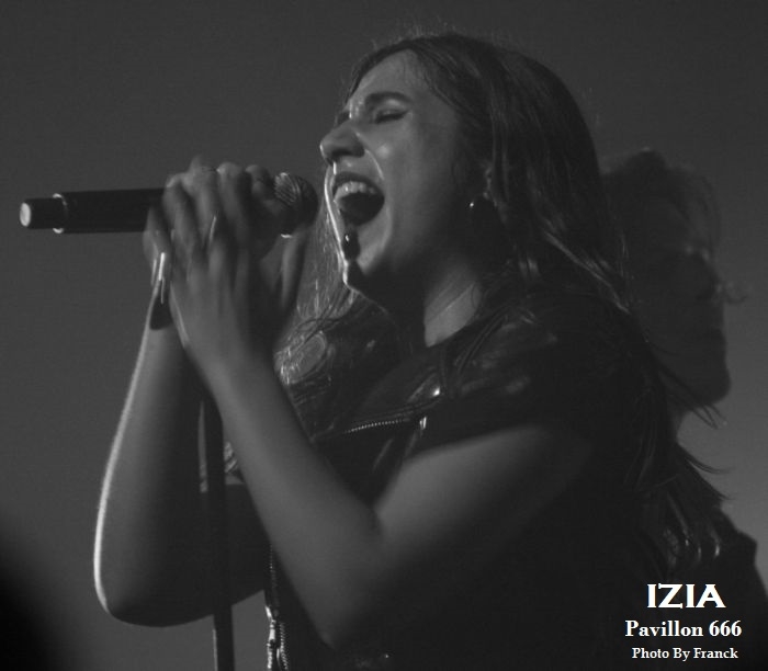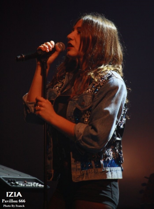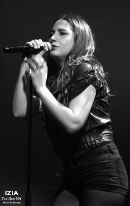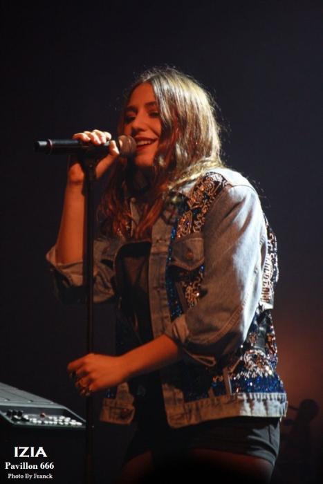 Du coup, je me retrouve tout en haut des gradins espérant sortir quelques photos correctes, mais je réalise que je suis en plein délire car j’ai largement surestimé les capacités de mes téléobjectifs, d’où les trois photos merdiques de Pethrol, première partie d’Izia. Il vaut mieux que je tente de vous parler de nos lyonnais de Pethrol, c’est quand même plus intéressant. Affutés à l’électro pop bien planant, pethrol est un duo qui ne fonctionne non pas au brut, mais avec les talentueux Héloïse et Cédric qui avec leurs trois Ep dans leur musette, ont vu leur côte de popularité grimper à vitesse grand V en quelques années. Musique et sons préprogrammés, samplers sont le tissu sonore du duo. Héloïse vient poser sa voix légèrement vaporeuse dessus tout cela pendant que Cédric à la batterie balance le tempo. Le résultat est hypnotique et ça ne rate pas, on se laisse complètement embarquer dans leur trip. Les light sont à la limite de l’obscurité, tandis que Pethrol nous balance du rêve plein les mirettes et tous les sens entrent en éveil. On laisse envouter par cette musique de l’instant, par la grâce d’Héloïse quand elle bouge, avec des mouvements simples et pourtant tentaculaires tant et si bien qu’à elle seule, elle s’accapare toute la scène. Leur musique est une sorte de magie, quelque chose d’impalpable et lorsqu’ils s’en vont on voudrait juste que ça continue, comme ci cela guérissait des blessures. Changement de plateau, j’en profite pour redescendre à la vitesse de l’éclair, ce qui équivaut chez moi à trois marches par minutes et je réussi tout de même à monnayer un petit coin de paradis dans cette fosse digne de l’enfer. Pensez donc !! 1800 personnes là dedans, on est entassé comme des harengs. De là où je suis, on ne peut pas vraiment dire que c’est le pied, mais avec du bol, je pourrai faire mes photos tranquille pendant les trois premiers morceaux. Le temps passe et la p’tite Izia se fait attendre, à croire qu’elle a du se perdre en route, puisque j’aime mieux vous dire que durant son set, on en aura des anecdotes sur Caluire et Cuire. Visiblement, le nom de cette banlieue lyonnaise lui a bien plu et lui aura fait du profit. Puis, l’obscurité tombe enfin sur la salle du Radiant et en fond de scène les néons multicolores scintillent à l’image de la pochette de son dernier opus, avec Izia écrit à l’endroit, comme à l’envers. Un très joli fond de scène insolite qui change des bâches habituelles de je ne sais combien de m². Les premiers arrivés sur scène seront les premiers servis car ce sont les musiciens et hop c’est parti, le set démarre sans la belle. Mais du fond de la scène la voilà qui arrive en sautillant, toujours montée sur ressorts. Avec sa pêche légendaire et son grand sourire aux lèvres, Izia démarre son show pied au plancher. A 25 ans, Izia est devenue une vraie bête de scène et rien qu’avec trois albums en poche, elle cumule un nombre de dates absolument incroyable. Pour avoir déjà vu la jeune femme plusieurs fois en live, on sent que c’est vraiment toujours la même fougue qui l’anime et toujours le même amour qu’elle porte à sa musique, à ses musiciens et à son public. Izia va même demander aux spectateurs de ranger leurs portables car elle n’a pas envie de s’adresser à des écrans, mais à des humains. « Profitez !! » dit-elle, au lieu de passer votre temps à regarder un écran. Franchement, qui pourrait lui donner tort ? Izia est une jeune femme résolument humaine qui désire de véritables échanges entre elle et son public. Son dernier album « La vague », va bien entendu être à l’honneur ce soir, mais pas uniquement. Izia dans sa set liste n’hésite pas à repiquer dans ces deux premiers albums des titres qui sont de véritables bombes. Ainsi, elle emmène tout le public avec elle le faisant chanter, le prenant à témoin entre deux titres pour raconter des anecdotes qui sont parfois vraiment n’importe quoi et toute la salle est pliée de rire. C’est un peu le côté enfant qu’Izia a su garder et qu’elle cultive avec bonheur. Elle apporte une vraie vague d’insouciance et de fraicheur qui fait un bien fou lorsque tu es là à l’écouter et à la regarder. Izia c’est aussi le charme dont elle sait jouer pour envouter tout ce qui l’entoure. C’est une petite nana super sexy qui bouge sans cesse, qui danse, qui sautille dans tous les sens comme un cabri, elle électrise complètement la scène et la salle et assure le show quasiment à elle toute seule. Mais Izia, c’est avant tout une présence et surtout une voix qu’elle va chercher au plus profond des racines du blues et de la soul. Je ne veux encore rabâcher les vieilles comparaisons avec Janis Joplin, mais il faut tout de même être honnête, il y a vraiment quelque chose de cela, non seulement dans son chant, mais aussi dans cette énergie absolument énorme qu’elle dégage. « La vague » son dernier opus sorti en 2015 l’a encore envoyée vers d’autres directions musicales, plus commerciales, plus électro, mais plus douces également. A travers cet album qu’elle joue sur scène, Izia nous apparait comme une jeune femme plus fragile, plus sentimentale, un peu à fleur de peau. Ses compositions sont de plus en plus écrites en français contrairement à ses deux premiers albums entièrement écrits en anglais. Même si le contexte devient plus commercial et touche un plus large public, Izia a muri, on le sent à travers ses textes. Toutefois, elle reste toujours la petite rockeuse enragée que nous avons connue à ses débuts car lorsqu’il s’agit de jouer ses anciennes compos, son instinct reprend le dessus et elle déchaîne les enfers en foutant littéralement le feu à la scène. Et puis d’un coup c’est la rupture, après des remerciements chaleureux Izia et son Band quittent les planchent, mais ô surprise, La jeu