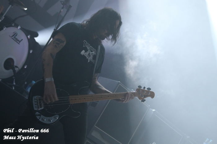 Charge à Incry d'ouvrir les débats pour un public garni, les franciliens venant de finaliser un troisième, sorti le 11 décembre, investissent la scène avec un rock musclé ayant des appartenances avec le milieu heavy et hard. Pour l'occasion et pour ne pas s'éloigner de Mass Hysteria, le quartette dégaine ses brûlots les plus tonique, les plus puissants. Le meilleur moyen promotionnel étant la scène, les musiciens sur une setlist de dix morceaux dévoilent six titres du tant attendu "Pandore". Parmi les quels les deux excellets "Copboy" et "Tigresse". Le show est rodé, derrière ses fûts Chris abat un travail de sape tout en gimmick, sur les planches ses trois compères délivrent une prestation animée et pleine de complicités. Kourros, en frontman, assure un bon relationnel avec le public et sait utiliser toutes les ficelles de son rôle pour se mettre en spectacle en fonction du caractère et thème des titres joués. Une belle mise en scène, travaillée et non surjouée. Noug (guitare) et Did (basse) viennent lui rendre le change autant que possible, complétant cette sensation de liesse sur les planches. Le public n'est pas en reste, attentif au propos du groupe, il aspire la folie et l'énergie émises par Incry. Les musiciens n'ont pas démérité pour cette reprise de concert, et ont correctement préparé le terrain pour la suite de la soirée. Avec la tornade audio propagée par "Pandore", leur troisième album, il est fort probable que ce nom apparaisse à l'affiche de nombreuses salles. Ne passez pas à coté. Quelques moments de répits, le temps du changement de plateau avant la déferlante produite par Mouss et ses acolytes. "Matière Noire" étant un album de haute couture, il est évident que le public suit le groupe durant la tournée promotionnelle de l'opus en faisant salle comble. Le set du quartette étant animé et agité, ce soir encore l'engagement de part et d'autre de la scène a pour résultat de propager une atmosphère exotique, chaude et humide, dans la grande salle du Plan. Tout au long de ce set de vingt titres, Mass Hysteria va évoluer sans économies, dynamisme, énergie et communion sont les mots d'ordre de cette prestation. Que nos yeux soient portés sur Yann (guitare), Frédéric (guitare) ou Vincent (basse), peu importe l'attitude gestuelle du musicien, le constat est le même. Les gars envoient du lourd et ne tiennent pas en place, usant de gimmicks pour les photos et caméra présente dans le pit. Raphaël martèle son kit sans laisser ses cymbales et fûts reprendre leurs souffles, son jeu dense et intense assure une assise solide à ses compères. Mouss fait le show en venant aux abords de la scène, en jouant avec le public, en prenant la pose. Sa prestation vocale restitue les titres de "Matière Noire" et les standards sans écarts, sans fausses routes. Parmi la setlist de vingt morceaux, les musiciens viennent à sept reprises piocher dans leur dernier opus. Le public connaissant le répertoire du groupe, n'hésite pas à participer et à chanter avec Mouss. Durant les rappels, "Respect To The Dancefloor" est l'occasion de faire monter la gente féminine sur les planches avec le groupe. Sans débordements et en parfaite communion, les fans et les musiciens échangent dans le même espace le temps d'un morceau. Echanges qui ont débuté par "Tout Doit Disparaitre" en entame de set et qui se prolongent jusqu'au dernier couplet de "Furia". Titre fort à propos pour décrire l'ambiance générale de ce show. La furie est bien d'actualité, tout comme la complicité et la simplicité. Car en toute humilité, les musiciens seront eux-mêmes au stand de merchandising après leurs débauches d'énergies. Une soirée très agréable organisée par l'équipe du Plan en compagnie de Base Productions. |