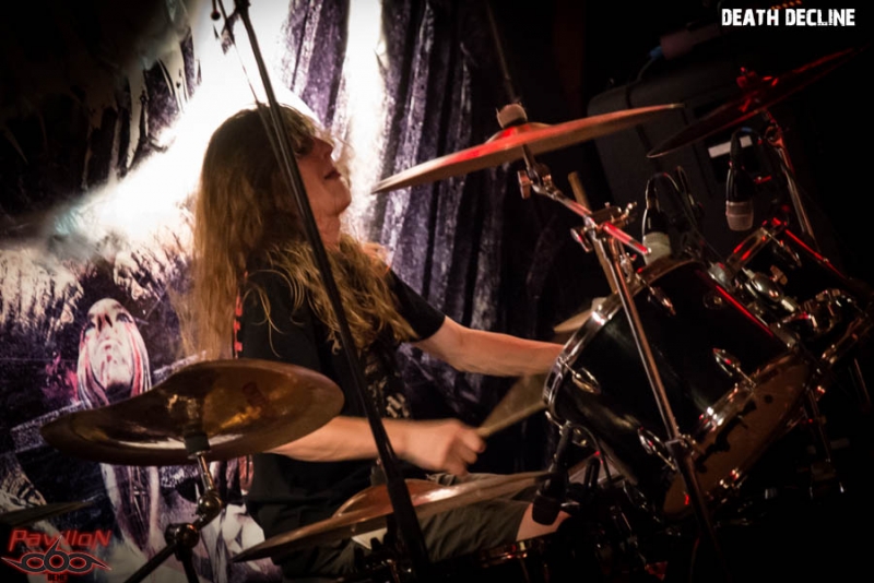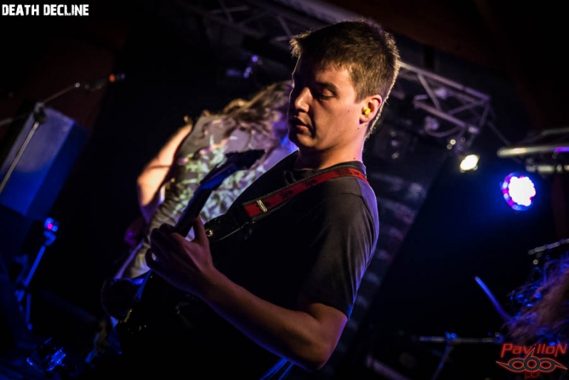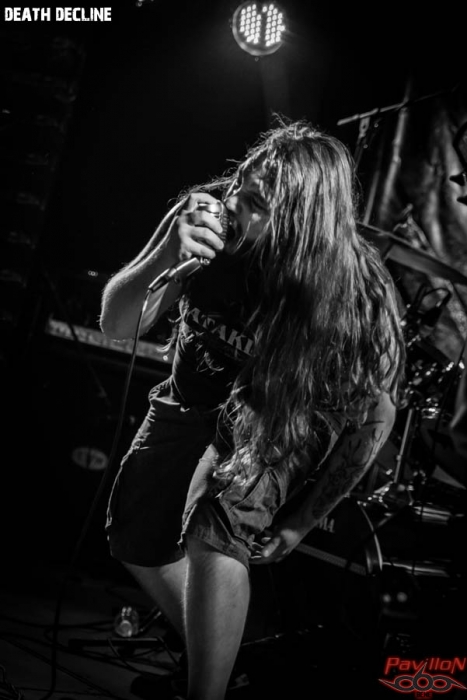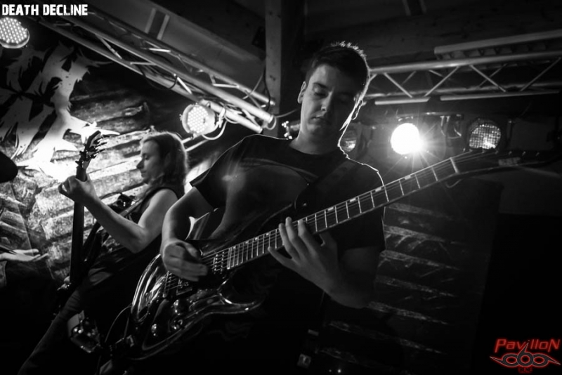 Quatre groupes au programme : • PERSEUS • BLOODLOST • DEATH DECLINE • MORTUARY La soirée s’annonce plutôt bien. Le premier groupe, PERSEUS, prend place. Ils sont originaires de Reims et officie dans le Death Technique. Avant ce soir je ne connaissais pas le groupe. Ce fut une bien bonne découverte, ponctuée de compos de qualité et d’une belle énergie. Clément nous offre un chant plutôt bon et chacun maitrise sa partie. On notera à la batterie, Julien, officiant également chez ATARAXIS. Jocelyn de ce même groupe rejoindra d’ailleurs les PERSEUS le temps d’un morceau. Le set est court je reste un peu sur ma faim. J’espère avoir l’opportunité de les revoir en live. Le public est réceptif et se met en condition pour la suite. J’ai vraiment bien accroché à leur univers et je n’en ai pas perdu une miette C’est maintenant au tour des suisses de BLOODLOST de monter sur scène. Leur trash va continuer de secouer les troupes. Leur son est agressif et c’est bien exécuté. Le combo est dynamique et transmet sa fougue au public qui se laisse emporter par les riffs acérés des helvètes. Tchico, au chant, est un frontman affirmé mais ses acolytes ne sont pas en reste et chacun y va de son petit coup d’adrénaline. J’ai un peu de mal à me mettre dedans, je suis un peu restée sur l’excellente performance de PERSEUS et du coup, question de goûts personnels ne remettant en rien les qualités de BLOODLOST, je peine à rester dans l’univers de ces derniers. 1. Intro 2. Hammer on your face 3. El diablo 4. I m Evil 5. Legion From Hell 6. Give me the whiskey 7. Bring my Bitch 8. 57 minutes to die 9. The doors 10. The Undertaker 11. Demolition 12. You will die again Les DEATH DECLINE se préparent à monter sur scène, après avoir géré un problème de maintien de pantalon pour Mario, un de leur guitariste. La ceinture de ce dernier ayant rendu l’âme dix minutes avant de monter sur scène une ceinture de fortune en ficelle (si si) a été improvisée nous offrant un petit moment de rigolade. Le moment visiblement tant attendu par la majorité du public arrive. Les DEATH DECLINE débarquent sur scène sous les acclamations du public. La dernière fois que j’ai eu l’occasion de les voir jouer c’était il y a un an maintenant. Entre temps l’album est sorti (chronique à venir). Nos amis dijonnais vont nous offrir un set digne de ce nom avec la même belle énergie que je leur reconnais à chaque prestation. Alexis, au chant, fidèle à lui-même ne manque pas de glisser un petit mot entre les morceaux et de balancer deux trois vannes. Keyser à la batterie est toujours aussi doué, Alex, Mario et Fab (basse, guitare, guitare) ne sont pas manchots non plus. Bref encore un excellent trashy moment avec cette bande là. Les gars sérieux ça en deviendrait presque chiant d’écrire sur vous… Vous ne pouvez pas faire une connerie pour une fois ? Histoire que les reports soient un peu plus variés à votre sujet ?? Ah ah ah non franchement non…. Au final… Le mieux si tu trouves que les live report de DEATH DECLINE sont pas variés, c’est d’aller les voir jouer, tu verras que je ne peux vraiment pas écrire du négatif sur ces mecs. Au-delà du capital sympathie à +3000, ils poutrent sur scène et même si tu n’es pas adepte du genre tu passeras quand même un bon moment parce que ces gars-là ont la patate et que c’est communicatif. Dernier groupe de la soirée et pas des moindres : MORTUARY. Et là pour moi c’est l’incompréhension totale. Une partie du public a déjà déserté la salle…. Pourquoi ? Je ne sais pas et je ne le saurais surement jamais mais p***** quel dommage ! Le groupe est quand même fort de 26 ans d’existence et n’a plus rien à prouver. Patrick, au chant, est un frontman hors-pair qui de par sa voix puissante va mettre tout le monde d’accord. Les autres membres du groupe ont un jeu de qualité et d’une précision qui fait du bien aux tympans. Je suis dans l’univers de MORTUARY avant même la moitié du premier morceau. Le public restant apprécie le show des lorrains et on les comprend. On va vraiment passer un bon moment en compagnie des nancéens, quel dommage vraiment que le public se soit réduit de la sorte. MORTUARY est un groupe d’une qualité indéniable et qui aurait franchement mérité que le public fasse un petit effort et garde ses fesses devant la scène. Le nouvel album du groupe est prévu pour janvier je vais guetter ça de près et je ne manquerais pas de retourner les voir jouer dès que l’occasion se présentera. Cette soirée s’achève déjà et force est de constater que les groupes présents ce soir étaient plein d’énergie. Un grand merci à Metal Division (et en particulier Fab) pour l’invit. Un merci à toutes les personnes qu’on a croisé ce soir-là pour leur gentillesse, leur accueil et leurs sourires : Max le biker, Didier, et Yannic (association Lezard’os) entre autres, et tous ceux dont je ne connais pas le nom, you rock guys ! |