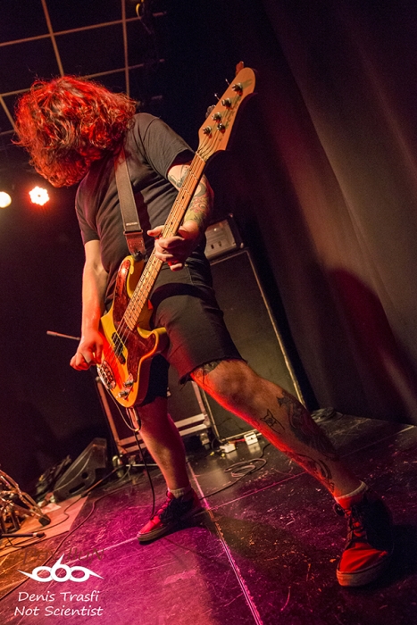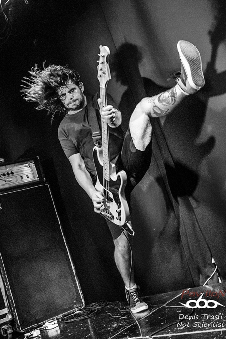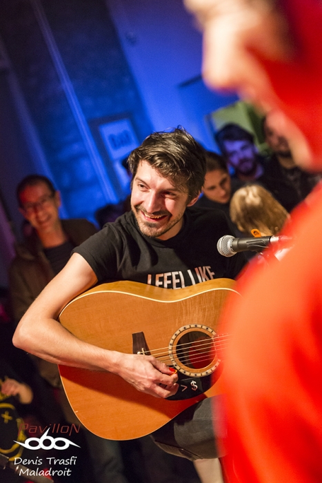 C’est parti pour une soirée au Potomak à Brie-Comte-Robert (91). C’est la première fois où je m’y rends et je suis surpris par la taille de la salle. Elle est petite !!! En plus la scène occupe un quart de celle-ci. Du coup au niveau proximité des artistes, on ne peut pas faire mieux… N’aimant pas arriver au dernier moment je fais parti des premiers et j’ai l’honneur de faire l’ouverture du bar. Tout en buvant ma mousse je regarde un peu la disposition du matériel et des lumières afin de préparer mon shooting et je suis surpris de voir qu’ils installent des tabourets au milieu de la salle et des micros. Je comprends dans peu de temps après avec l’arrivé de Maladroit. Ces derniers investissent la scène, enfin, le milieu de la salle. Les spectateurs restent en retrait sans savoir comment réagir. Le groupe nous explique que le batteur ne pouvant jouer de la batterie avec ses jambes (il a reçu une balle au Bataclan lors du concert de Eagles of Death Metal), ils vont qu’en même assurer le concert mais en acoustique !!!! C’est parti pour environ 45 minutes de punk/rock dans des conditions improbables. Deux chanteurs avec guitares acoustiques non amplifiées, le bassiste qui fait les chœurs et notre batteur avec seulement une caisse clair et un tom. Mais ils ont envies de faire le show malgré tout cela. Ils invitent le public à se rapprocher et envoi du punk avec des titres aussi étranges que Tom Cruise, Hello Kitty ou Nathalie Portmann ! On ne peut pas parler de justesse de jeu, ni de bon son, mais le challenge est réussi !!! ils ont fait du punk en acoustique tout en parlant, plaisantant et surtout sans se prendre au sérieux ! Le public apprécie. Set List : - Mila Kunis - Tom Cruise - Han solo - Hello Kitty - Ramona flowers - Victor Texeira - Jennifer Lawrence - Nathalie Portmann Le temps pour les fumeurs de faire un tour dehors et pour les frileux de se désaltérer au bar, le groupe Face for Radio se prépare sur scène. Il s’agit d’un trio qui nous lance un punk/rock assez traditionnel. On comprend assez vite que ce ne sont pas des grands habitués de la scène. La musique est assez rythmée mais ils sont trop statiques. C’est en contradiction avec leur musique… dommage. Cependant, les morceaux s’enchainent et sont bons. Le public apprécie. Ils enchainent pas moins de 17 morceaux. La matière est là. Il manque plus qu’à travailler le jeu de scène et par conséquent porter un peu plus les musiques punks ! A bientôt les Face For Radio, ne lâchez rien ! Set list : - Take me to your heart - Keep in touch - Life is beautiful - She mine - Someone like you - Try me - She not a girl - Don’t want anymore - So stupid - If you stay - For a few 1000$ - Maximalist - Down to the basement - With you - You won’t pull me down - Maybe or not - A mess in your head Après un petit temps mort, nous voilà avec les Not Scientists. Ce groupe français nous envoie un son punk / rock aux influences californiennes. Malgré leur jeune existence (formé en 2013) ils sont à l’aise sur scène et nous font le show. Et encore c’est le moins que l’on puisse dire. Jim le guitariste chanteur est très présent scéniquement. Il bouge, il appelle le public, il leur parle, il joue avec eux. Le lien est créé. Le public accroche. Sur notre droite Thibault, le bassiste. Il est survolté et semble complètement en transe…. Vite un exorciste ! Il saute, il est déchainé. Il rythme aussi bien les chansons avec sa basse qu’avec son corps ! Derrière Bazile le batteur frappe dur dur à côté d’Ed qui gratte et chante. Les morceaux s’enchainent et sont de bonnes factures. Dommage qu’ils se ressemblent un peu trop les uns des autres. Cependant ils sont en place. Techniquement rien à dire… Un bon show ! Set list : - Windows - I'm Brainwashing You - I Don't Feel So Crazy - Over And Out - We're Given No Options - No Third Chances - Just Break Me - Wrong Side Of The Highway - Broken Pieces - Tomorrow's Another Day - Coughing Blood - I Don't Feel So Crazy - Leave Stickers on our Graves Voilà une bonne soirée à renouveler avec plaisir grâce à une bonne organisation de l’équipe du Potomak, merci à eux et merci à Thib et Ed de Not Scientists pour le pass. A bientôt. |