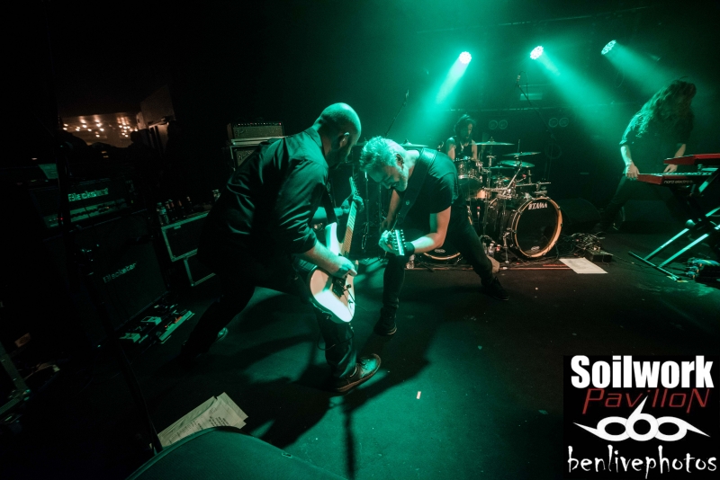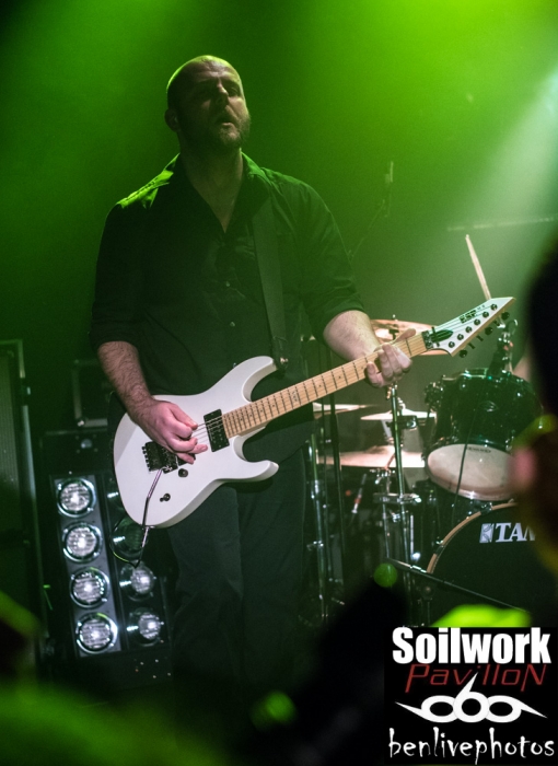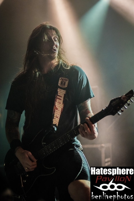 L'arrivée au Trabendo a beau être tardive, il n'empêche, T.A.N.K (Thinkof A New Kind) est encore sur scène. Le timing est parfait, j'arrive et j'ai déjà droit a un petit solo qui met bien dans l'ambiance. Nos frenchy, composés de Raf au chant, Charly et Nils aux guitares, Clément à la batterie et d'Olivier à la basse, envoient du lourd. Leur death mélodique technique est bien apprécié de la foule. Le chant est parfois clair ce qui sonne un peu heavy metal. Le batteur s'est vraiment dépensé, et la proximite de la batterie envers la fosse nous permet de bien le voir ce qui change des batteurs souvent reclus. Les guitaristes ont un niveau technique assez ahurissant, on passe du leaks bien rapide au taping. Les amateurs de soli se régalent! Quand à Raf au chant, il gère très bien le changement entre les voix bien metal et les voix claires. Voilà donc un groupe français qui a suffisamment de talent pour se démarquer via les qualités techniques de ses musiciens, même si le style joué est quand même devenu assez populaire. Setlist: The Raven's Cry The Chrysalis T.A.N.K 09' Beautiful Agony Legacy Inhaled From the Straight And Narrow Le second groupe de la soirée, à savoir Hatesphere, nous vient tout droit du Danemark. Je n'avais jamais entendu parler de se groupe auparavant. Cela ne pouvait pas mieux tomber pour découvrir cette formation qui propose un thrash bien nerveux grâce à leur chanteur sacrément showman! Celui-ci gesticule dans tous les sens, avec beaucoup de mimiques ce qui met la bonne ambiance. Cependant niveau son, les musiciens ne sont pas la pour rigoler et ils enchainent les titres avec une énergie bien determinée. La communion avec le public est parfaite, grâce à Esben "Esse" Hansen, notamment lorsqu'il imite le chanteur de "Black Dahlia Murder" qui, selon lui, ne fait qu'un seul mouvement en concert. Cela fait donc plaisir de voir un groupe débordant d'énergie surtout en injectant du bon vieux thrash old school assez groovy. Soilwork vient de sortir l'album "The Ride Majestic", son dixième en 20 de carrière. Autant dire qu'ils savent comment gérer un concert! Le public est dorénavant chaud bouillant pour les accueillir. L'arrivée de Soilwork sur scène est des plus imposante, et Soilwork ne se fait pas prier pour attaquer avec on son bien heavy et fort. Déja, on sent que Soilwork est en forme rien qu'en voyant les musiciens se déplacer ici et là le long de la scène. Le son est bien métal, bien gras mais ce la n'empêche pas le chanteur, Bjorn "Speed" Strid, de chanter en voix claire. Cela signifie aussi que beaucoup de passages sont mélodieux. Cela n'enlève en rien la prestation, au contraire, on se rend compte vraiment de la qualité des musiciens. Ainsi, David Andersson montre son talent technique à la guitare en enchainant des leaks et autres parties hypertechniques. Des titres comme "Bastard Chain" peuvent faire penser à du At The Gates en bien plus épuré et mélodique. Soilwork semble s'inspirer de différents styles et d'en faire un savant mélange qui ravi tout le monde, le titre "The Ride Majestic" contient quand même pas mal de plans metalcore, death, heavy et même en poussant un peu hardcore sur la voix. C'est donc aussi pour voir des groupes de cette qualité que le public continue de venir aux concerts malgré les derniers évènements, et cela est tout à fait légitime au vue de la prestation très professionnel de Soilwork. Setlist: The Ride Majestic Nerve Bastard Chain The Crestfallen Death in General Alight in the Aftermath Tongue Follow the Hollow Petrichor by Sulphur This Momentary Bliss The Chainheart Machine Stabbing the Drama Let This River Flow Late for the Kill, Early for the Slaughter Rejection Role Whirl of Pain Spectrum of Eternity Un grand merci à l'équipe de Pavillon ainsi qu'à Valérie de jmtconsulting |
