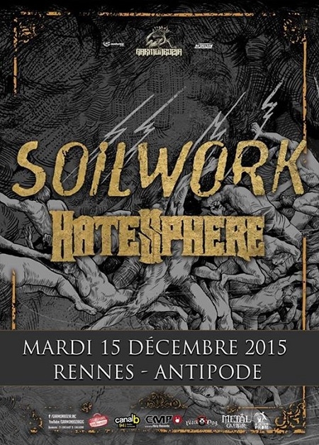 Bien que je ne l’ai pas vu parqué devant la salle de l’Antipode, c’est très certainement à bord de leur puissant drakkar que les vikings de Hatesphere et Soilwork sont venus débarquer sur les terres bretonnes et mettre à feu et à sang un public rennais avide de gros son. Les 2 groupes sont actuellement en tournée pour la sortie de leur nouveau bébé, New Hell pour Hatesphere et The ride Majestic pour Soilwork. Les 2 groupes ne sont pas nés de la dernière pluie puisque les 2 affichent une vingtaine d’année et une dizaine d’albums au compteur, grosse affiche donc pour la petite MJC rennaise.