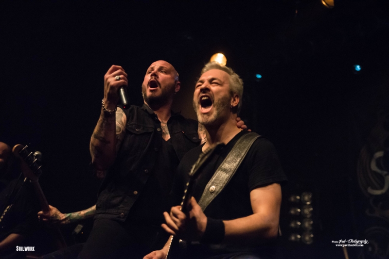 Hatesphere est réputé pour être une tuerie en live et ils n’auront aucun mal à le démontrer ce soir. Grosse énergie et bonne humeur sont effectivement au rendez-vous, les gars sont connus pour ne pas se prendre au sérieux et c’est vraiment l’impression qu’ils donnent tout au long de leur set, un peu trop court d’ailleurs, puisqu’il n’y aura que dix morceaux. Hatesphere a fait le choix de ne pas trop jouer des morceaux du dernier au profit d’un petit best of de derrière les fagots, le genre de setlist que l’on a l’habitude de voir en festival plutôt qu’en tournée, mais ils ont le mérite d’assurer l’efficacité. Hatesphere est proche de son public au sens propre comme au figuré. La scène de l’antipode n’est déjà pas immense, mais le fait d’avoir posé en avance la batterie de Soilwork à laissé très peu de place au combo danois, ce qui n’a pas découragé les gaillards se démenant sur scène avec les sourire. Gros succès de leur part, une première partie comme on les aime, je dirai même que certain, ce soir, sont venu exprès pour eux. Je regrette quand même un éclairage pas terrible, cette habitude que les groupes de metal de jouer dans le noir est vraiment incompréhensible. Hatesphere setlist Reaper of life The coming of chaos Vermin Floating Ressurect with a vengeance Lines crossed lives lost Murder lost Iconoclast Drinking with the king of the dead Sickness within C’est ensuite au Suédois de Soilwork, tête d’affiche de cette soirée de monter sur la scène de l’antipode. La dernière fois que je les avais vus en concert doit remonter à une dizaine d’année et j’attendais beaucoup de ce concert, au final je ne serais pas déçu. Peu de groupe arrivent à allier la puissance et le mélodique avec autant de talent et le dernier album, à l’écoute des quelques morceaux disponibles sur le net, semble un très bon cru. Le concert commencera d’ailleurs par le titre éponyme « The ride majestic ». Les Suédois sont très en forme et heureux d’être en France pour présenter ce nouvel opus, autant Bjorn Strid que le reste du groupe offrent une performance de premier ordre. Le public Rennais est ravi, déjà chauffé par Hatesphere, fera la fête aux Suédois, circle pitant à la moindre occasion et on aura aussi le droit à quelques interventions de Sylvain Coudret, le représentant français de Soilwork. Une bien belle ambiance. Si la plus grande place est faite a the ride majestic, soilwork pendant ce concert explorera une bonne partie de sa discographie. C’était plutôt les vieux morceaux que j’étais venu voir et il n’y en a pas eu beaucoup, mais quand même « follow the hollow » et « rejection role » sont d’excellents morceaux en live et cela m’aura suffit. Le concert s’achève en apothéose et les rennais présents à cette soirée n’auront pas boudé leur plaisir. Un vrai plaisir de revoir Soilwork et merci à Garmonbozia pour l’organisation de ce concert d’anthologie, ainsi qu'à Valérie Jmt Consulting pour l'accréditation et le pass photo accordés à pavillon666. Soilwork setlist : The Ride Majestic Nerve Bastard chain The crestfallen Death in general A light in the aftermath Tongue Follow the hollow Petrichor by sulphur This momentary bliss Chainheart machine Stabbing the drama Let this river flow Late for the kill/Early for the slaughter Rejection role Whirl of Pain Spectrum of eternity |