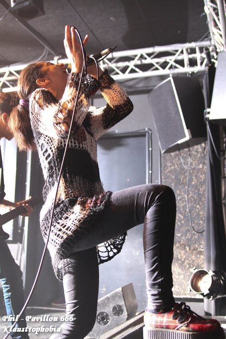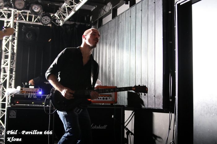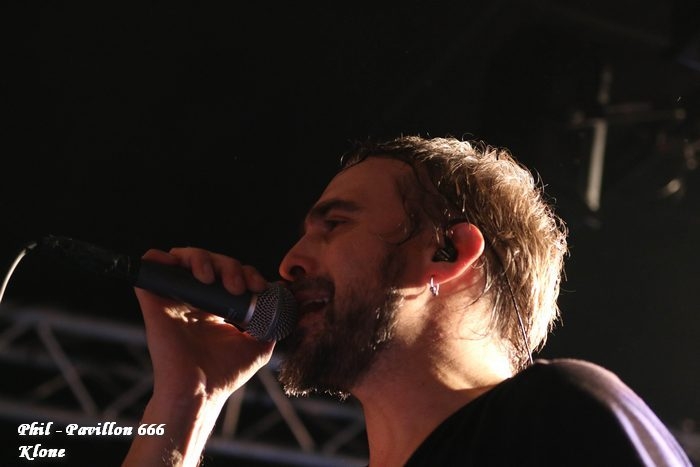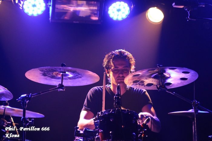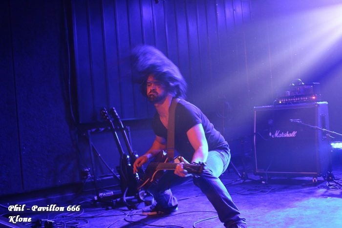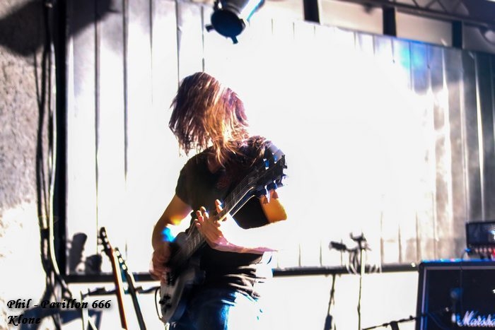 Le mélange des genres se fait par une entrée en matière d'orientation alternatif rock, hard rock délivrée par le quartette, Leaving Passenger. La musique des parisiens est assez direct et menée avec aisance. Sans être d'une violence extrême, les compositions donnent dans le rock musclé, dynamique et puissant. La prestation des musiciens est plus agitée du coté de PC (guitare) et Jumar (basse), Julien (chant) est quant à lui plus fixé à son pied de micro. L'ensemble assure techniquement comme le démontre tant la section rythmique tenue par Jumar et Vince (batterie) ou JC par ses riffs imposants et soli intéressant. La formation démontre un certain potentiel et demande à confirmer sur d'autres scènes cette agréable présentation. Le changement de plateau balaye le tempo engagé précédemment. Klaustrophobia, régional de l'étape, démarre son set sur les chapeaux de roues et maintient le rythme d'un bout à l'autre de sa prestation. Le groupe s'exprime au son de metal moderne, de riffs tranchants et imposants, de rythmiques martelés et basses groovy, de chant ravageur et furieux. C'est bien le terme qu'il convient à ce jeune quartette, qui n'est guère affolé par l'expérience des planches. Force est de constater que le set est bien mené et rodé. L'ambiance est dynamique et énergique, les musiciens arpentent la scène de fond en comble, de long en large, pas d'espaces inutilisés pas de temps morts. Il se dégage une atmosphère plaisante et festive transmises dans la fosse. Le public échange avec Yuki (chant) à chaque relance de la vocaliste. Cette expérience mouvementée riche en intensité musicalement et scéniquement est de belle augure pour l'avenir du groupe. Place à Klone pour le final. Le quintette ayant changé son fusil d'épaule pour son dernier opus est venu confirmer tout le bien fondé de "Here Comes The Sun". Orientant son set sur des compositions proches de cet univers atmosphérique et ambiant, les pictaviens mettent en beauté des titres planants et mélodiques renforcés d'instants lourds et imposants. Avec des allures doomesques, les morceaux prennent une autre dimension et une valeur ajoutée durant cette expression scénique. La prestation est parfaitement huilée et rodée, pas d'anicroches. Les musiciens jouent et évoluent avec et selon les thèmes. Bien qu'ils pratiquent des salles et festivals plus garnis, aucun ne s'économise, pas de roue libre, Klone est bien présent et transpire cette euphorie dans la fosse. "Here Comes The Sun" se bonifie tout au long de la prestation du groupe. Certains ont manqué leur virage musical, Klone sort grandi de cet exercice périlleux. Comme à son habitude, Le Chaudron a permis de mettre en valeur des formations metal le temps d'une soirée dans un contexte visuel et sonore de qualité. |