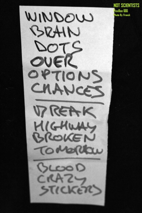 C’est la claque sonore du mercredi soir avec trois belles affiches, dont deux qui vont sacrément me surprendre, qu’il s’agisse des basques de Berri Txarrak ou encore des Supermunk. Ne cherchez rien sur les Supermunk car il n’y a strictement rien à trouver du moins pour le moment. Une fois de plus Forest Pookie nous prend à contrepied avec un nouveau line up dont les membres ne nous sont pas étrangers. Pour vous la faire courte sans faire compliqué, il s’agit tout simplement des musiciens du groupe « Annita Babyface & The Tasty Poneys ». Alors bien entendu nous connaissons Forest pour ses albums acoustiques et sa présence survitaminée au sein des Sons Of Buddha. Le voici désormais de retour avec ce nouveau projet et très certainement un premier enregistrement courant 2016. Au sein de Supermunk, on retrouve bien la patte mélodique de Forest et cela fait un peu l’effet d’une sorte de synthèse concernant la musique pratiquée par les trois garçons au sein de leurs différentes formations. Le tout donne une sorte de post punk des familles qui arrache bien, avec de très bonnes compositions qui groove un max. C’est vraiment prometteur, d’autant plus qu’il s’agit de leur premier concert officiel et ça vaut déjà le coup de venir les voir. De toute façon, tous les trois n’ont plus grand-chose à apprendre en matière de pop punk ou de punk à roulettes et s’ils le voulaient, ils pourraient même composer directement sur scène. En tout cas, voici un excellent set où je ne me suis pas ennuyé une seule seconde. Les titres joués par Forest et sa bande étaient vraiment au top et j’attends avec impatience ce tout premier album des Supermunk et les tournées qui je l’espère vont aller avec. On pourrait presque dire, on prend les mêmes et on recommence, à peu de choses près que les Not Scientists sont emmenés par Ed, le frère de Forest car chez eux la musique est une affaire de famille. Le coup de frein à main donné dans l’histoire des Uncommonmenfrommars a permis de donner naissance à un fameux combo : Les Not Scientists. Ed et Jim en ont été les fondations. Thib à la basse et Matthieu à la batterie sont venus parfaire ce line up que l’on ne peut pas qualifier de vraiment éclectique, mais par contre de très riche musicalement parlant. Les Not Scientists pratiquent une musique hyper énergique tendance post punk ou encore indie. La plupart de leurs titres sont très accrocheurs. Déjà riches d’un Ep et d’un album, ils s dirigent tranquillement vers l’enregistrement d’un nouvel opus qui à mon humble avis risque d’être très prometteur, voire énorme. Dans un registre un peu différent, les Uncommonmenfrommars étaient un bon groupe, mais les Not Scientists sont plusieurs crans au-dessus. Il devient même de plus en plus difficile de les comparer. Mélodiquement, ils sont vraiment percutant et leurs morceaux dégagent un émotionnel vraiment très fort. L’échange de voix entre Ed et Jim est vraiment judicieux. Ils se complètent à tous les niveaux. Les guitares sonnent magnifiquement bien et sont parfaitement calées avec un usage modéré et contrôlé des effets de modulation ou encore de délay. La musique des Not Scientists balance toujours entre un côté incisif et un côté planant. C’est très souvent l’opposition du calme contre la tempête et le tout est toujours superbement dosé. N’ayons pas peur de le dire, ça respire l’expérience en même temps que l’harmonie. Le duo rythmique est résolument infernal avec Matthieu qui fait un boulot de dingue derrière ses futs et Thibault qui se comporte en véritable métronome à la basse. Je tiens à insister sur le fait qu’il y a une véritable régulation entre les trois membres qui tiennent le devant de la scène. Jim et Ed en véritables frontmen envoient la sauce maximale, tandis que Thibault assure un jeu scène plus que tonique et ne tient pas en place une seconde. C’est très difficile d’expliquer qui sont vraiment les Not Scientists. Il faut les voir et les écouter en live pour vraiment s’imprégner de leur musique, tant ce qu’ils font est absolument énorme. Allez sur leur page facebook, découvrez leurs albums et surtout venez les voir en concert. Vous n’en reviendrez pas. Je vous garantie avec eux le grand frisson et un pur moment d’évasion. Dernier groupe et tête d’affiche de la soirée, les basques de Berri Txarrak. Je vous rassure tout de suite, moi non plus je ne les connaissais pas. On dit que les mauvaises nouvelles vont vite et bien j’ai pu vérifier cela, c’est vrai que ça va vite… Oui, je ne vous ai pas encore expliqué, mais Berri Txarrak signifie en français : « Mauvaises nouvelles ». Le combo basque affiche un peu plus de vingt ans d’existence et une dizaine d’albums à leur palmarès. Il faut quand même avouer que ce n’est pas mal du tout et je me demande encore comment j’ai pu passer à travers une formation d’une telle qualité durant toutes ces années, mais on ne peut pas tout connaître. Le trio de Berri Txarrak pratique un rock alternatif plutôt énergique avec à la clef, du gros son qui bastonne. Cela aurait pu être un concert pour les sourds et malentendants tellement c’était fort. Même avec les bouchons d’oreilles, je n’entendais plus rien à la fin du set. Que voulez vous c’est le prix à payer pour ce qu’on peut appeler le rock fort… En tout cas, une chose est sure, c’est que les trois basques ne sont ni venus pour faire de la figuration et encore moins pour étendre le linge. Par conséquent ça va au bas mot envoyer du lourd, quelque chose de costaud comme vous ne pouvez même pas imaginer si vous n’étiez pas là. A la croisée du metal, du hardcore et du punk, les trois garçons ne vont pas ménager nos oreilles. Ils vont envoyer un set des plus sportifs avec des titres tous aussi excellents les uns que les autres à la clef. Bien que Berri Txarrak fasse d