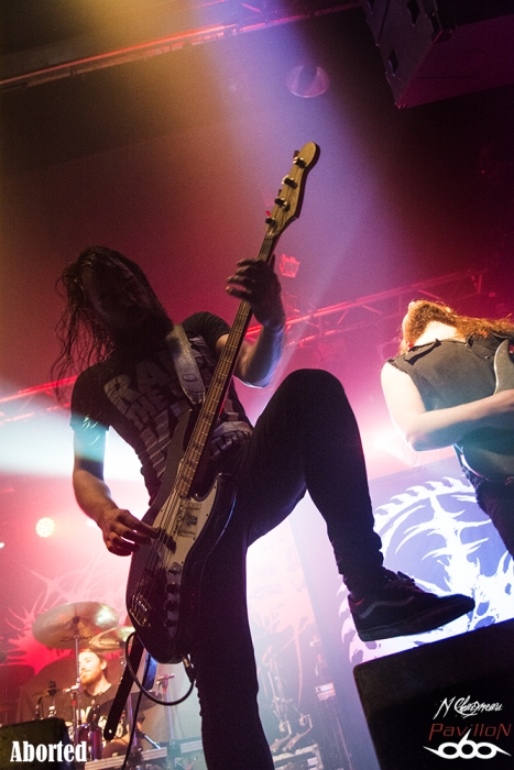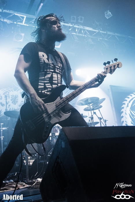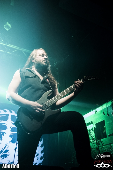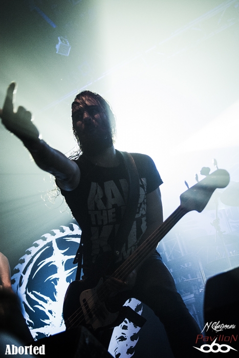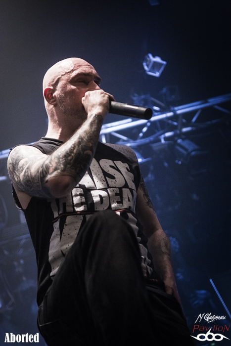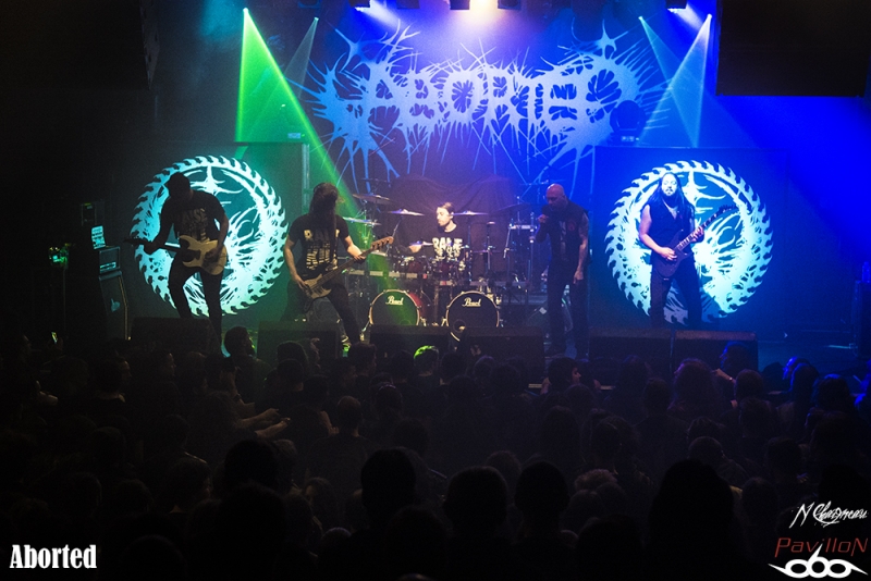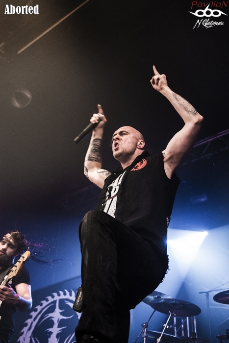 L'ébullition sur scène ou dans la fosse ne s'arrête qu'un court instant de tout le set : un wall of death se prépare... mais on sait tous ce que ça donne ensuite ! C'est reparti tambour battant, tout aussi explosif qu'au début de la soirée tant et si bien qu'on ne voit pas le temps passer. Le set d'ABORTED semble se terminer immédiatement après avoir commencé, seul notre essoufflement nous rappelle qu'on se déchaîne depuis déjà 45 minutes. Lorsque les lumières se rallument, on découvre un public échauffé qui n'attend qu'une chose : la suite !