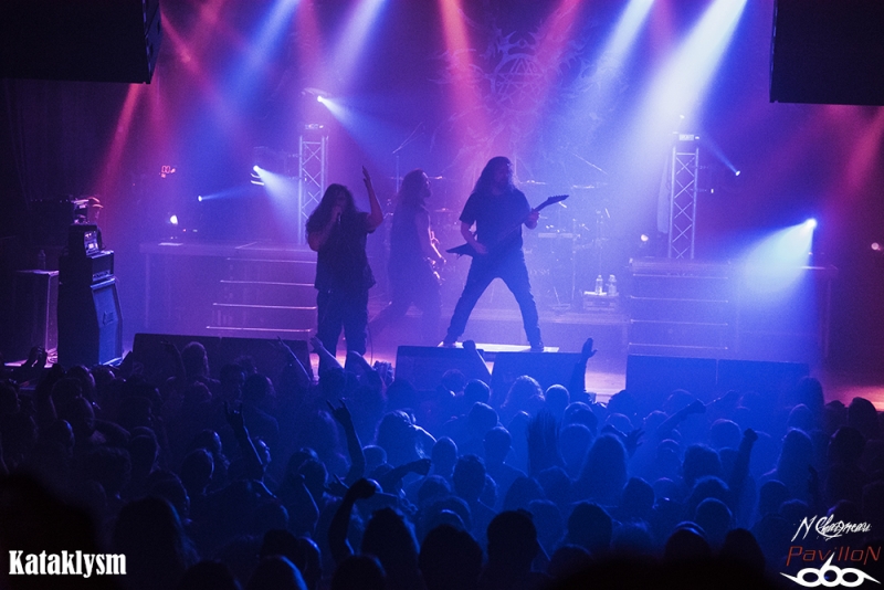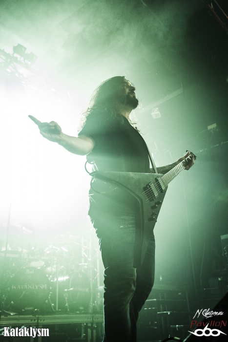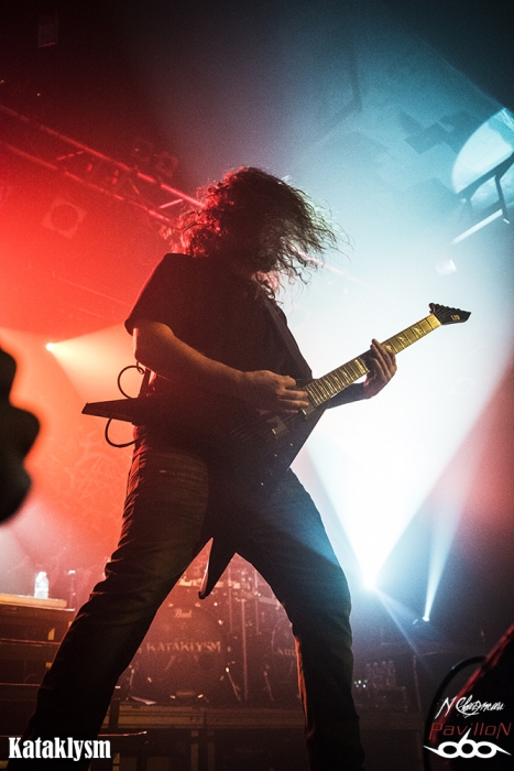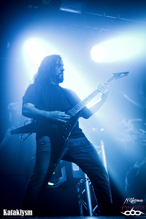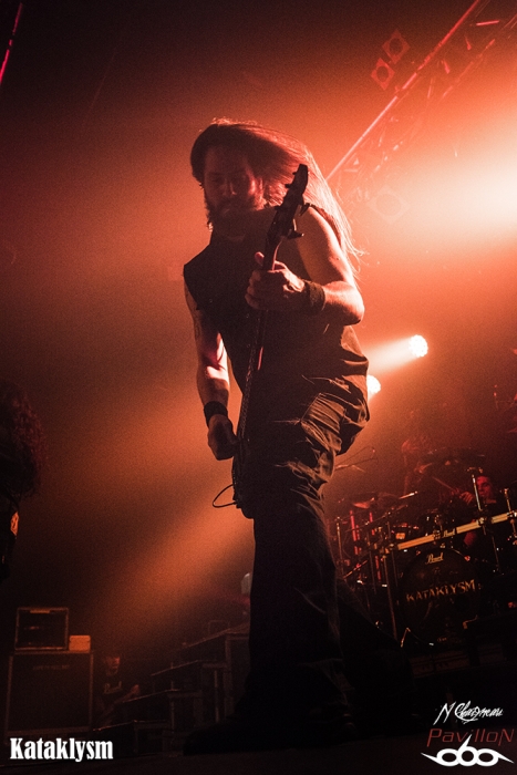 Après un nouvel entracte légèrement plus long, les Canadiens de KATAKLYSM font leur entrée en scène, saluant leurs "cousins Français". Il m'avait semblé un moment que la salle s'était clairsemée mais cette impression disparaît soudainement : le public s'est resserré à l'arrivée de la tête d'affiche de la soirée.