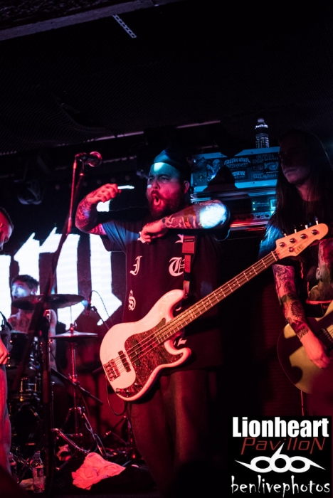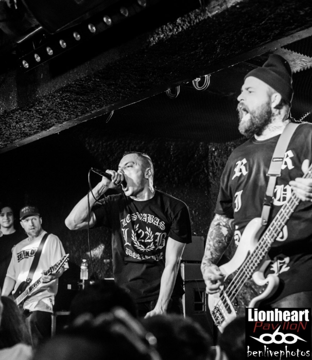 Desolated partageait déjà l'affiche avec Lionheart lors de la tournée du "Taste Of Anarchy", donc pas étonnant de voir ces deux formations sur la même affiche cette année. Style vestimentaire assez "vintage" pour l'un des guitaristes et le bassiste mais l'habit ne fait pas le moine et je vous assure que leur son n'est pas oldschool! Déjà la basse envoie un super son, encore un featuring avec le chanteur de Fallbrawl sur l'un des premiers titres, les gratteux assurent aussi les backing vocals. Là aussi, la participation du guitariste et du bassiste concernant la voix permet d'envoyer pas mal d'énergie. Le chanteur de Fallbrawl avait gardé suffisamment d'énergie pour slammer à tout va. Faut-il vous expliquer la réaction des fans? Paul, le chanteur joue bien avec le public et les photographes. A noter que c'est Nash, batteur de Nasty, qui assure la tournée, toujours à la batterie pour Desolated. Le set se termine dans la joie et la bonne humeur, avec certainement quelques bleus et contusions pour certains mais cela ne gênera en rien pour accueillir la tête d'affiche Lionheart, avec une salle pleine.