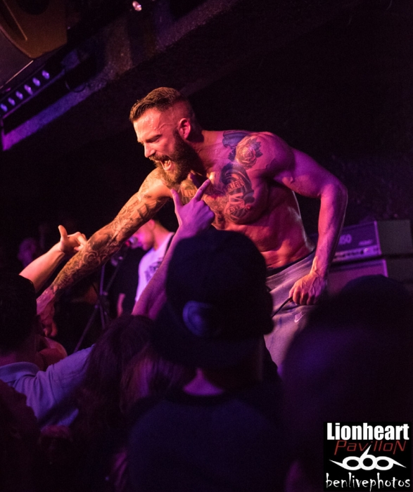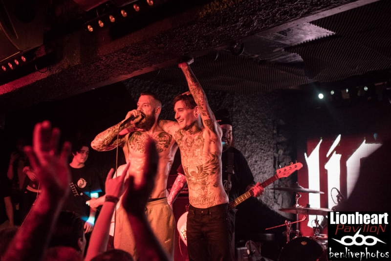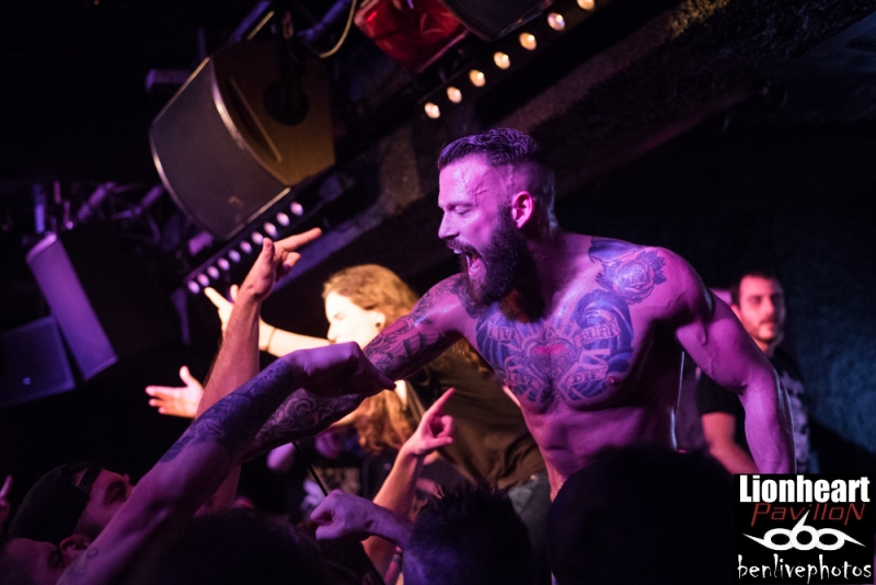 Du coup ça part direct, pas de chichi, la sauce est envoyée, la foule est au taquet, stagedive à gogo mais pas trop de place pour le KDS, après il suffit d'en faire...Les 4-5 premiers titres s'enchainent sans coupure, les refrains sont bien repris par les fans lors des nombreux "sing along" notamment sur "Rest In Power". Rob Watson montre donc son torse, ce qui ne laisse personne de marbre. Les salles de muscu vont certainement connaître une recrudescence de coreux si ce n'est pas déjà le cas! Beau bazar sur la scène. Petit moment de frayeur lorsque l'un des guitaristes quitte la scène, mais même si on ne saura jamais pourquoi, il reviendra rapidement pour continuer. On aura droit à une intervention pleine de hargne au micro de la part de Soufiène, chanteur du groupe straight-edge parisien Mind Awake, sur "Brother's Keepers". Lionheart joue avec le public pour les rappels et ils finiront le set avec le mythique "LHHC".