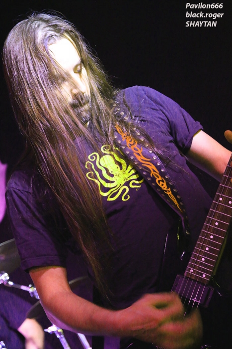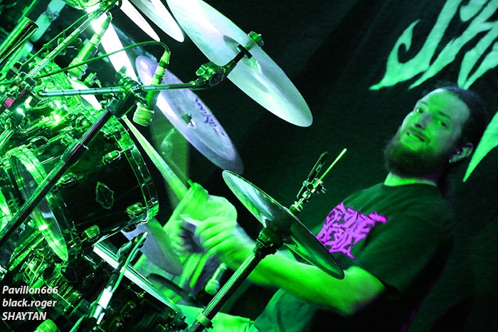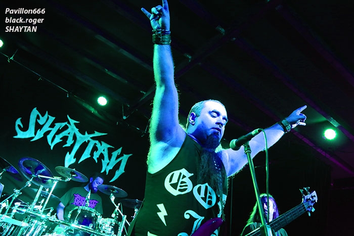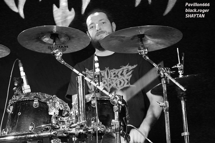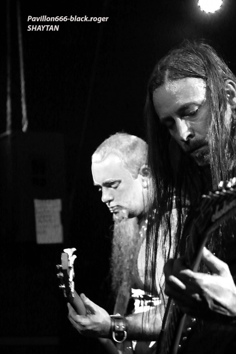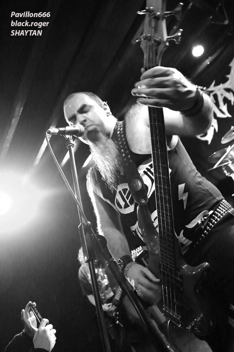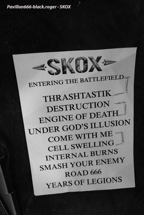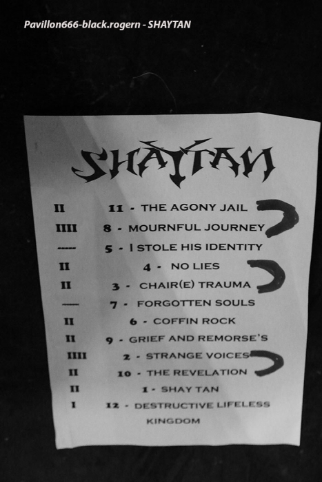 Mais avant de découvrir en live leurs nouveaux titres, les Annéciens de SHAYTAN et les « coreux » locaux de PIT DISORDER ont envoyé la sauce, histoire de nous décrasser les conduits auditifs de bonne manière. PIT DISORDER, quatuor rajouté au dernier moment sur l’affiche en remplacement des death-métalleux de Dissident Solutions, n’avait pas son public ce soir, pas de moulinets ni de 2-step devant la scène. Les métalleux présents étaient venus pour une soirée orientée thrash/death. Mais cela n’empèchera pas ce public de découvrir ce combo lyonnais qui nous a offert un set de hardcore old-school orienté NYHC plein d’énergie et de savoir faire dans le style. Et le groupe en a profité pour nous présenter les titres de son premier EP « Our Time Has Come » paru ces jours-ci. Petite demi-heure d’un set court mais obligatoirement intense qui a mis tout le monde d’accord, du moins je l’espère. En tout cas perso j’ai bien apprécié leur musique qui nous prend à la gorge, aargh ! Set-List en photo. A en juger le remplissage de la salle pour la prestation des Savoyards de SHAYTAN nous nous posons une question. Public à moitié dehors, qui attend de rentrer pour le combo suivant Skox où public qui se désintéresse des musiciens venus d’ailleurs… Il est vrai que ceux de SHAYTAN ne vont pas bénéficier d’un bon son ce soir, absence de balance avant le concert ou autre ? Mais quand même Shaytan a choisi un style thrash plutôt death qui devrait interpeller le public Lyonnais avec déjà plusieurs années de concerts et des musiciens bien rôdés qui se bougent. Alors leur set se déroula sans l’ambiance souhaitée avec un pit clairsemé malgré les injonctions du chanteur/bassiste essayant de rameuter les absents. Shaytan a quand même réussit à intéresser et convaincre ceux restés qui découvraient la formation. A revoir donc dans de meilleures conditions nous n’en doutons pas, merci les gars ! Set-list en photo Et bien entendu comme par magie la salle se remplit convenablement pour le show de SKOX. Le quintette se lance sans tarder dans la bataille avec des musiciens gonflés à bloc, prêts à en découdre avec un son à décorner un troupeau de buffles en rut. Nouveaux et anciens titres font bon ménage, car il est vrai que cette formation a toujours su composer des morceaux taillés pour le live, d’une efficacité redoutable donc. Et du coup l’ambiance est au rendez-vous avec notamment les inconditionnels du groupe qui s’agitent devant la scène. SKOX perpétue une certaine tradition du thrash/death old-school et guerrier cela va de soi et cela se sent, se ressent là ce soir au Warmaudio avec des « grattes » qui « miaulent » en soli acides et tranchants, une basse turbo en fond d’écran, un batteur malmenant ses fûts et un frontman dominant le tout par une présence indiscutable vivant ses textes de champ de bataille, cqfd. Skox nous a donc encore une fois collé au plafond avec une prestation irréprochable comme il en a le don, on aime tout simplement. Set-list en photo. Soirée métal/HxC frenchie 100% labellisée qui aurait pu intéresser plus de monde au final c’est certain, mais les voix de satan sont inpénétrables vous le savez comme moi. En tout cas merci aux trois formations qui ont animé la soirée, merci aux organisateurs de cette petite « sauterie » du vendredi soir (Skox en l’occurrence) et bien évidemment merci à l’équipe du Warmaudio et son accueil toujours apprécié. |