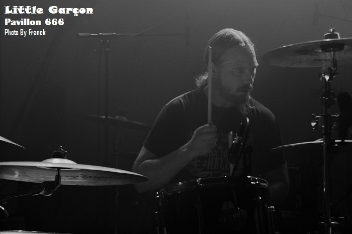 Au sein de Little Garçon Axel s’en donne aussi à cœur joie mais sur des tempos plus modérés ce qui lui permet de donner plus de puissance à son jeu de batterie et ainsi créer une atmosphère genre gros son en parfait accord avec la gratte de Julia.